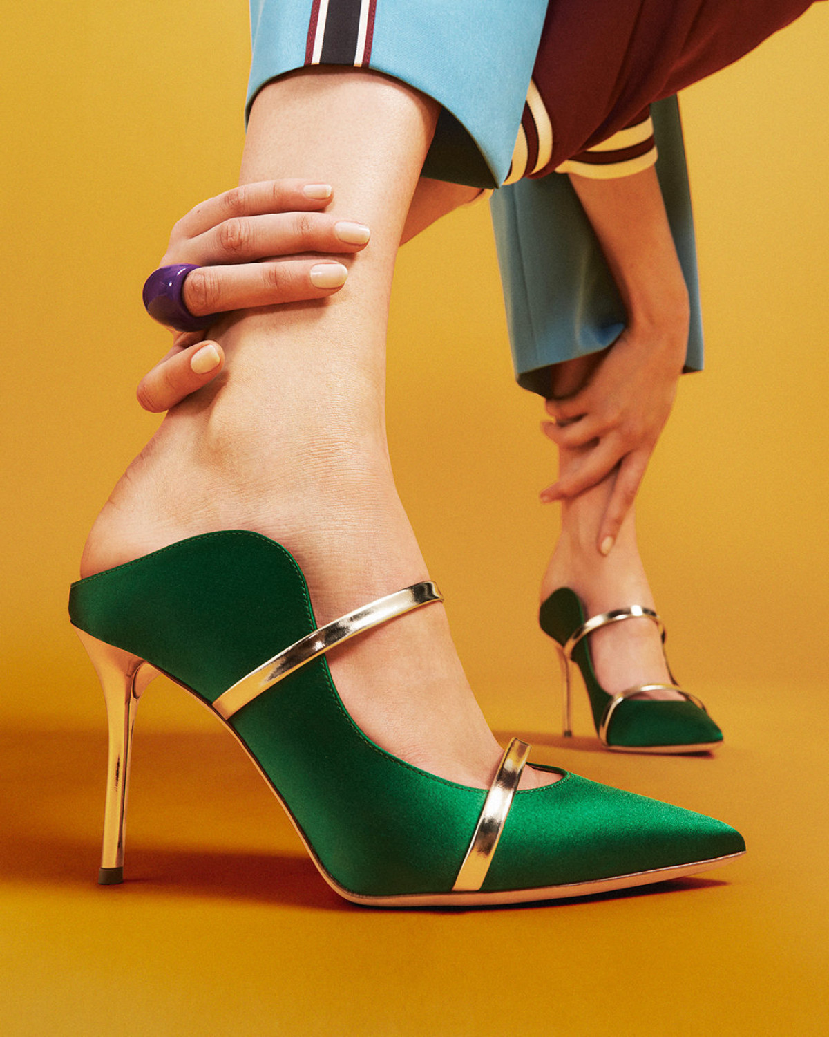 Окремої уваги заслуговує робота бренду з кольором. Malone Souliers відомий тим, що не прив’язується до сезонних трендів Pantone, а створює власну палітру — складні відтінки червоного, насичені винні, глибокі сині, м’які нюди з теплим підтоном.