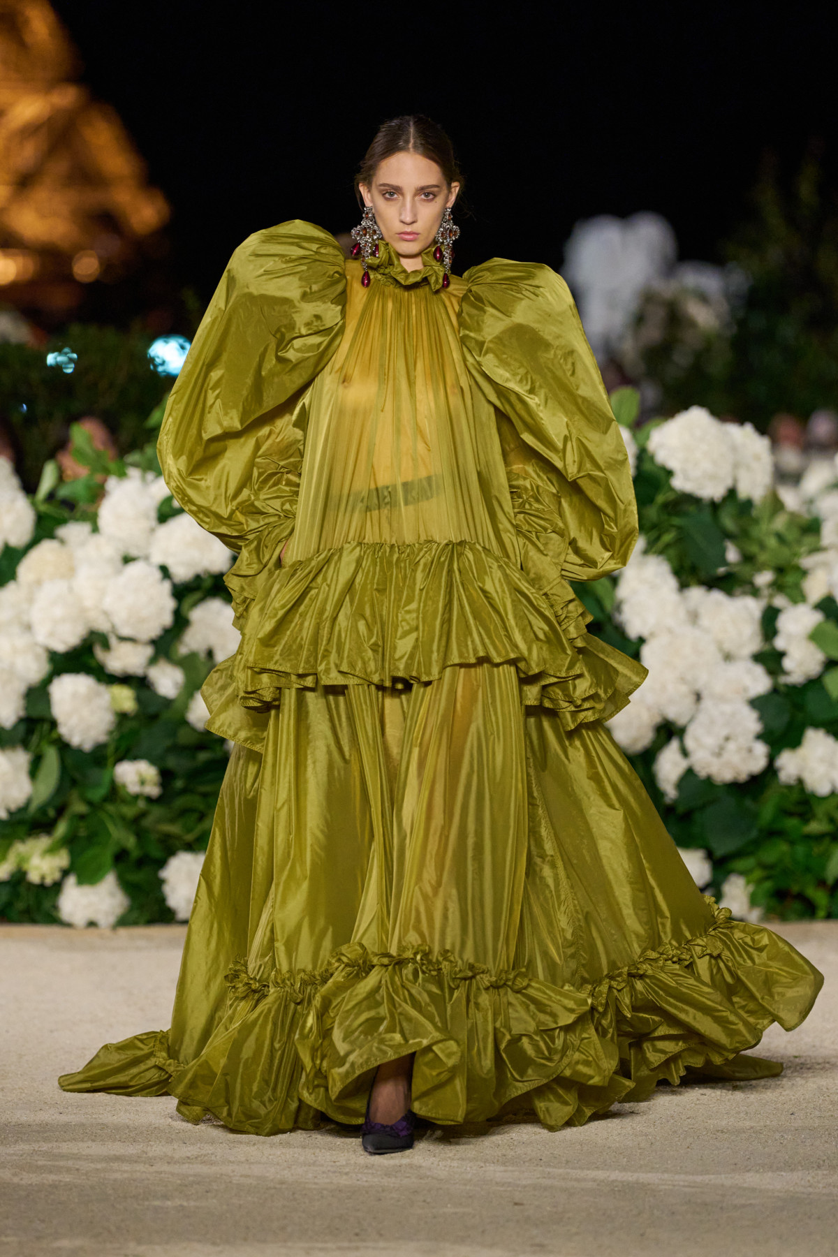 Окрім образів, ми не змогли не звернути увагу на талановитих українських моделей, які вкотре підкорили світовий подіум. Так, Анасофія Негруца постала в оливковій сукні з воланами та об’ємними рукавами-буфами. Тоді ж як Карина Мазяр з’явилася у подібній напівпрозорій моделі, однак уже в кораловому відтінку.