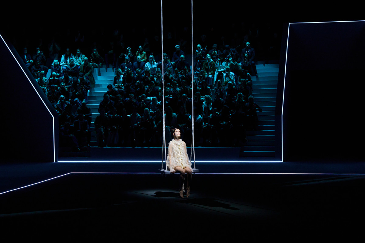 Першою на подіум вийшла дівчина в невагомій мінісукні з тюлю, яку доповнювали ефірні рюші й високий комір. Вона сіла на гойдалку, всуціль прикрашену написами Once upon a time, що з’явилася прямо посеред майданчика. Згодом пролунав голос, що повторив цю ж фразу та ознаменував початок 20-хвилинного дійства.