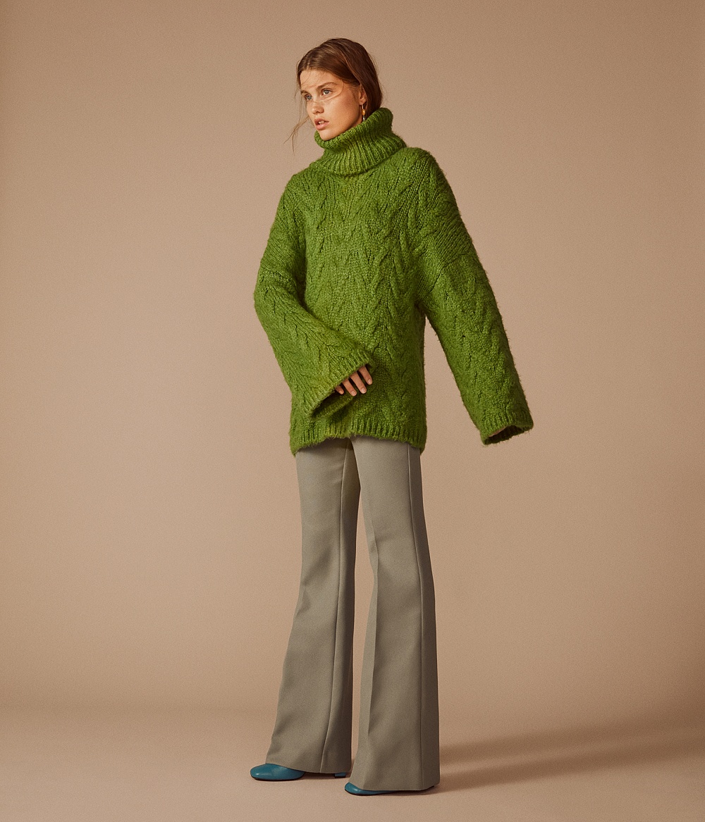 Объемный, вязаный, однотонный - такой свитер (выбирайте качественные материалы, которые всегда выглядят на порядок лучше) станет основой осеннего гардероба в этом сезоне. Носите его с юбкой-миди