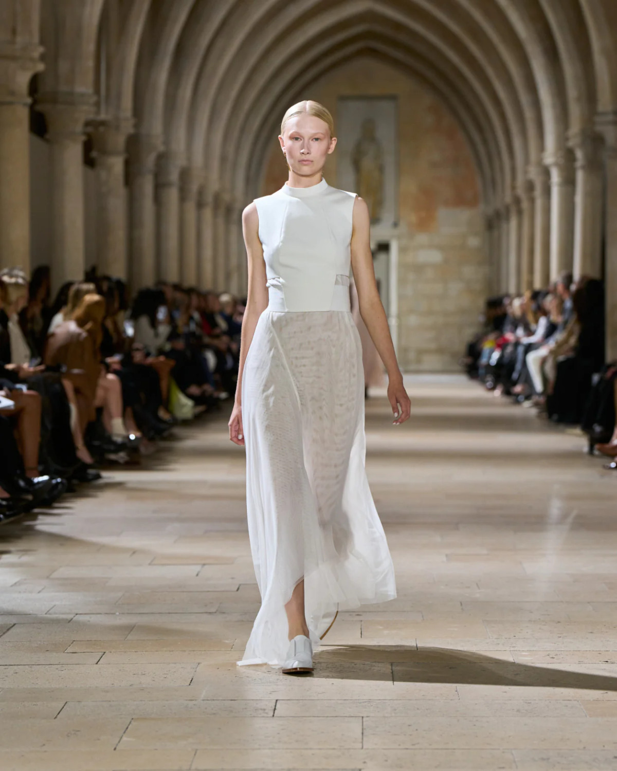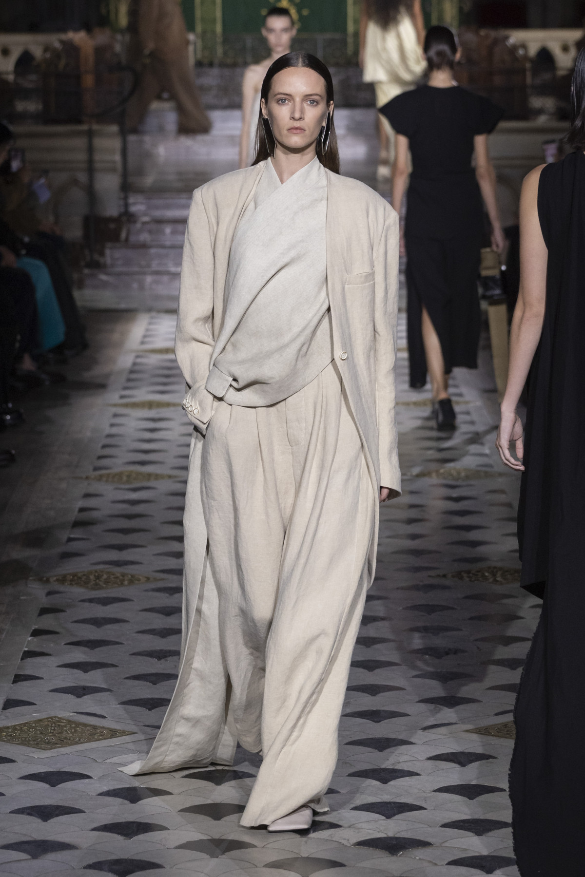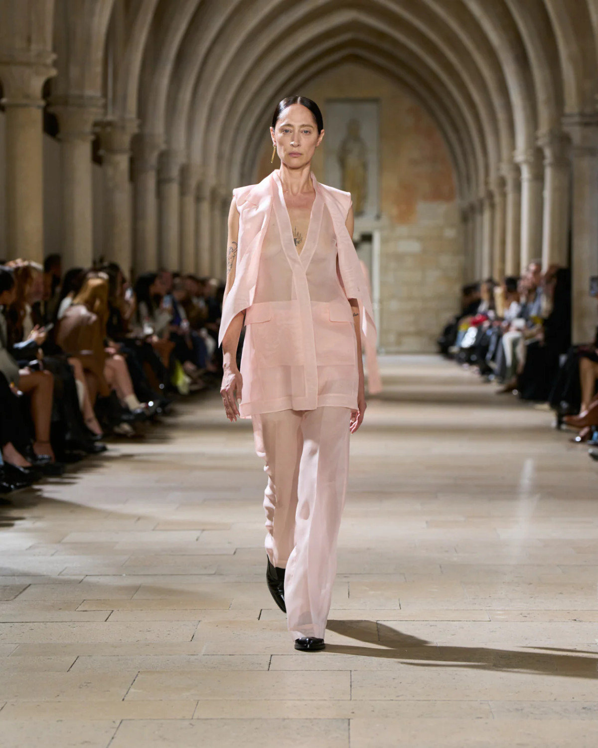Неймовірна весняно-літня колекція Akris однозначно серед моїх фаворитів. Дизайнера надихнула Італія та епоха Відродження. Готична зала у поєднанні з легкими тканинами та пастельними кольорами виглядала дуже гармонійно. Мої улюблені образи — ніжно-рожевий костюм із глибоким вирізом та тренч максі зі спідницею з бахромою.