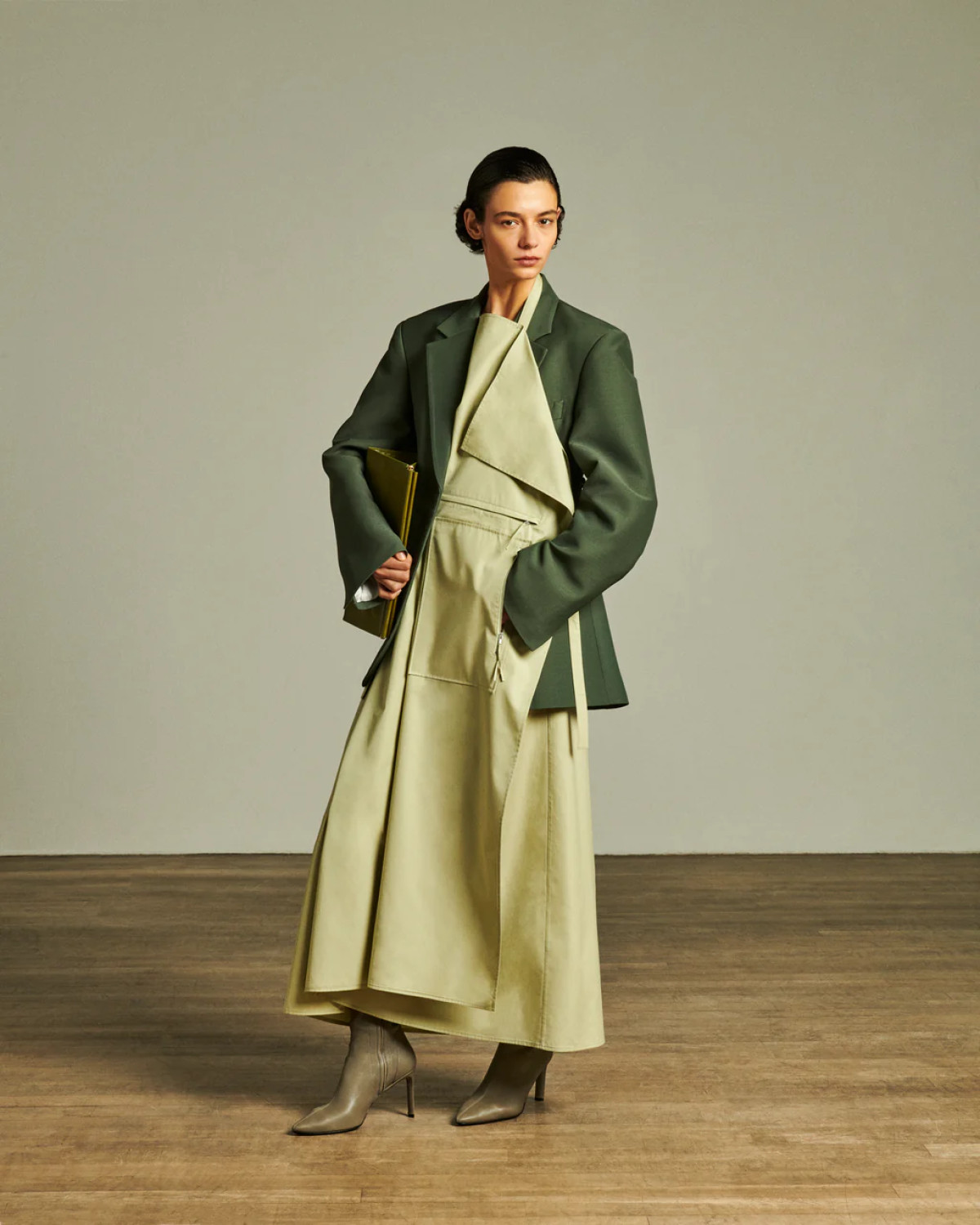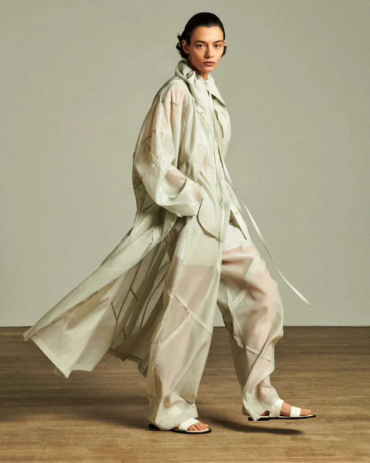 Mame Kurogouchi представляє гармонійне поєднання мінімалізму та елегантності, з`єднуючи елементи східної та західної культур. Асиметричне драпірування та оригінальний крій формують ДНК бренду, яке проходить через усі колекції.