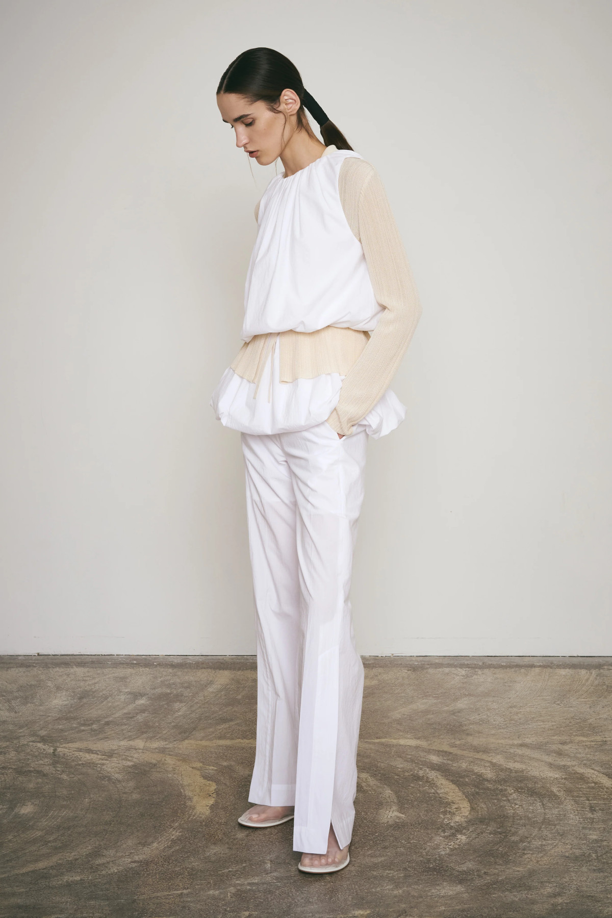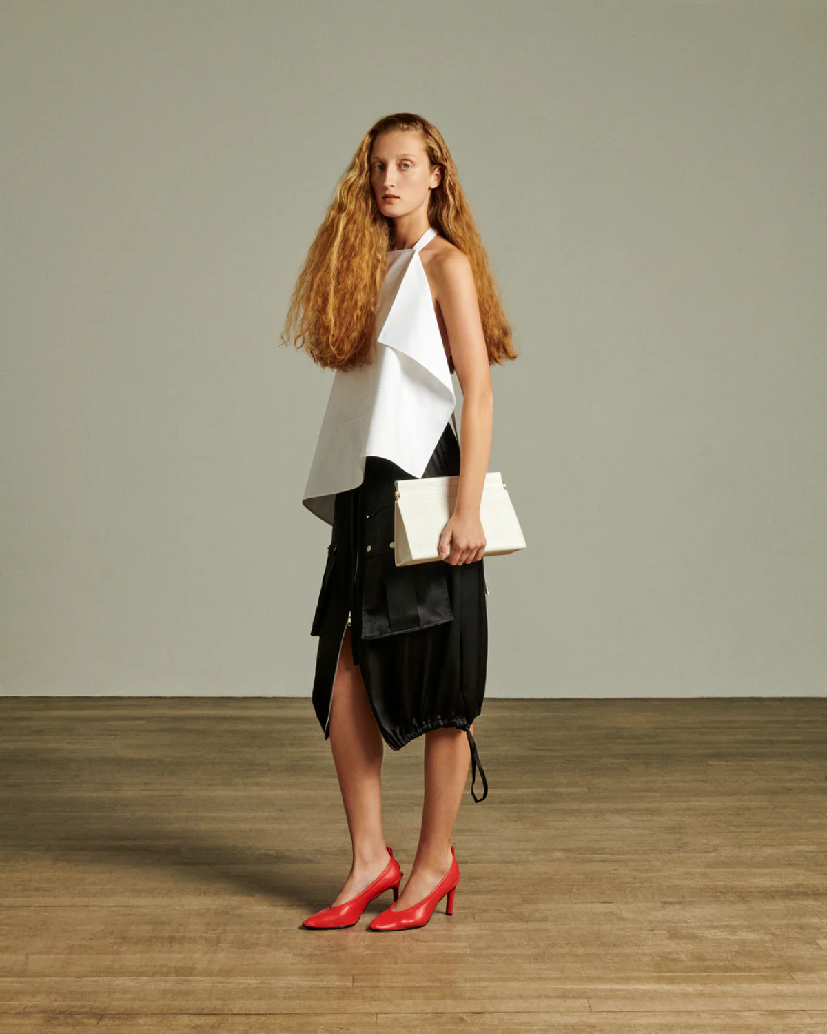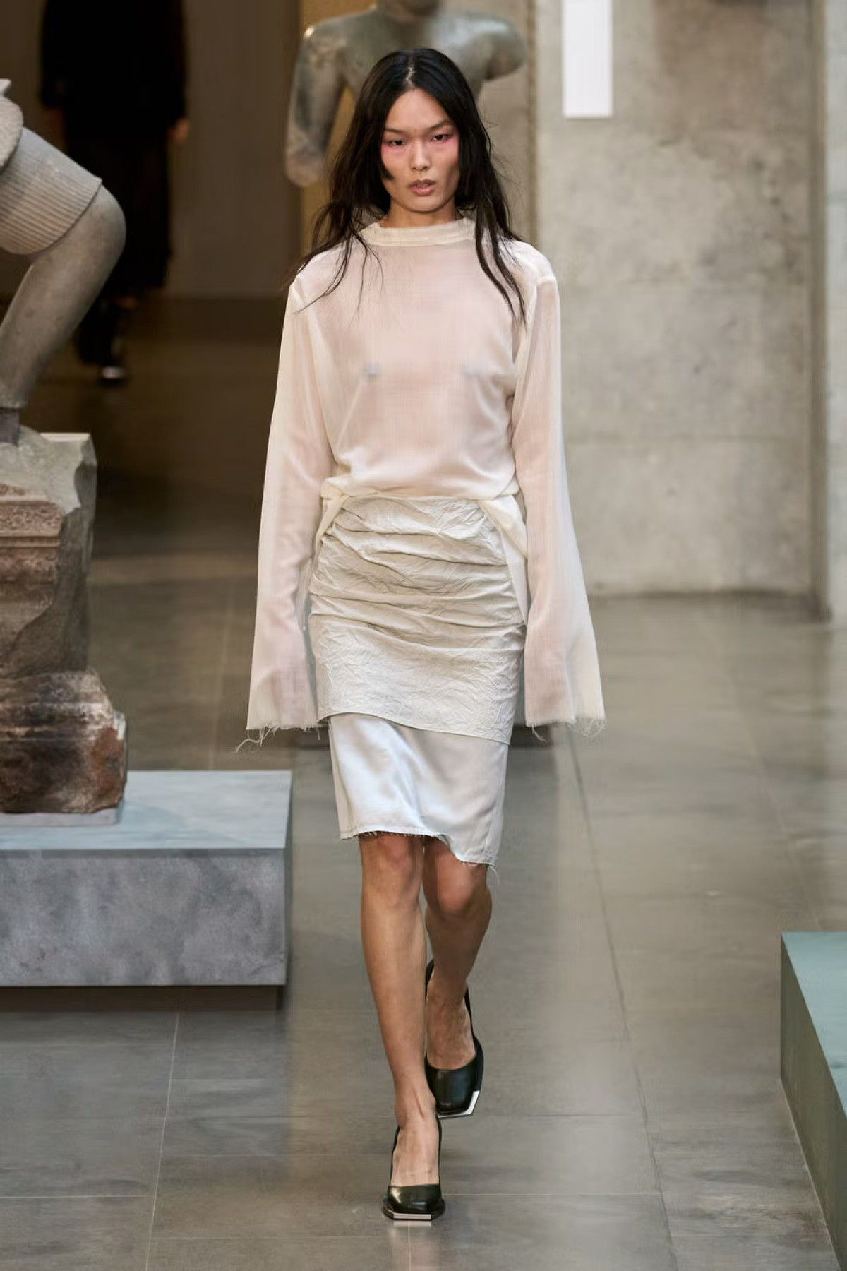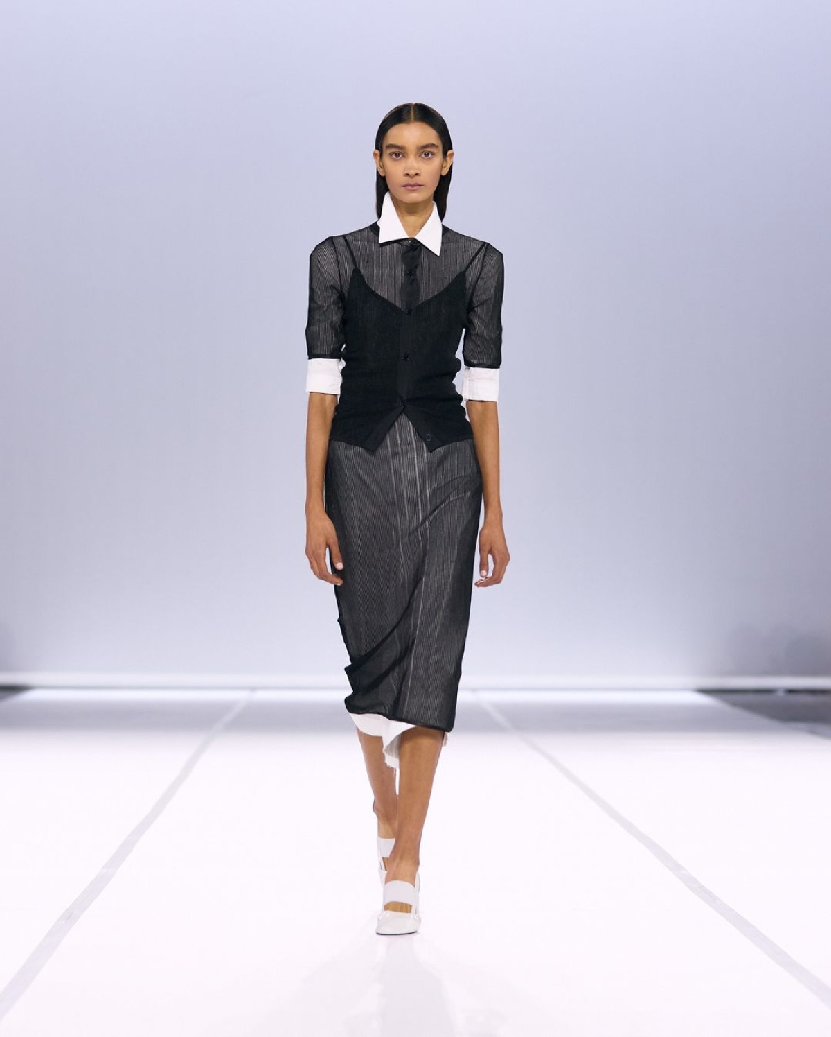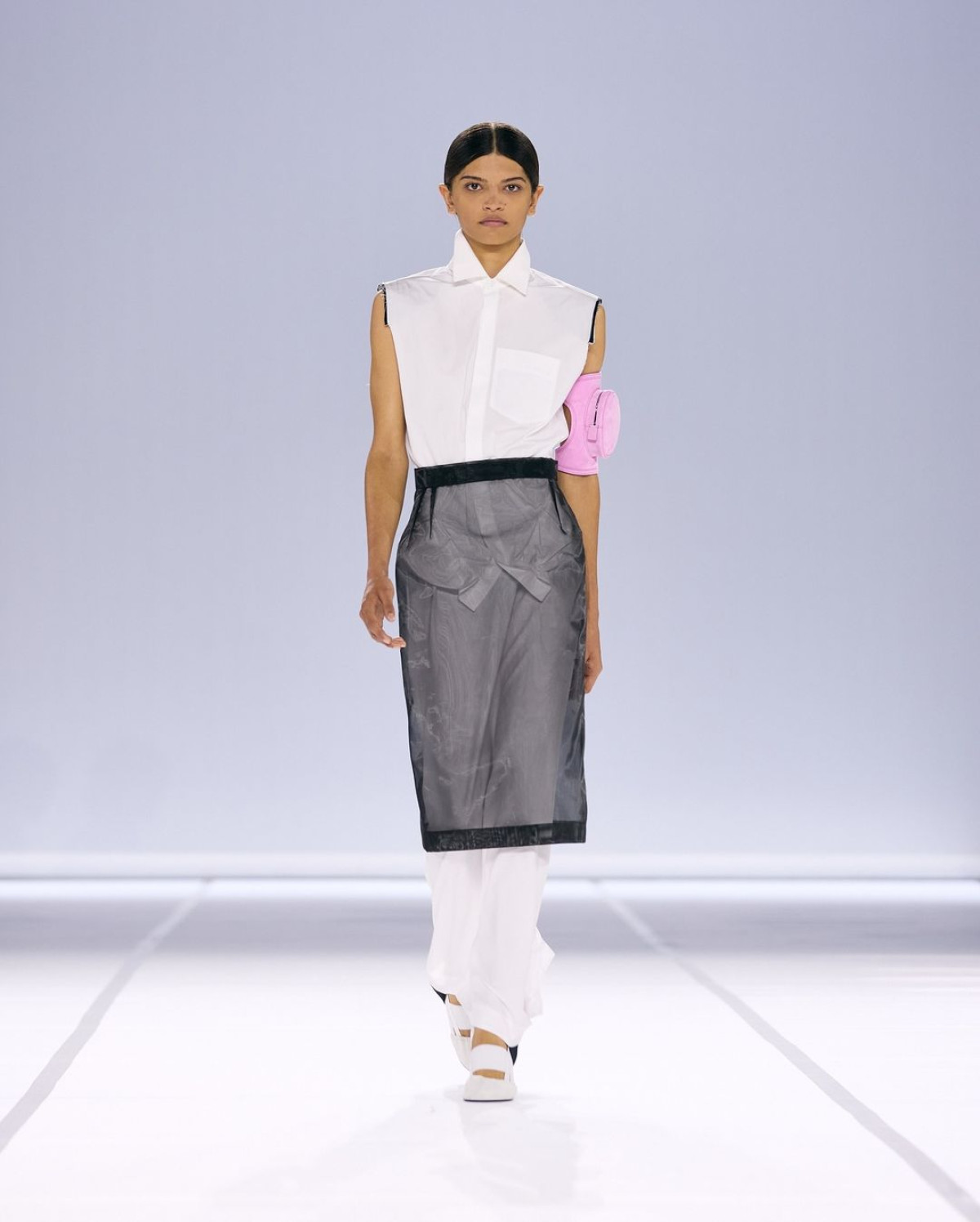 Один з найкрасивіших стайлінгів колекції. Нова глава багатошаровості не схожа на Miu Miu чи інший бренд. Жіночно та свіжо. Ніщо не відвертало увагу від одягу: ні масштабна локація, ні концептуальне шоу. Дизайнер достатньо молодого бренду мав великий досвід роботи в fashion-індустрії з такими брендами, як Vetements та Louis Vuitton.