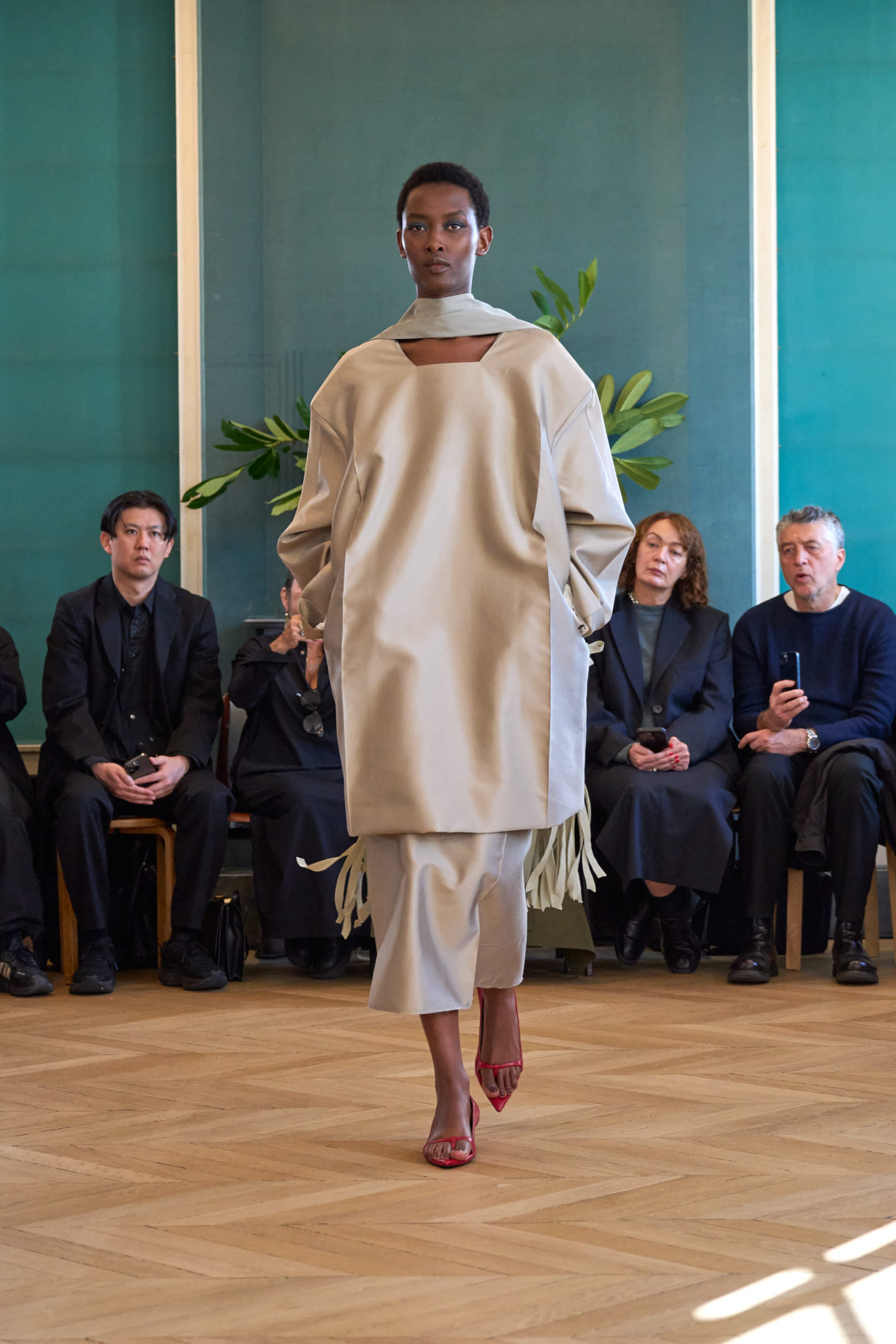 Carven — французький бренд з історією, який повертає собі місце під сонцем. Попередня колекція спричинила справжній фурор: у кожній третій добірці трендів був образ чи одяг від Carven. Цього сезону колекція була представлена у квартирі, яка тепер є резиденцією бренду, де колись створювала вироби сама засновниця. Мінімалістичні образи в нейтральних кольорах з елементами бахроми та акцентом на складному крої.