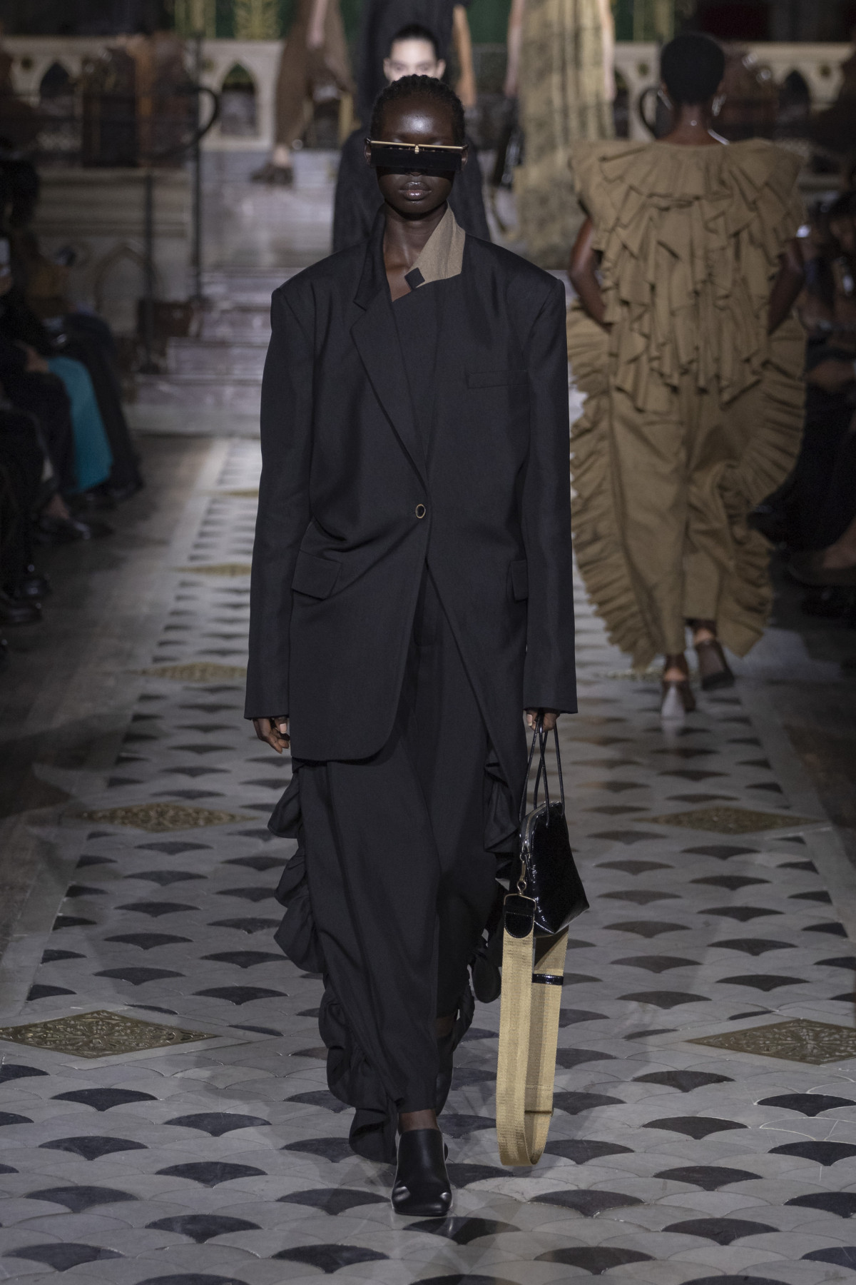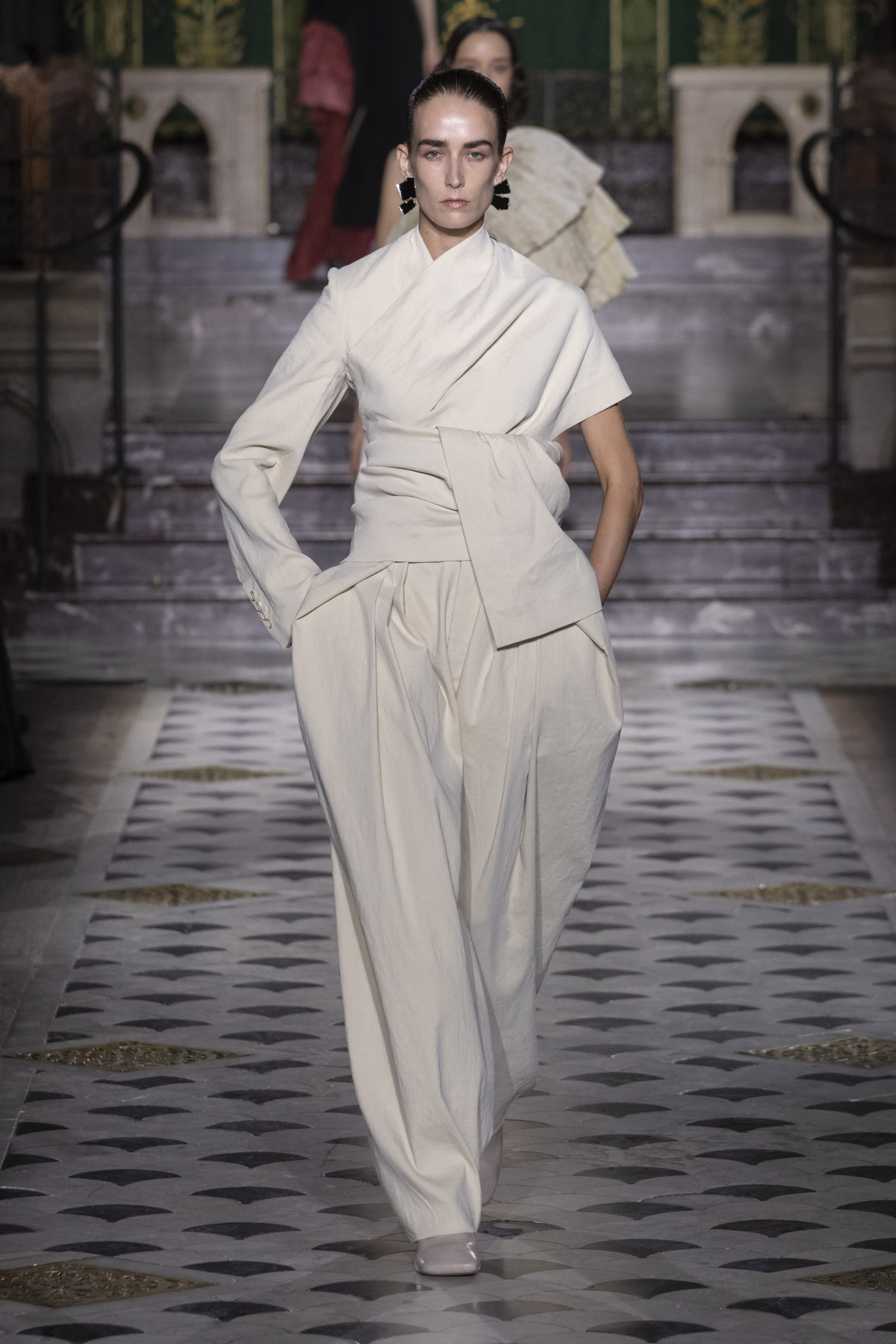 Uma Wang асоціюється з авангардизмом та мінімалізмом. У її монохромних образах простежується збереження пропорцій жіночого тіла, а про спину Uma Wang говорять, як про витвір мистецтва. Драпірування та мікс фактур створюють потрібні об’єми. У мене від жодного показу не було таких мурашок: Американський собор, приглушене світло, неймовірний одяг та ідеальна музика, яка довершувала ансамбль.
