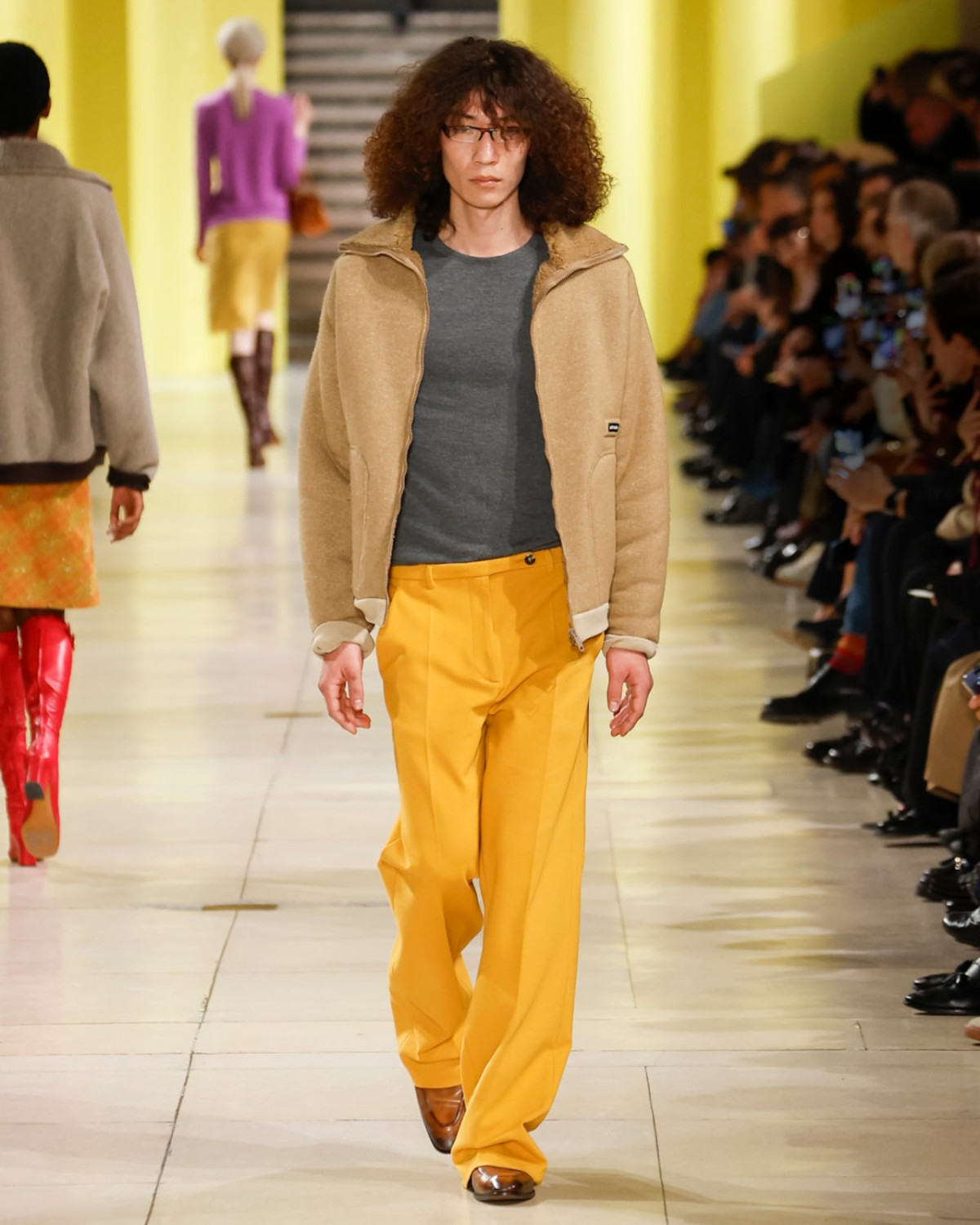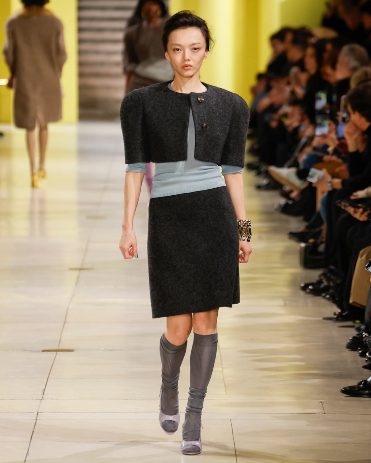 Саме тому в колекції співіснували чіткі лінії та розслаблені силуети, а класична жіночність набувала нового звучання: у вигляді мініспідниць, що врівноважувалися приталеними водолазками та жакетами, делікатних суконь і строгих брючних костюмів.