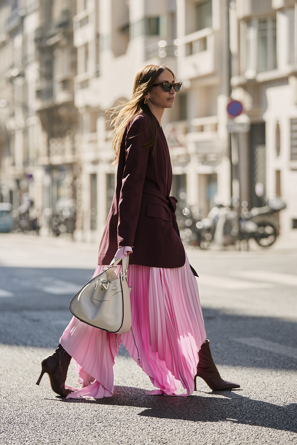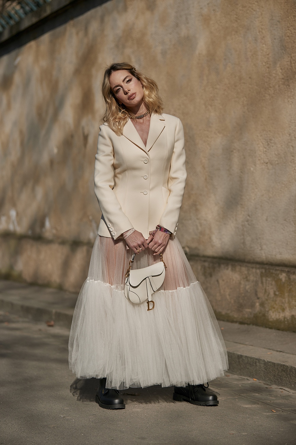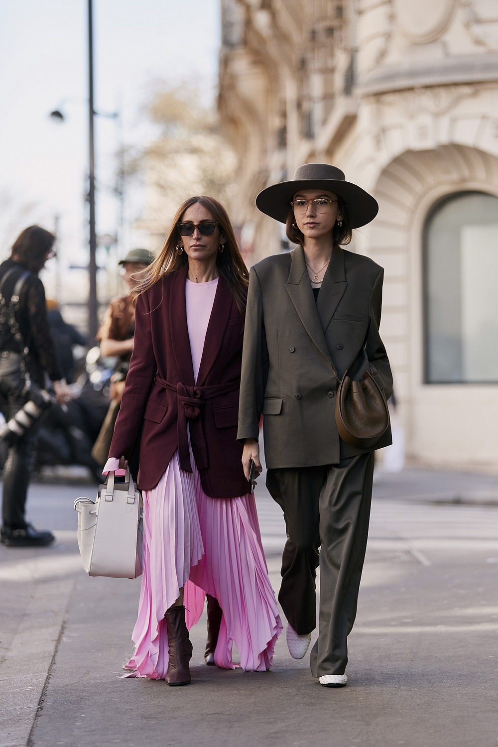 Героини парижского street style разделились на два лагеря: одно носят летящие плиссированные юбки, жакеты bar и платья конфетных цветов, другие – рабочие комбинезоны, разгрузочные жилеты и брючные костюмы словно с мужского плеча. К какому лагерю примкнуть – воздушных принцесс или самоуверенных пацанок – выбирать только вам: оба варианта хороши.