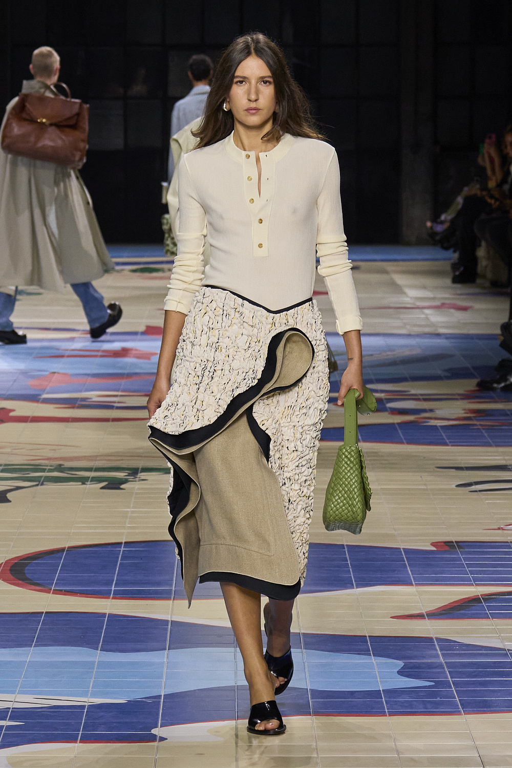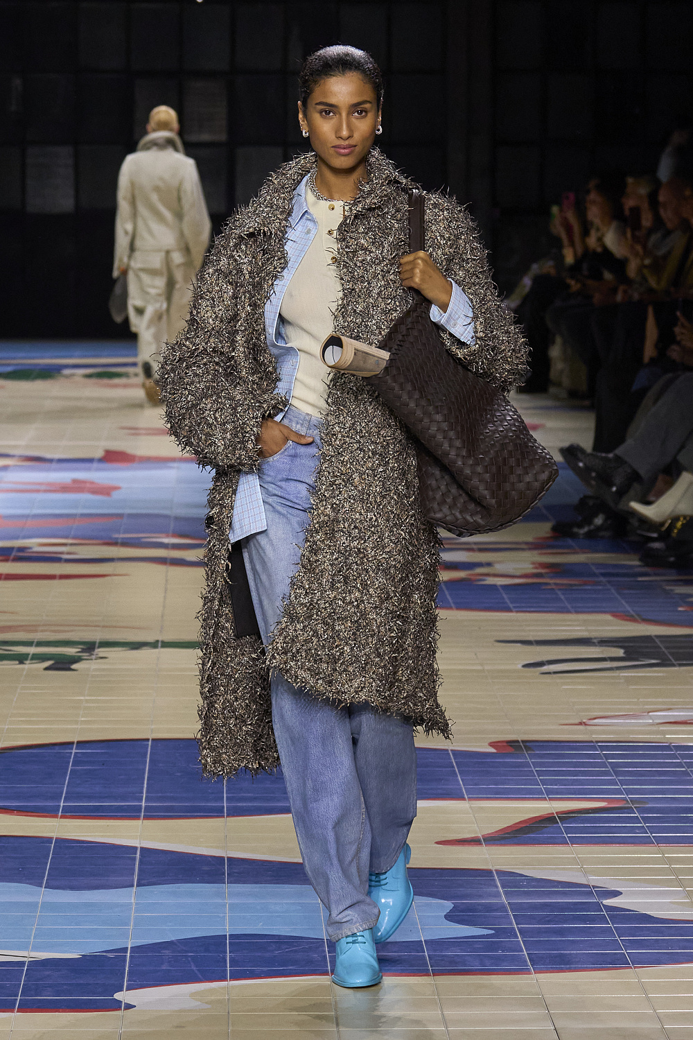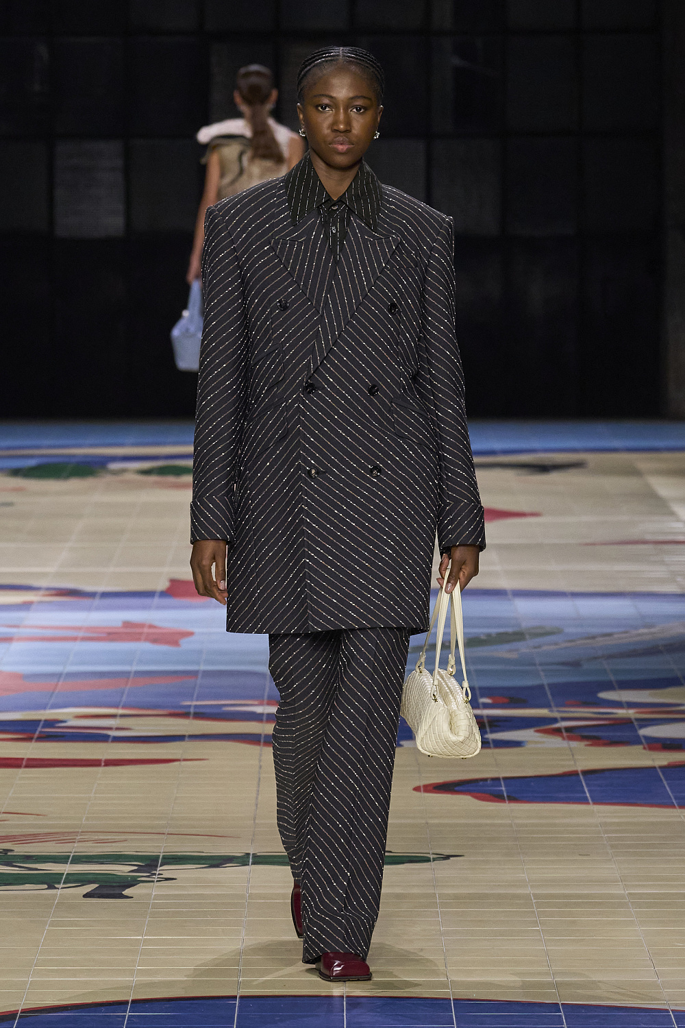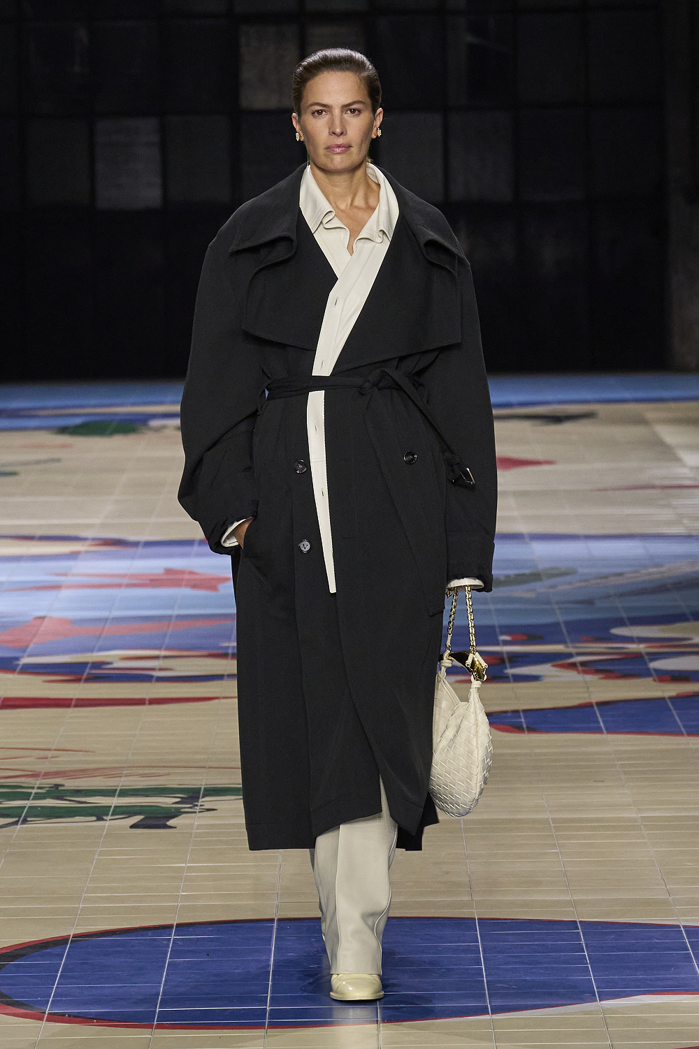 Креативний директор бренду Bottega Veneta Матьє Блазі проголосив колекцію минулого сезону завершенням своєї італійської трилогії. На весну 2024 року він готував дещо нове, і перша підказка надійшла разом із запрошенням на показ. Усередині коричневої картонної коробки був компас на шкіряному ремінці, з картою світу на лицьовій стороні під голками. А моделі дефілювали подіумом, який нагадував мапу світу. Гості збиралися у подорож.
