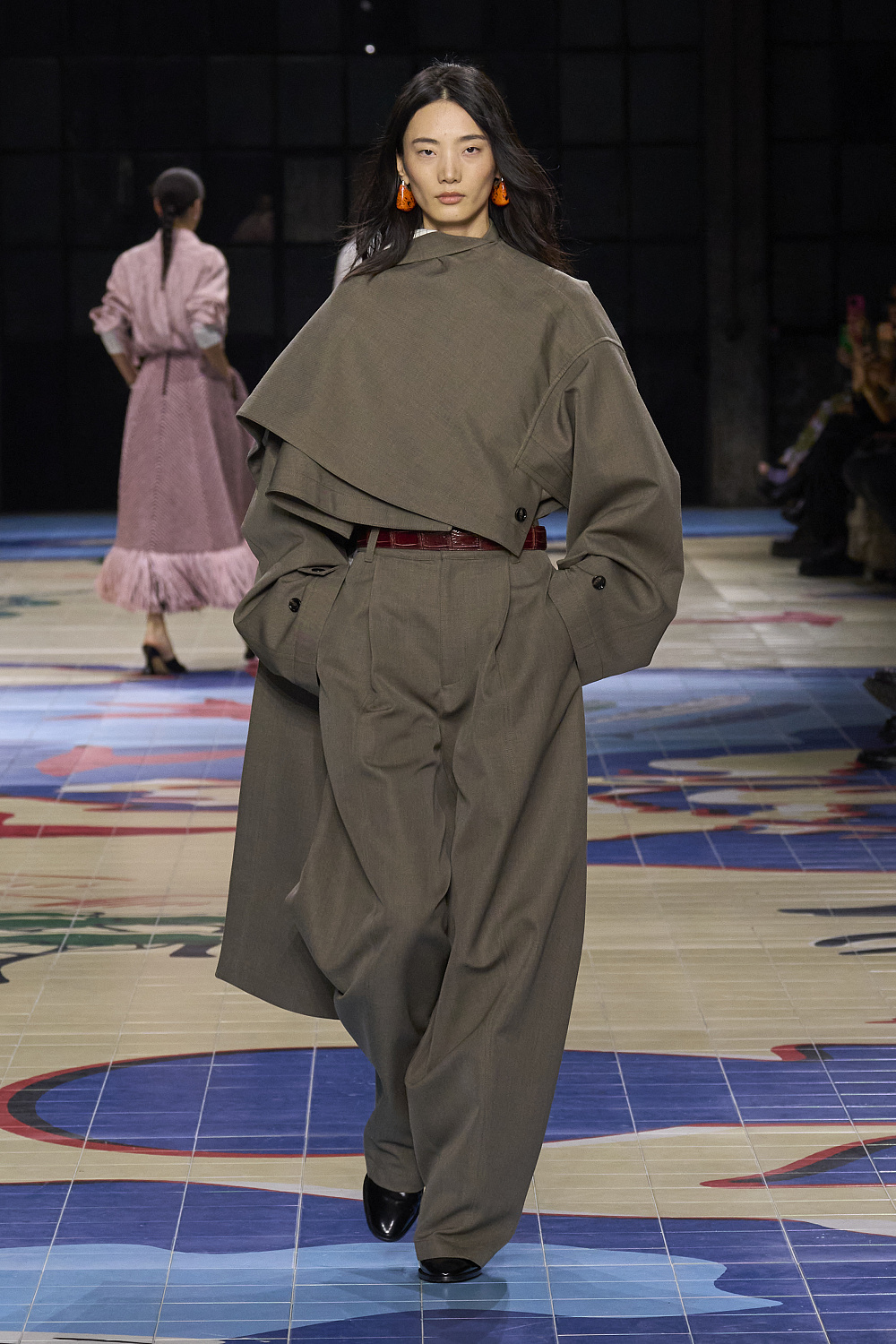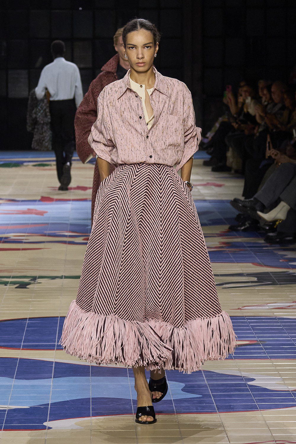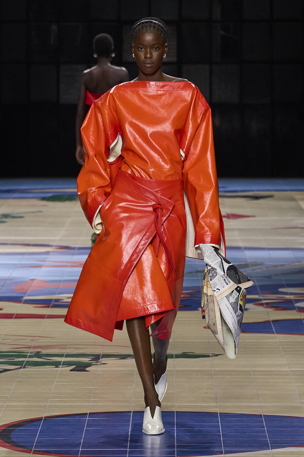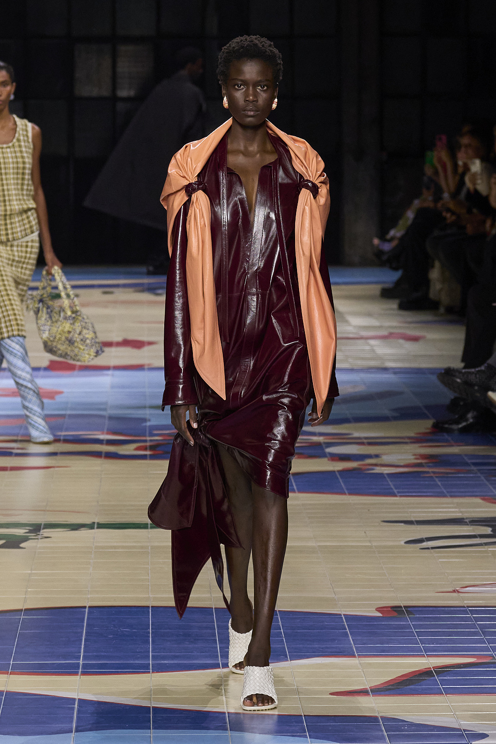 Креативний директор бренду Bottega Veneta Матьє Блазі проголосив колекцію минулого сезону завершенням своєї італійської трилогії. На весну 2024 року він готував дещо нове, і перша підказка надійшла разом із запрошенням на показ. Усередині коричневої картонної коробки був компас на шкіряному ремінці, з картою світу на лицьовій стороні під голками. А моделі дефілювали подіумом, який нагадував мапу світу. Гості збиралися у подорож.