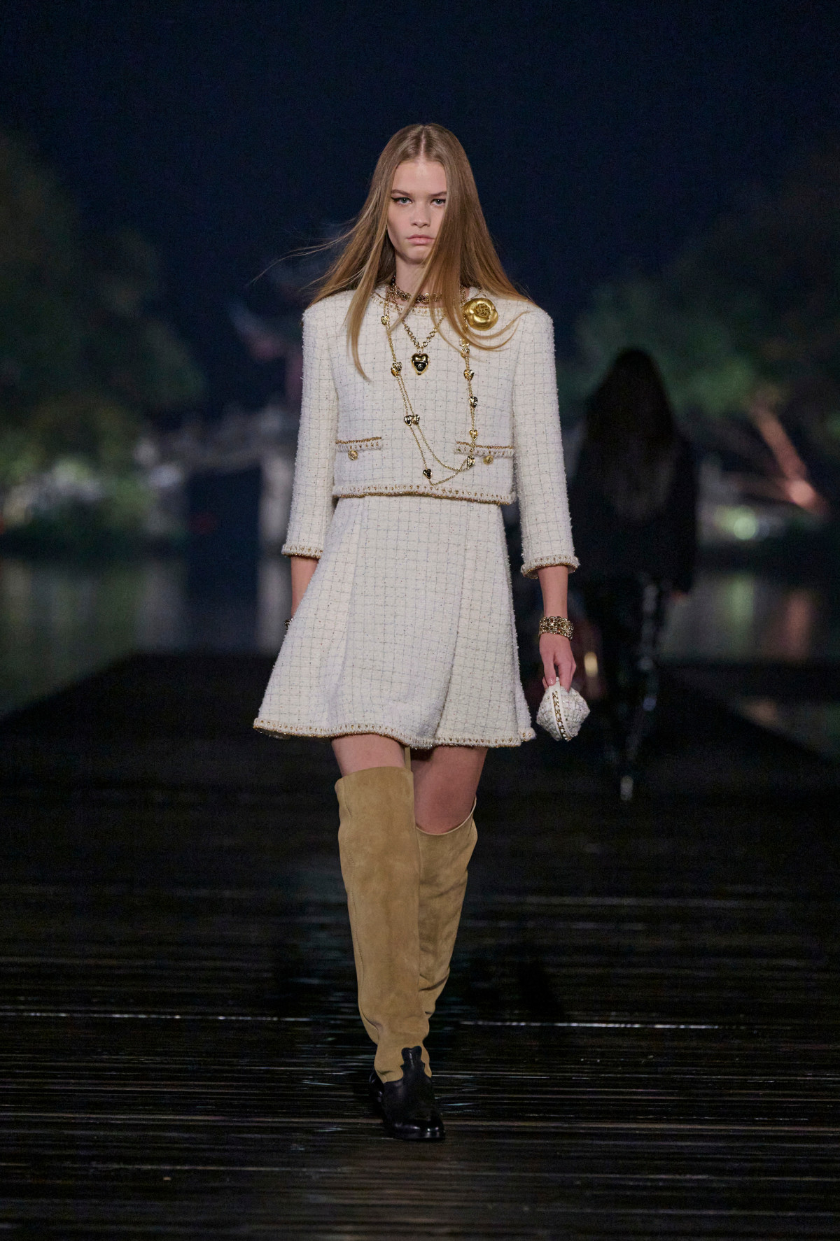 Уже кілька десятків років Chanel демонструє світові колекції Métiers d’Art, які вшановують історію будинку моди та його зв’язок з різними містами та регіонами. Показ цьогорічної лінійки відбувся на мальовничому озері Сіху, яке також прозвали в народі Західним. Воно розташоване в китайській провінції Ханчжоу — колисці торгівлі шовком та місцині, яка неодноразово ставала джерелом натхнення для Габріель Шанель.