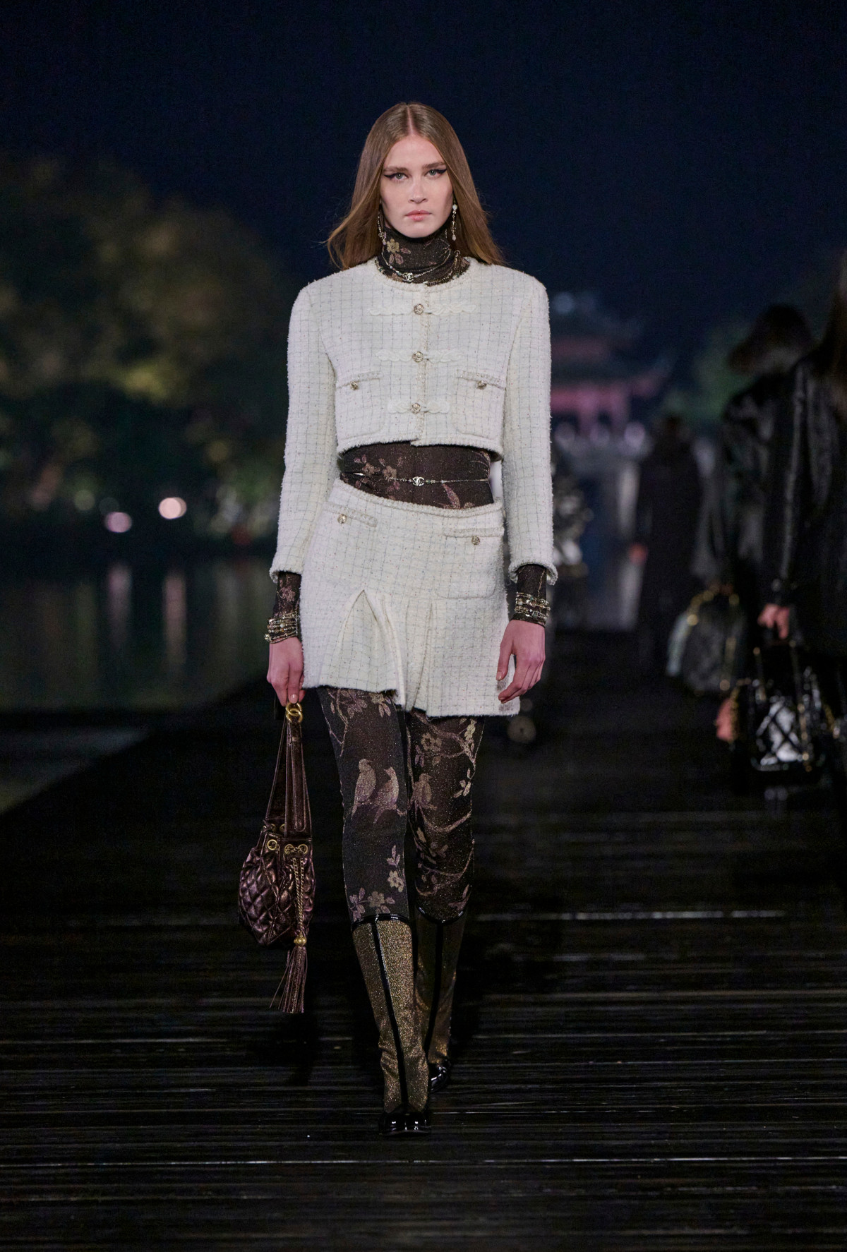 Уже кілька десятків років Chanel демонструє світові колекції Métiers d’Art, які вшановують історію будинку моди та його зв’язок з різними містами та регіонами. Показ цьогорічної лінійки відбувся на мальовничому озері Сіху, яке також прозвали в народі Західним. Воно розташоване в китайській провінції Ханчжоу — колисці торгівлі шовком та місцині, яка неодноразово ставала джерелом натхнення для Габріель Шанель.