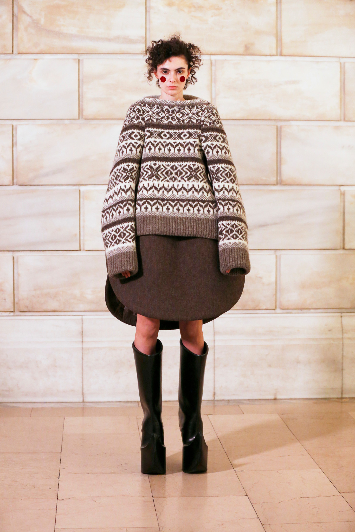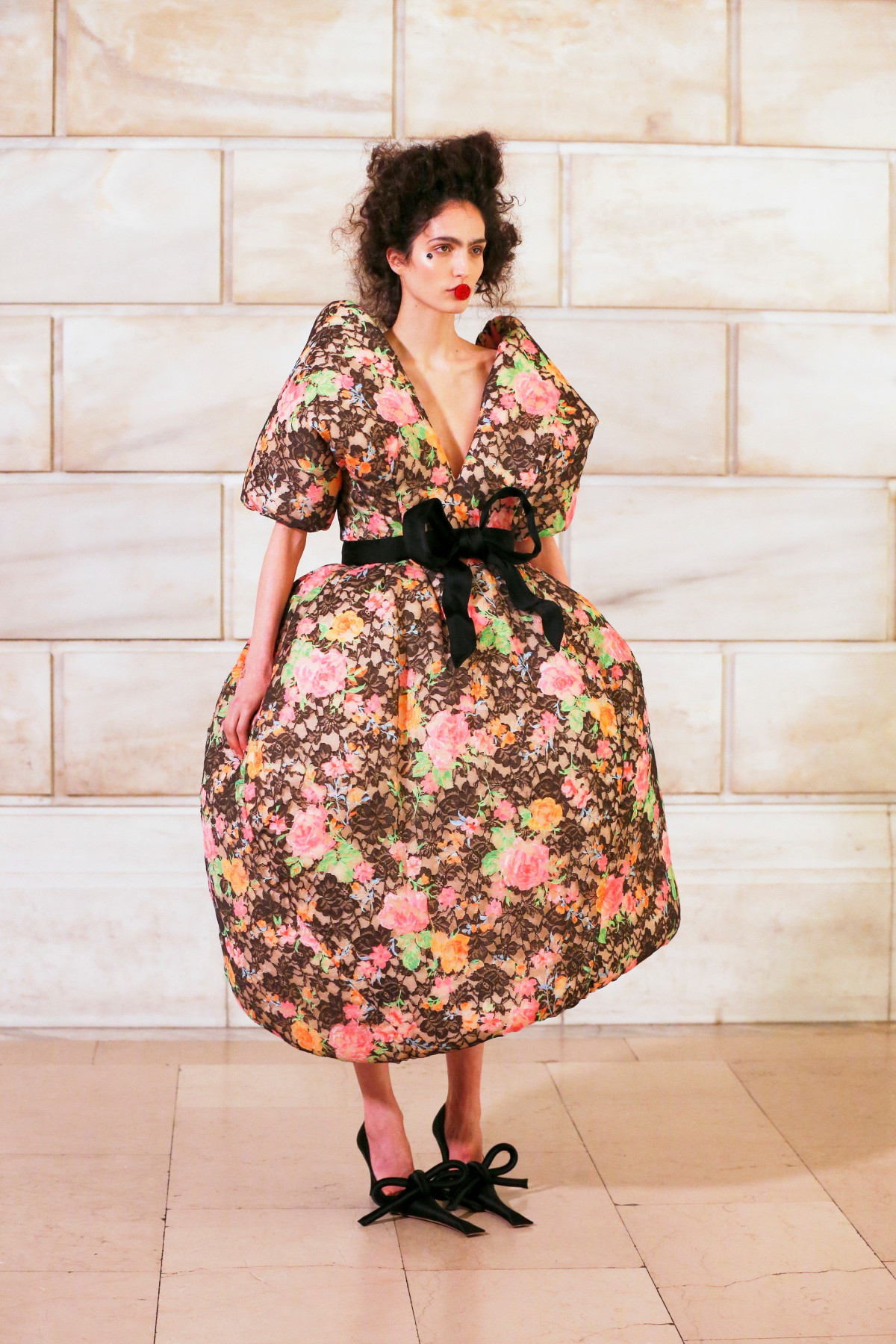 Ми побачили фірмові штрихи Marc Jacobs у кожному елементі: ігри з округлими формами, гіперболізованими розмірами, незвичними силуетами й колірними поєднаннями стали основою колекції.