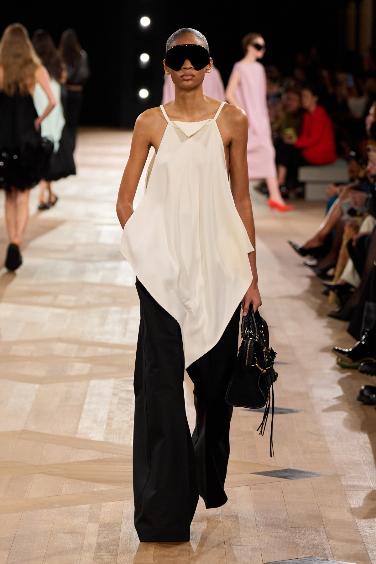 Зважаючи на це, ми відзначили чимало відсилань дизайнера до робіт його попередників. Перш за все Піччолі звернувся до культових мішкуватих силуетів Крістобаля Баленсіаги, представлених у 1957 році. У ті роки подібні експерименти сприймалися неоднозначно, оскільки тодішня публіка досі була захоплена корсетами й революційним new look Крістіана Діора. Однак згодом сукні, що нагадували повітряні кульки, все ж завоювали прихильність своєї авдиторії, тому дизайнер аж ніяк не міг пропустити їх під час свого дебюту, запропонувавши моделі в чорних та молочних відтінках.