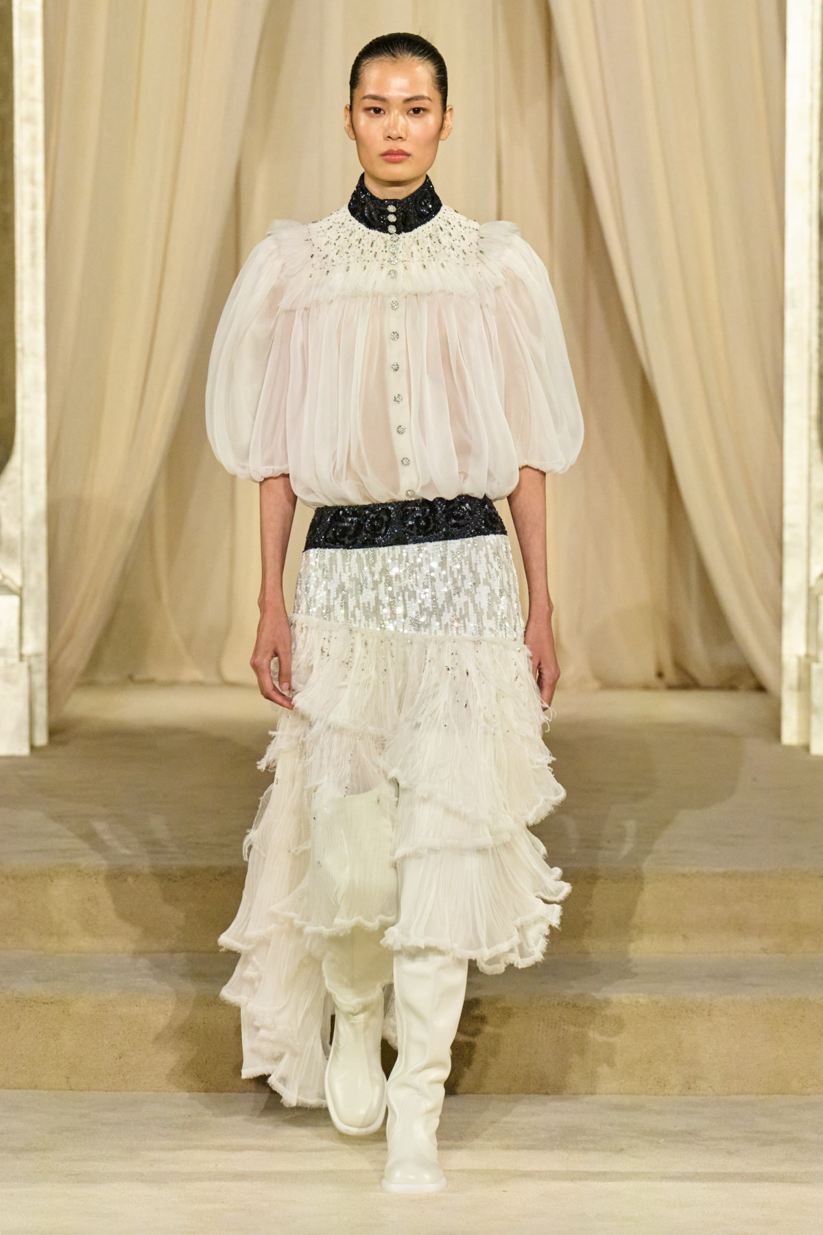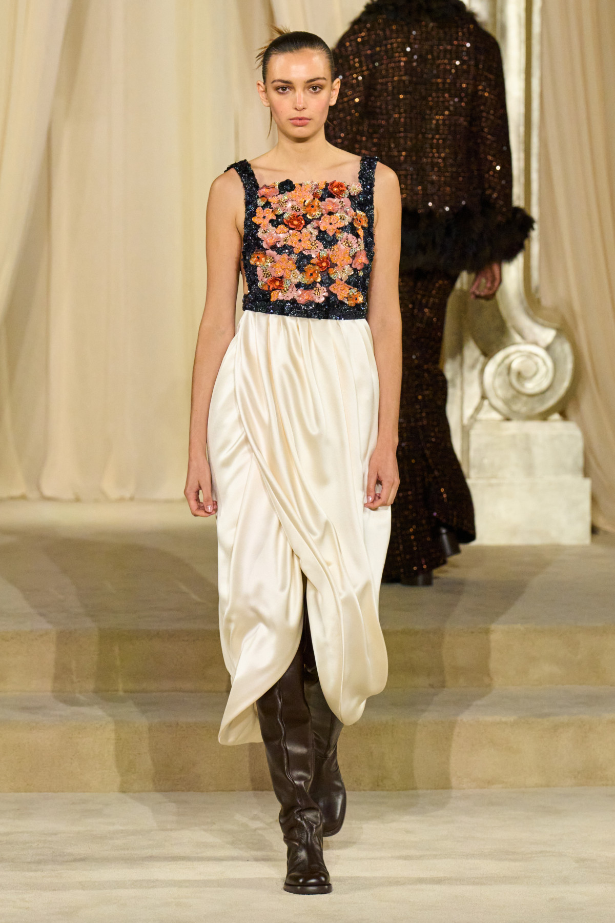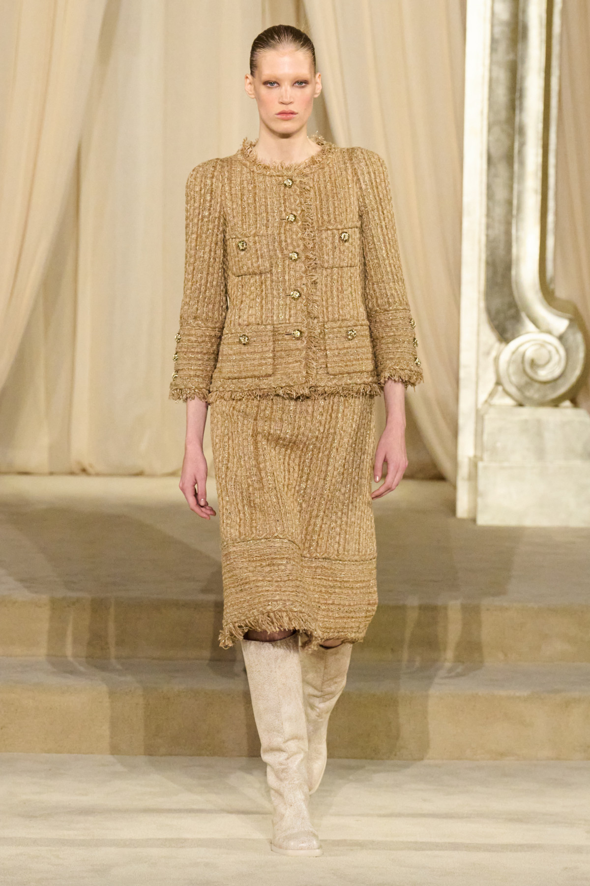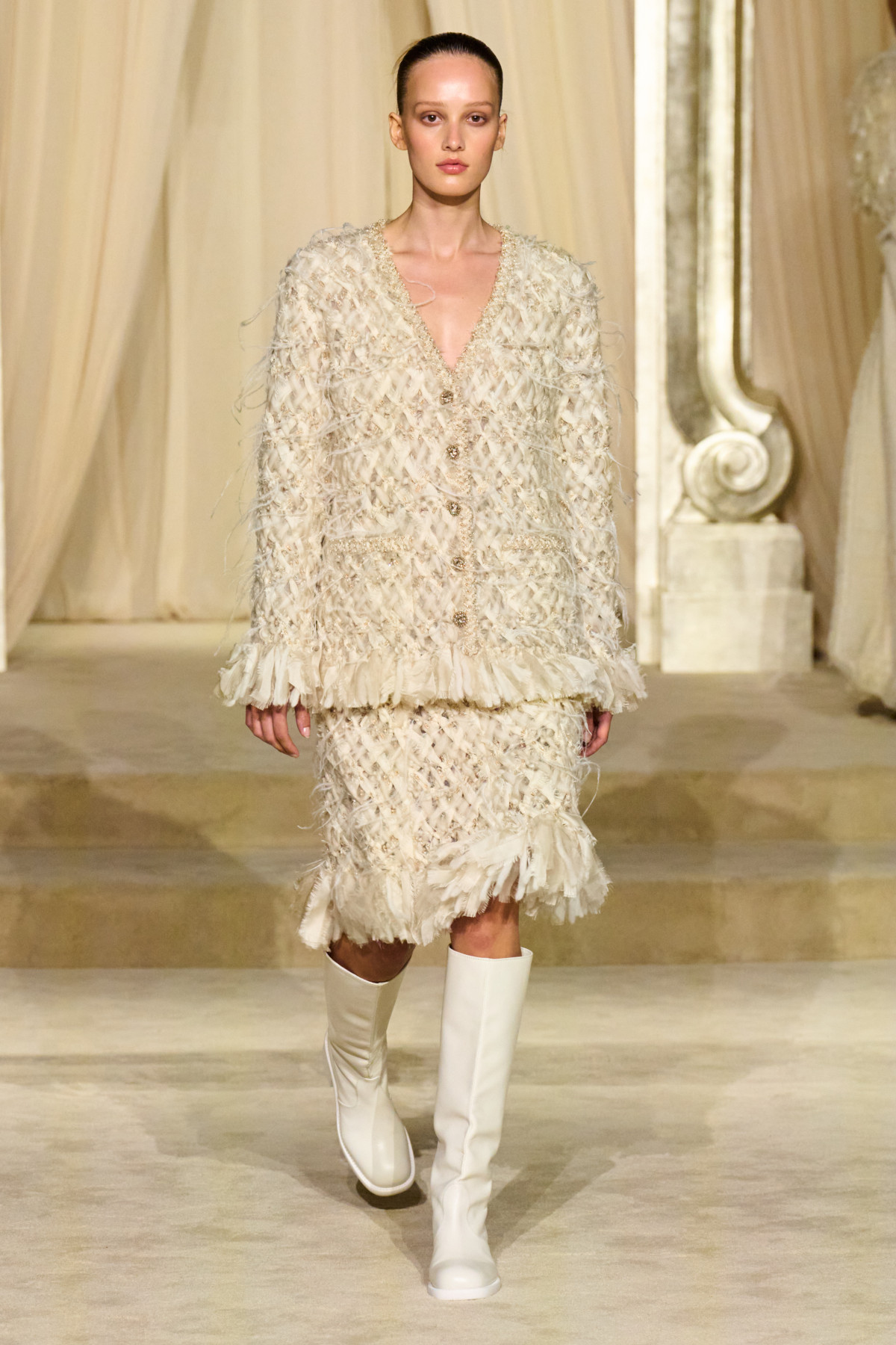 Нова кутюрна колекція стала останнім ривком модного дому перед приходом Матьє Блазі, який уже цієї осені запропонує свою першу жіночу лінійку для Chanel. Команда вкотре запросила гостей до Grand Palais — розкішної паризької пам’ятки, яка роками слугувала особливим місцем презентування лінійок бренду і яку так полюбляв Карл Лагерфельд.