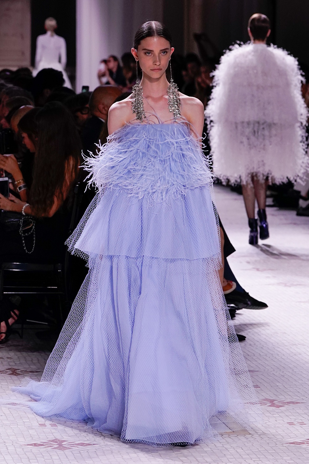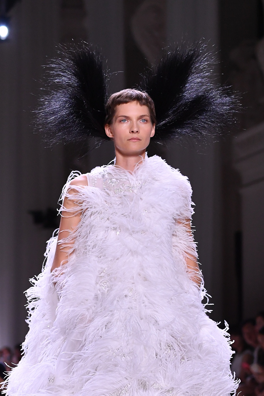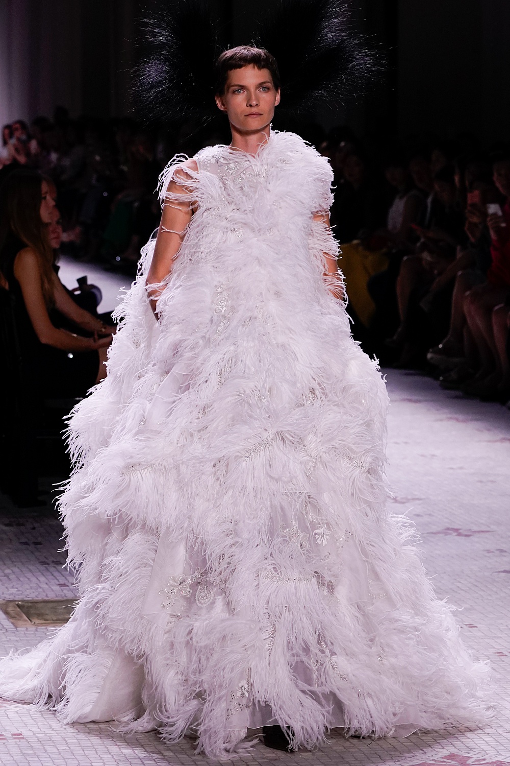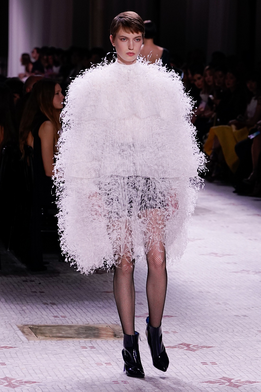 Второй день Недели высокой моды в Париже завершал показ Givenchy. Осенне-зимнюю коллекцию 2019/2020 под названием «Радикальное благородство» Клэр Уэйт Келлер показала в Музее декоративного искусства. В новом сезоне дизайнер признается в любви перьям, стразам, стеклярусу и цветочным орнаментам. Помимо черного Клэр делает ставку на мятный, серый и розовый цвета, а из тканей предпочитает атлас и бархат. Компанию изящным платьям составили ботильоны из пластика, колготки-сетка и бунтарские прически.