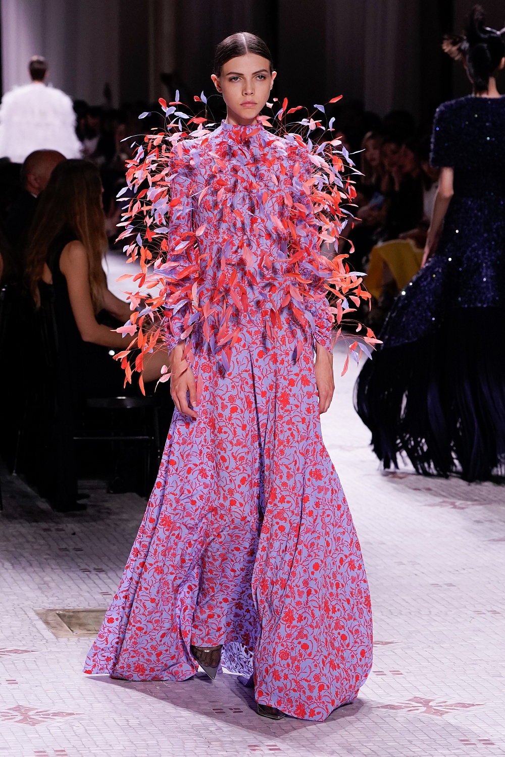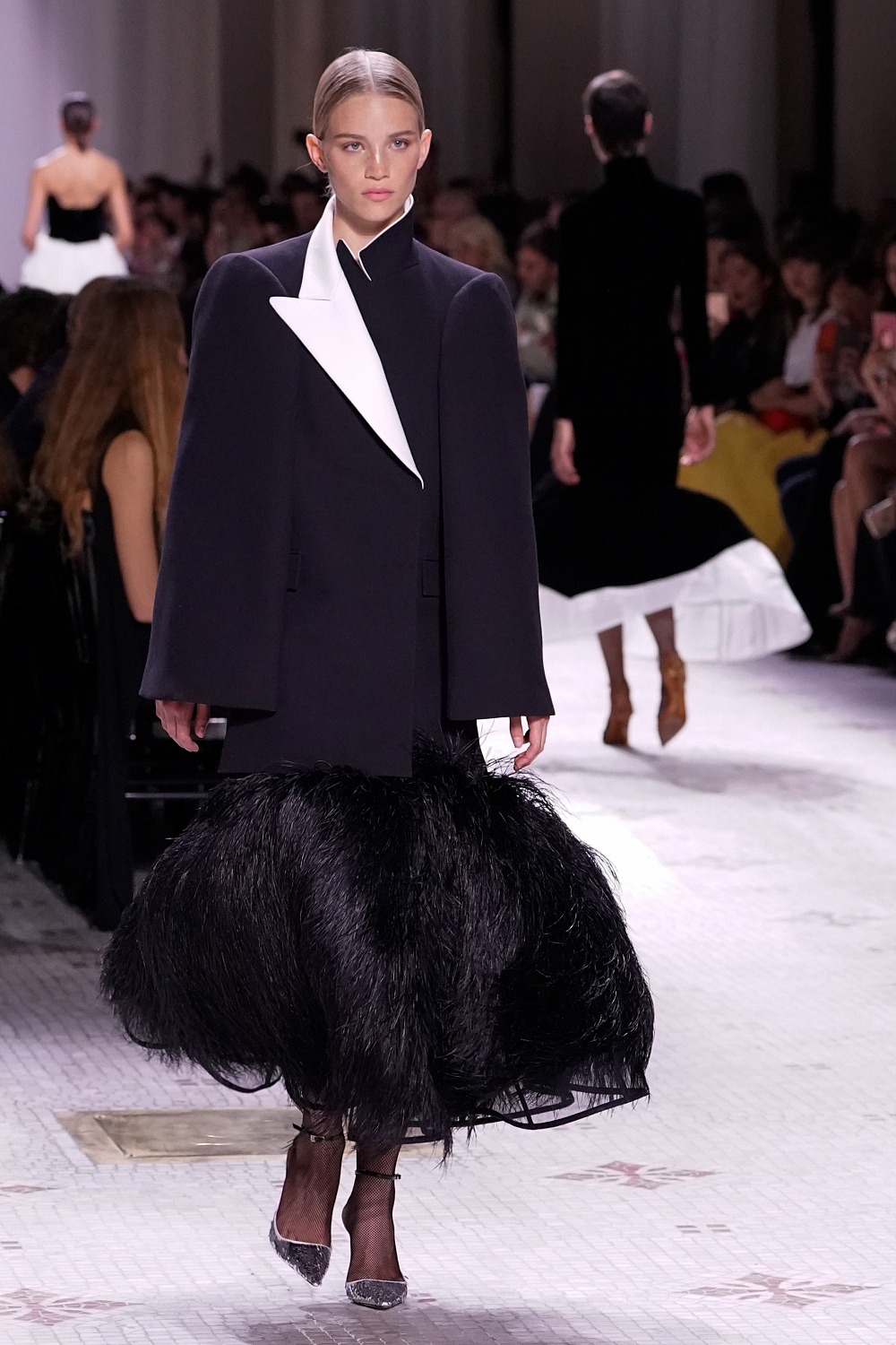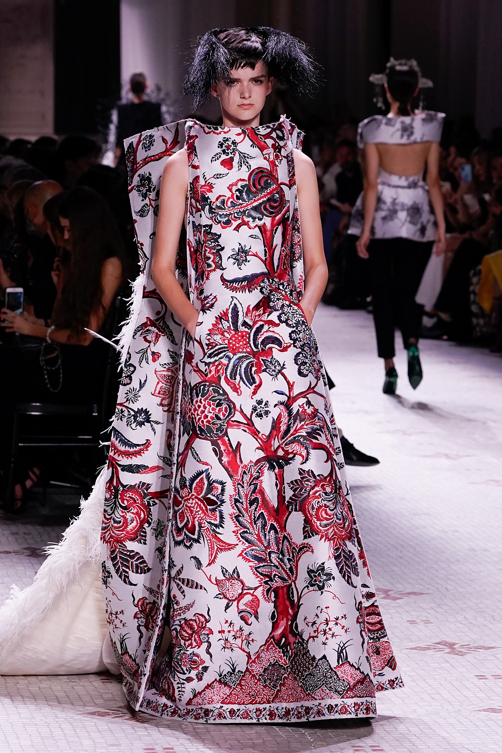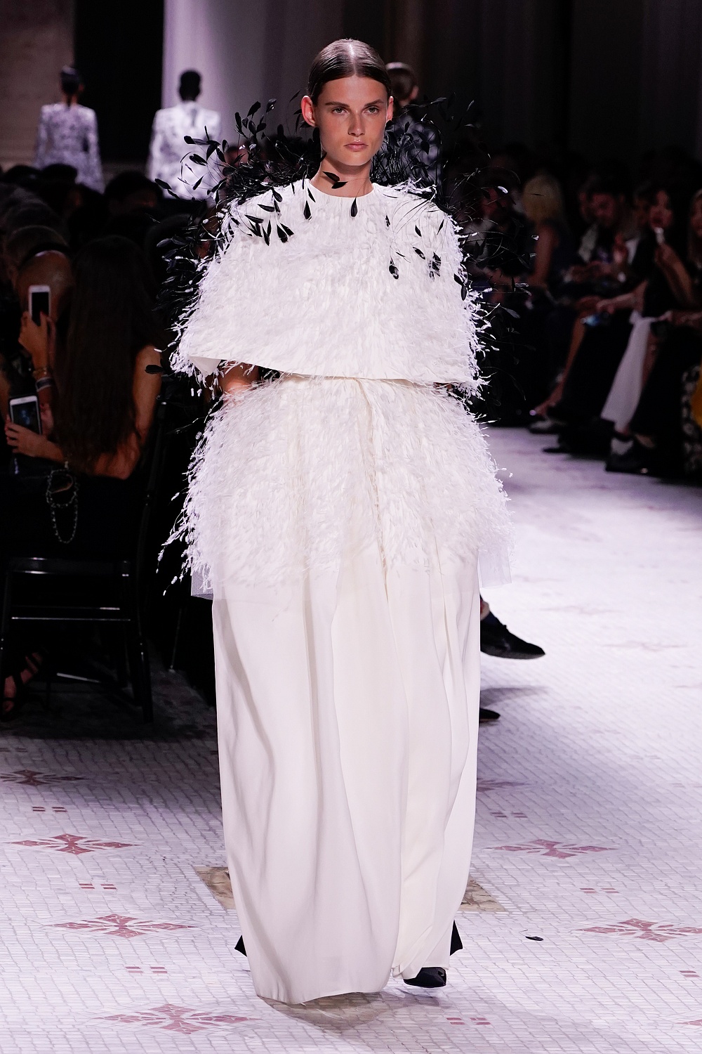 Второй день Недели высокой моды в Париже завершал показ Givenchy. Осенне-зимнюю коллекцию 2019/2020 под названием «Радикальное благородство» Клэр Уэйт Келлер показала в Музее декоративного искусства. В новом сезоне дизайнер признается в любви перьям, стразам, стеклярусу и цветочным орнаментам. Помимо черного Клэр делает ставку на мятный, серый и розовый цвета, а из тканей предпочитает атлас и бархат. Компанию изящным платьям составили ботильоны из пластика, колготки-сетка и бунтарские прически.
