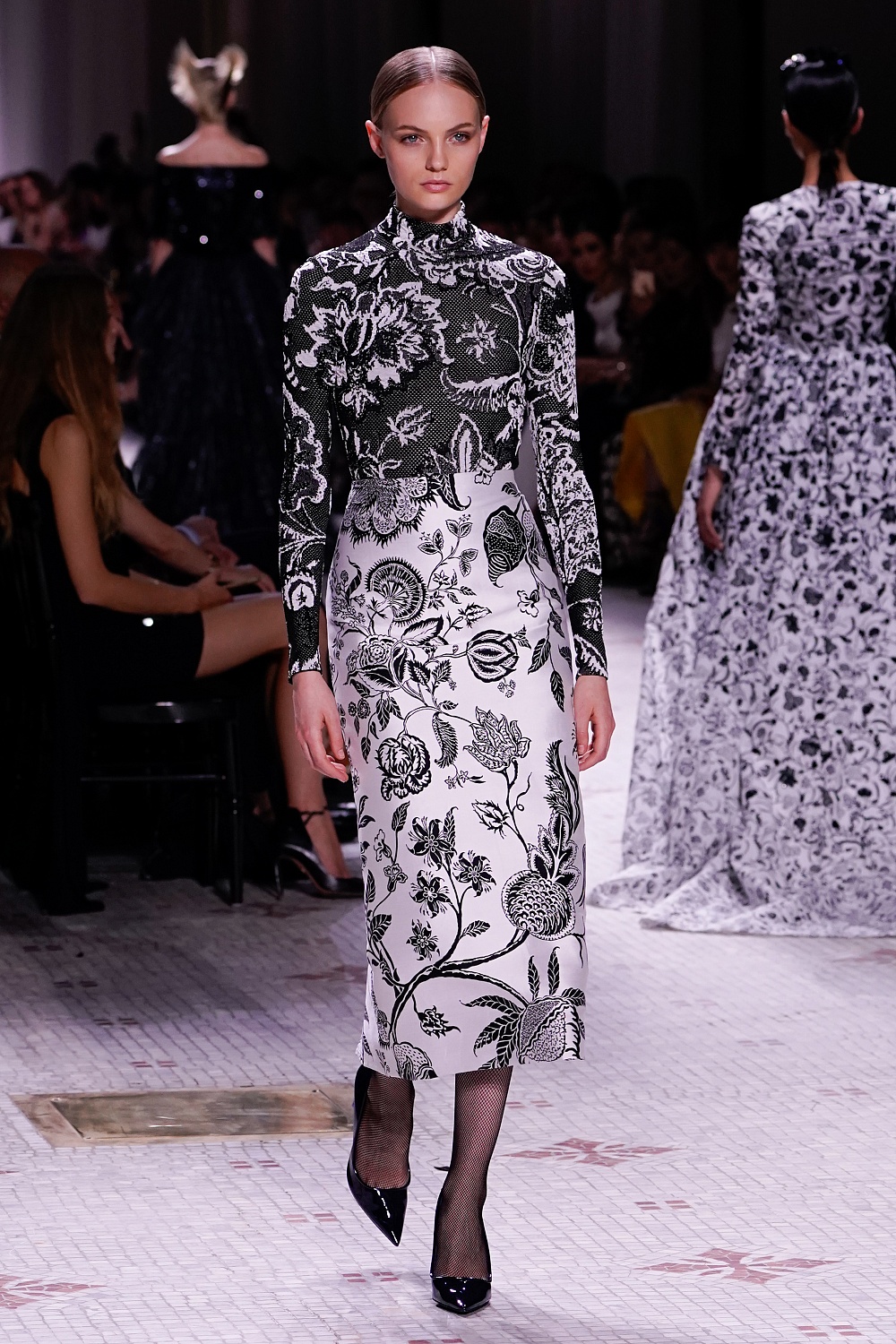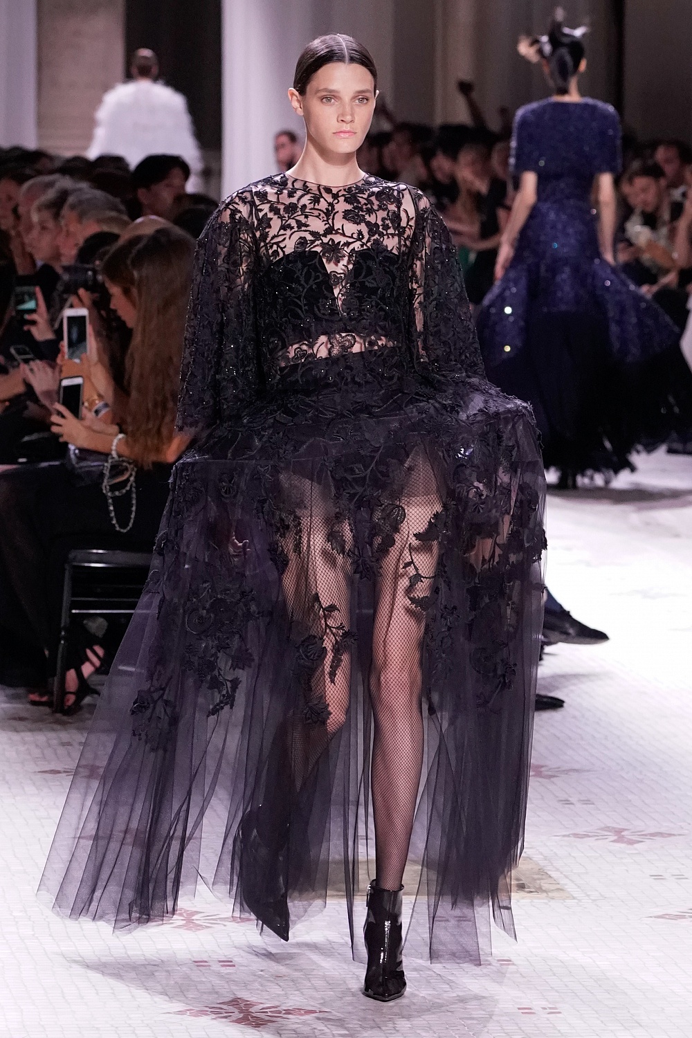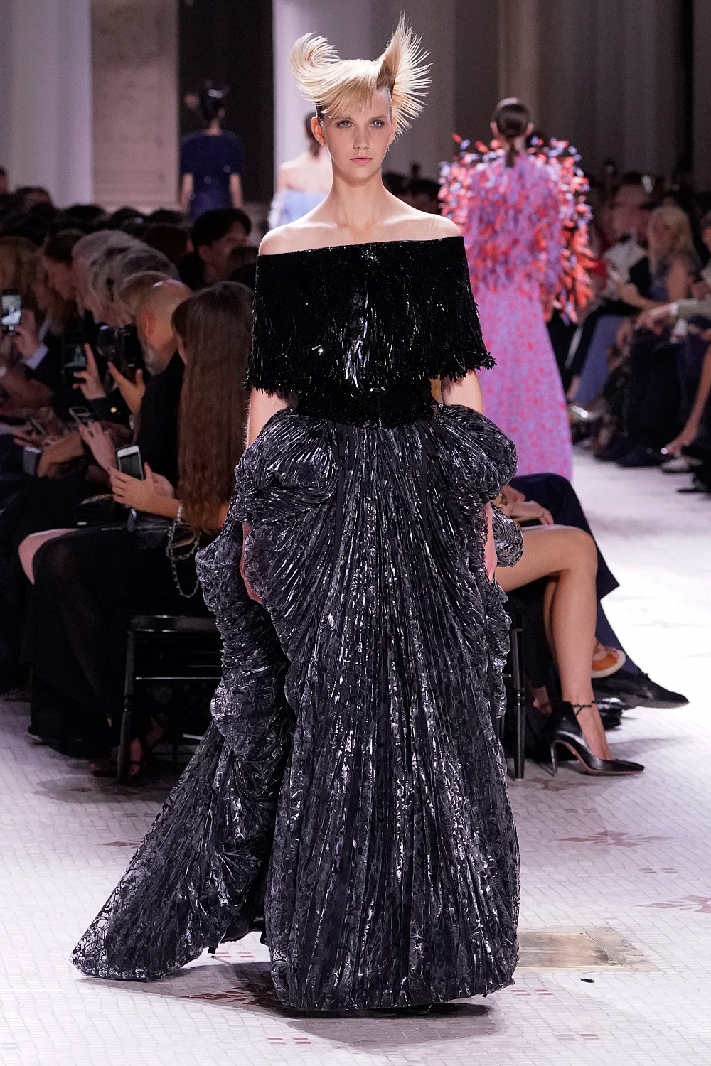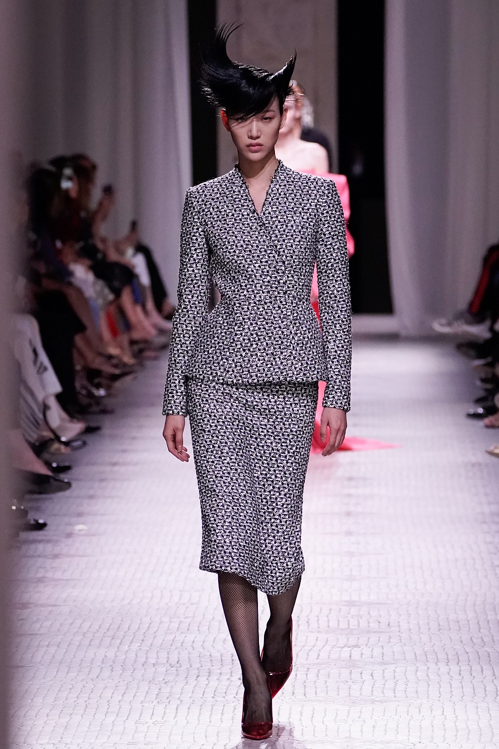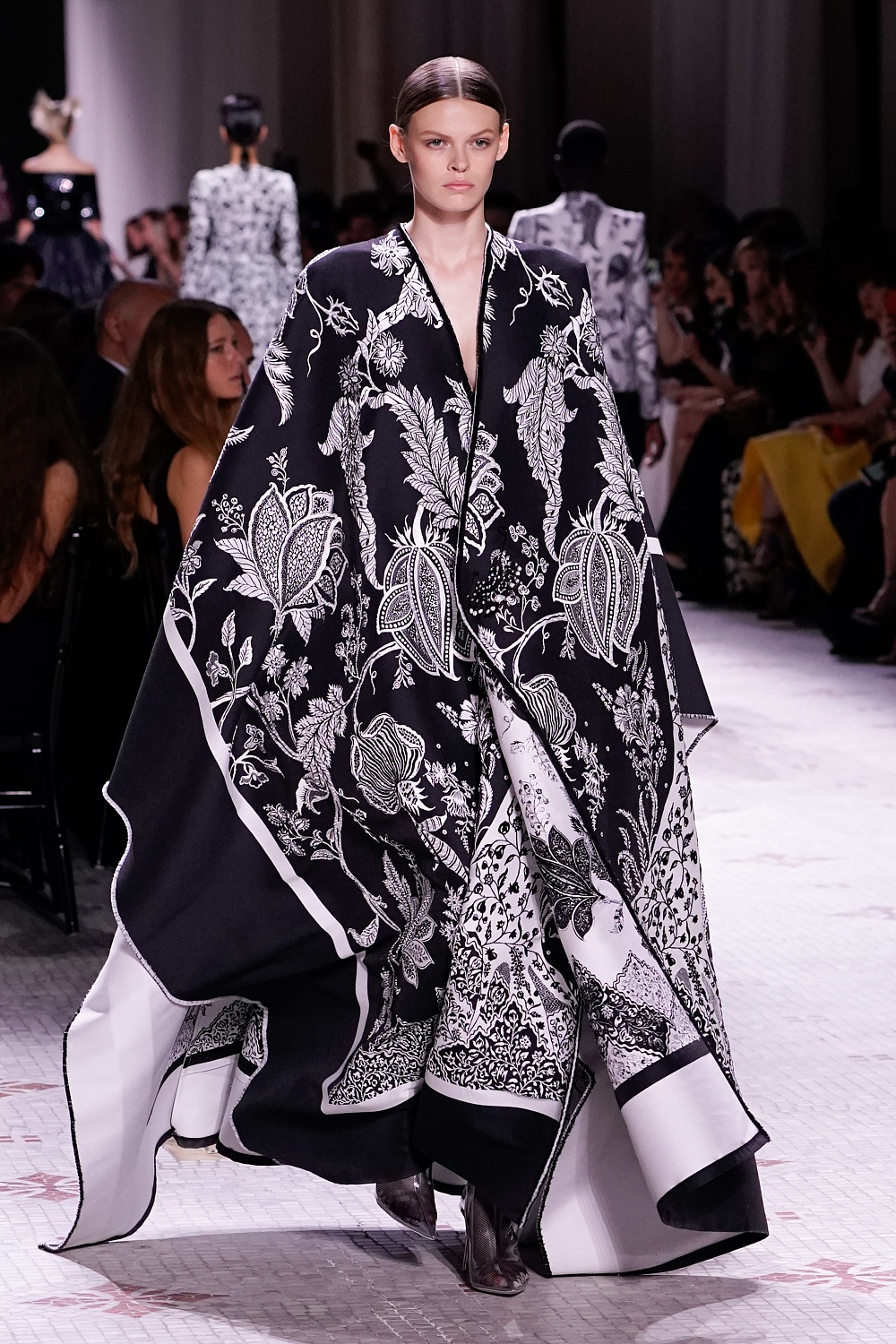 Второй день Недели высокой моды в Париже завершал показ Givenchy. Осенне-зимнюю коллекцию 2019/2020 под названием «Радикальное благородство» Клэр Уэйт Келлер показала в Музее декоративного искусства. В новом сезоне дизайнер признается в любви перьям, стразам, стеклярусу и цветочным орнаментам. Помимо черного Клэр делает ставку на мятный, серый и розовый цвета, а из тканей предпочитает атлас и бархат. Компанию изящным платьям составили ботильоны из пластика, колготки-сетка и бунтарские прически.