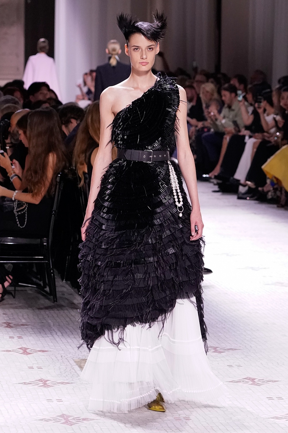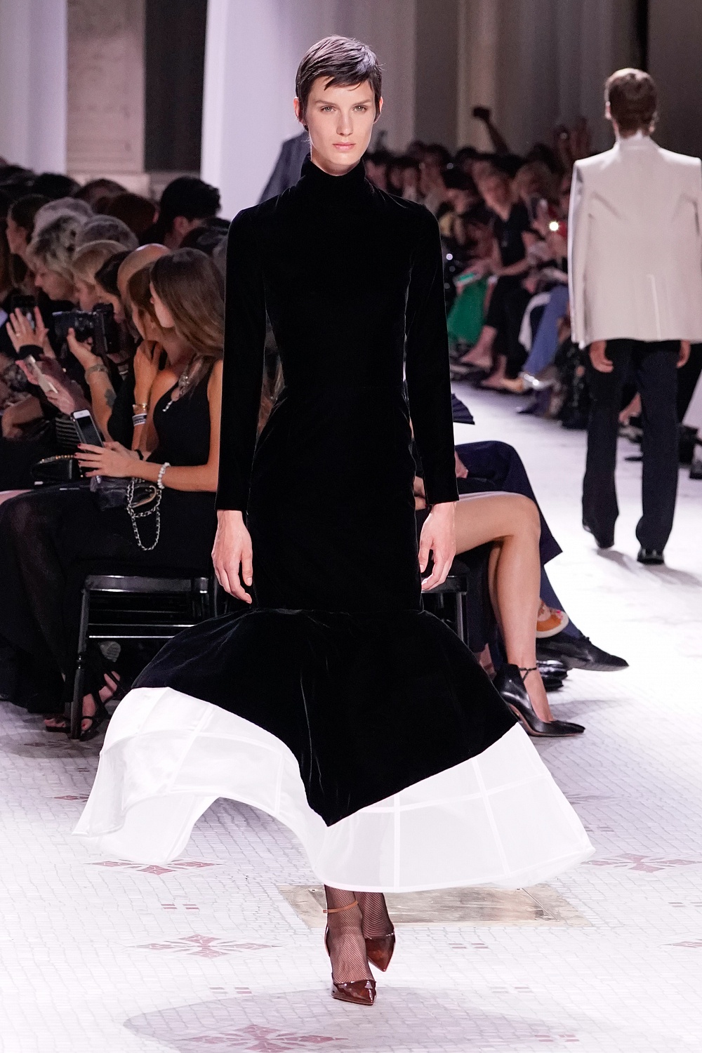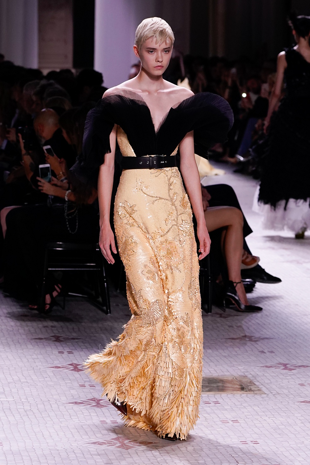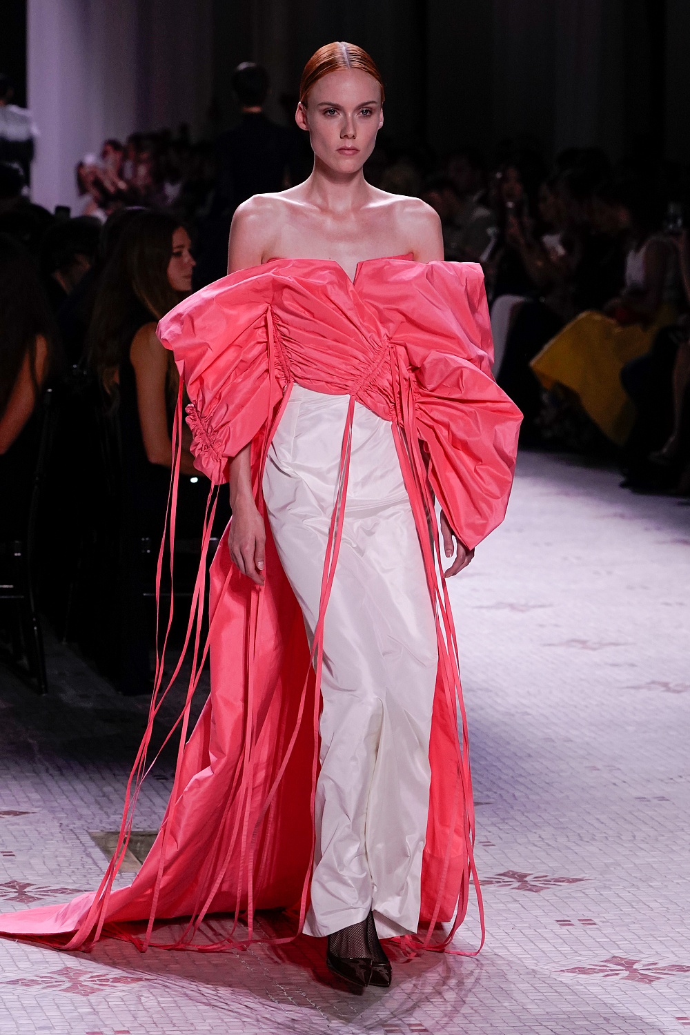 Второй день Недели высокой моды в Париже завершал показ Givenchy. Осенне-зимнюю коллекцию 2019/2020 под названием «Радикальное благородство» Клэр Уэйт Келлер показала в Музее декоративного искусства. В новом сезоне дизайнер признается в любви перьям, стразам, стеклярусу и цветочным орнаментам. Помимо черного Клэр делает ставку на мятный, серый и розовый цвета, а из тканей предпочитает атлас и бархат. Компанию изящным платьям составили ботильоны из пластика, колготки-сетка и бунтарские прически.