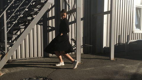 У мене є чорна сукня міді-довжини від & Other Stories, я називаю її «выдернуть шнур, выдавить стекло» (тобто для екстрених випадків, коли просто нічого одягнути). Тепер у мене з’явилось взуття з тим же статусом – бежеві NMD_R1, здається, підходять для будь-яких подій.