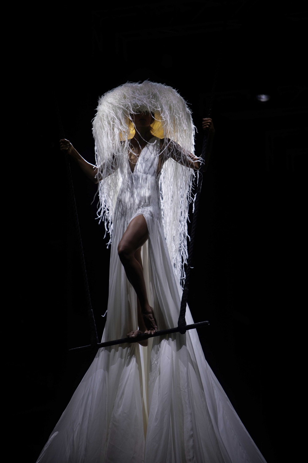 За визуальные эффекты, которые проецировались на нереально длинные белоснежные платья, отвечал фотограф и режиссер Ник Найт.