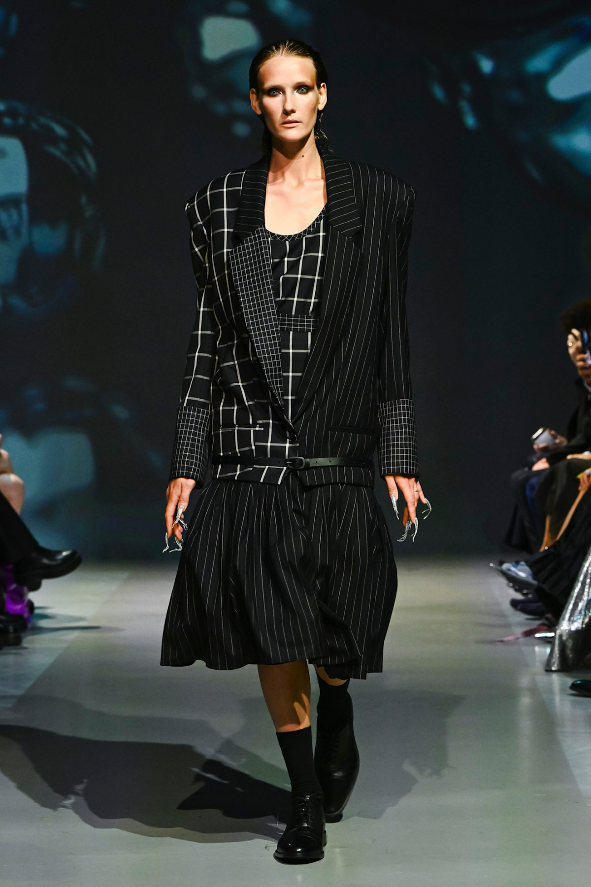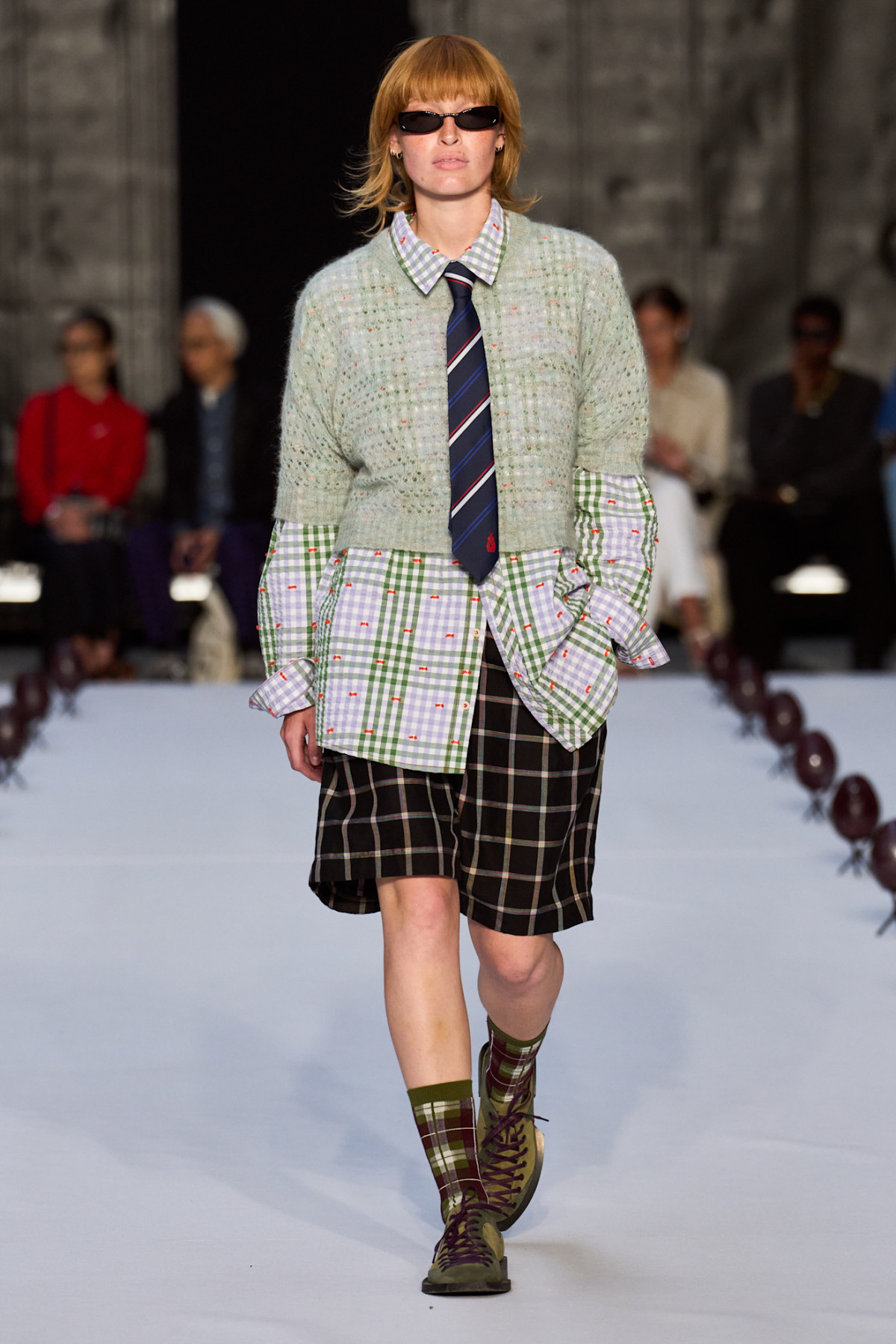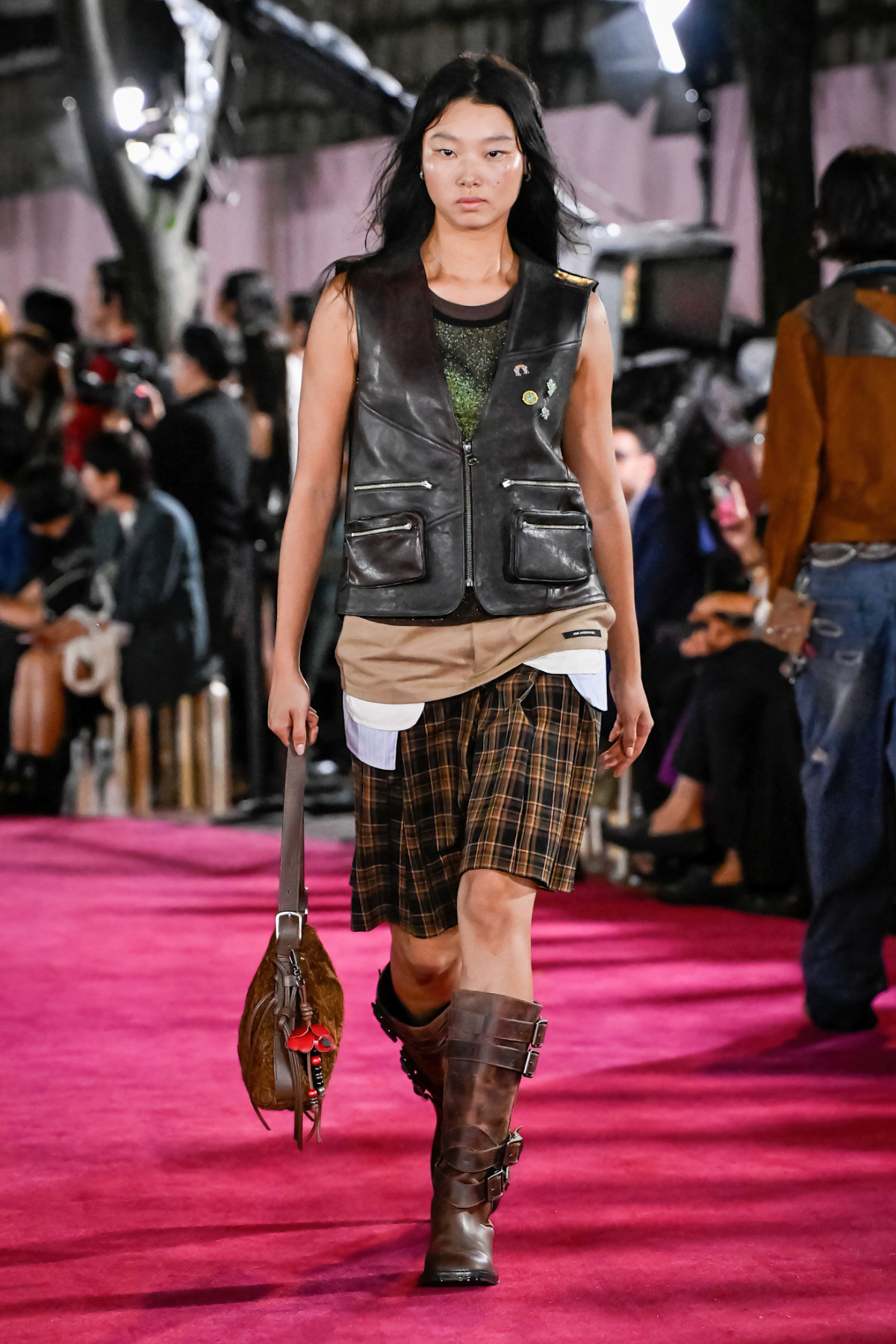 Аксесуари також відіграють важливу роль. Це шкіряні ремені, окуляри в тонкій металевій оправі, класичні годинники, лофери або оксфорди, іноді берети чи структуровані сумки. Усе виглядає так, ніби було знайдено у вінтажній крамниці або позичено з гардеробу минулих поколінь.