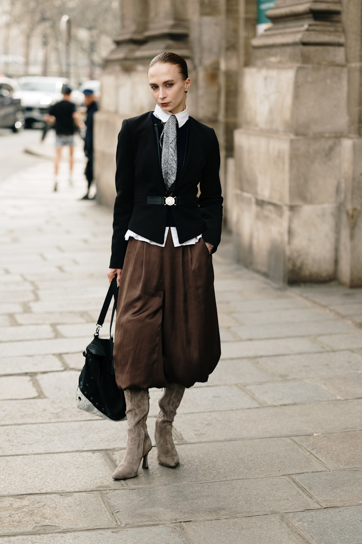 У моді dark academia перетворюється на впізнаваний гардероб, який легко уявити навіть без пояснень. Це довгі вовняні пальта, класичні сорочки у світлих відтінках, гольфи, піджаки й жилети з твіду або щільної тканини. Усе виглядає стримано, трохи вінтажно і дуже структуровано, ніби кожна річ має свою історію. Низ зазвичай складається з прямих штанів або плісированих спідниць міді-довжини, які додають руху й м’якості загальному силуету.