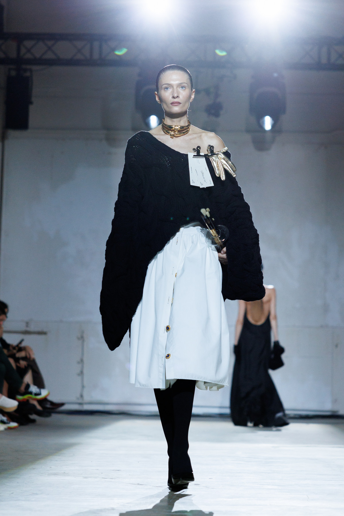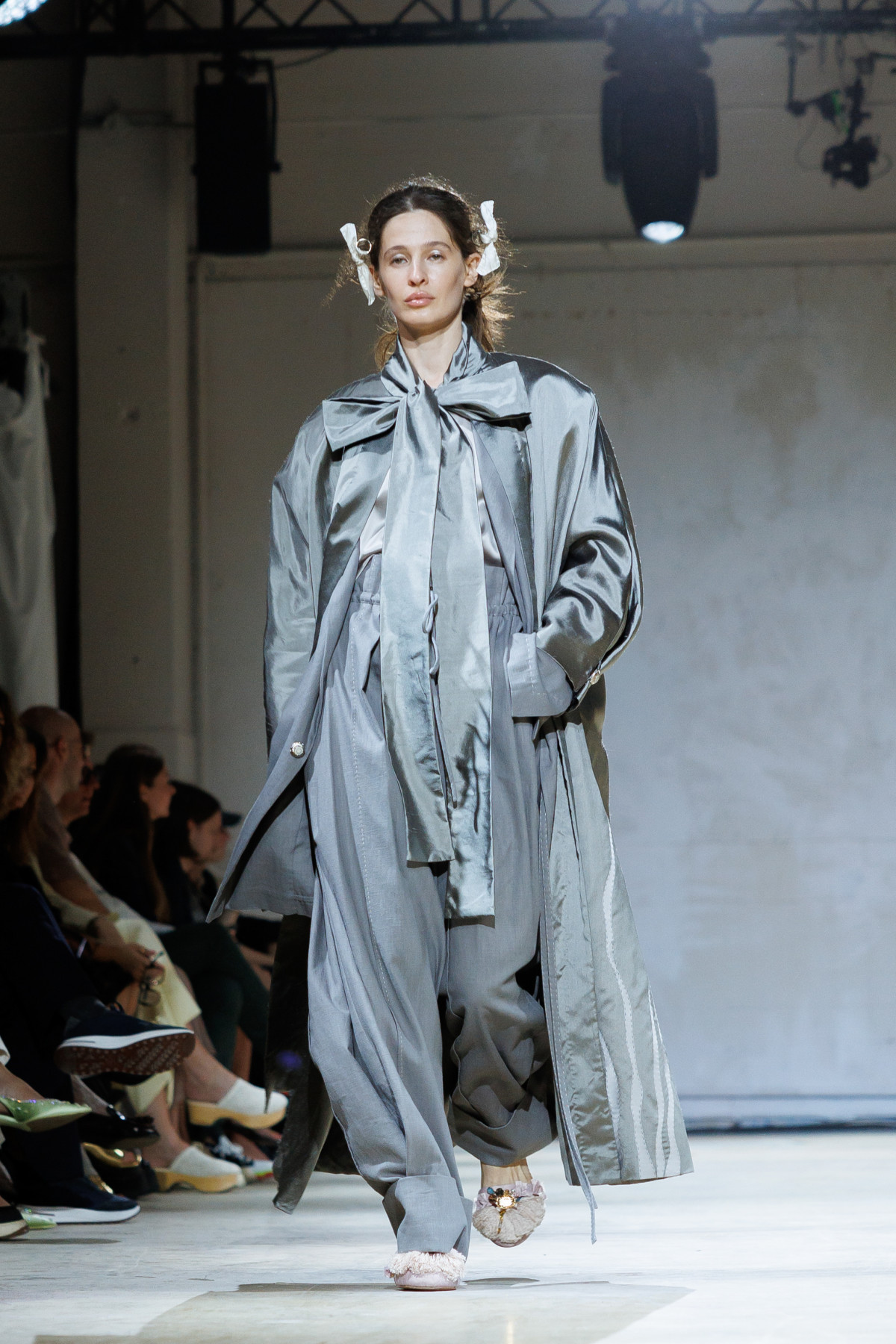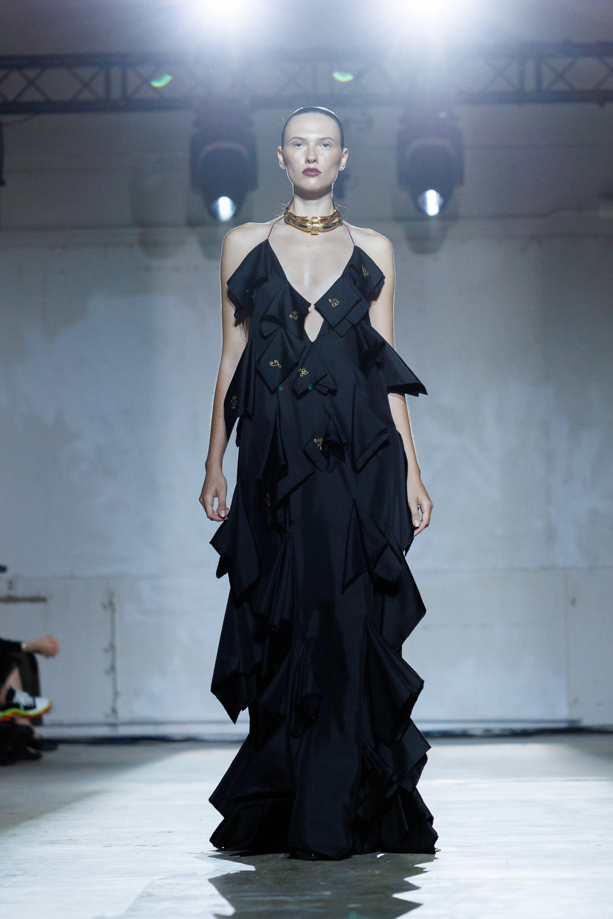 Сам показ складався з кількох частин. Спершу глядачі могли насолодитися унікальним оперним виступом Сусанни Чахоян, що вже саме по собі було неабияким перформансом. Згодом же відкрився погляд на нову колекцію дизайнерки, що поєднала в собі стриманість переважно чорно-білої палітри з експресією сценічних форм. На подіумі з’явилися вишукані сукні з декоративними зав’язками, оксамитні халати, вільні шовкові силуети та навіть сяйливе золотисте пальто, поєднане з широкими штанами з різноманітними декоративними деталями та сатиновим топом. У цих образах було легко впізнати театральний дух, адже вони ніби створені для великої сцени.