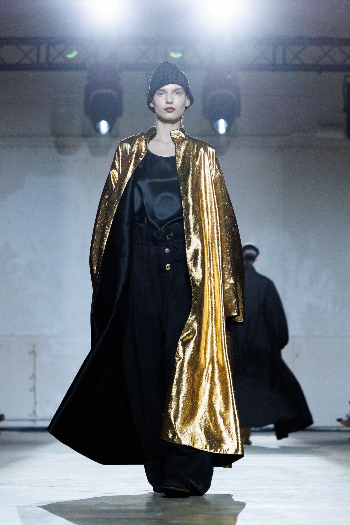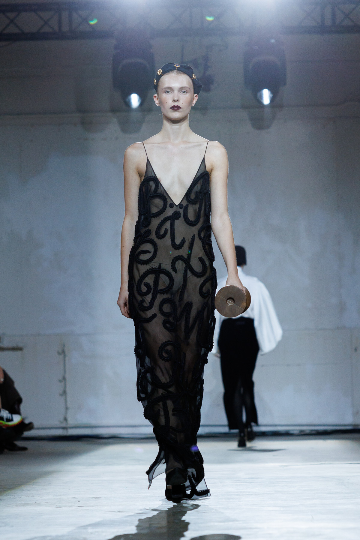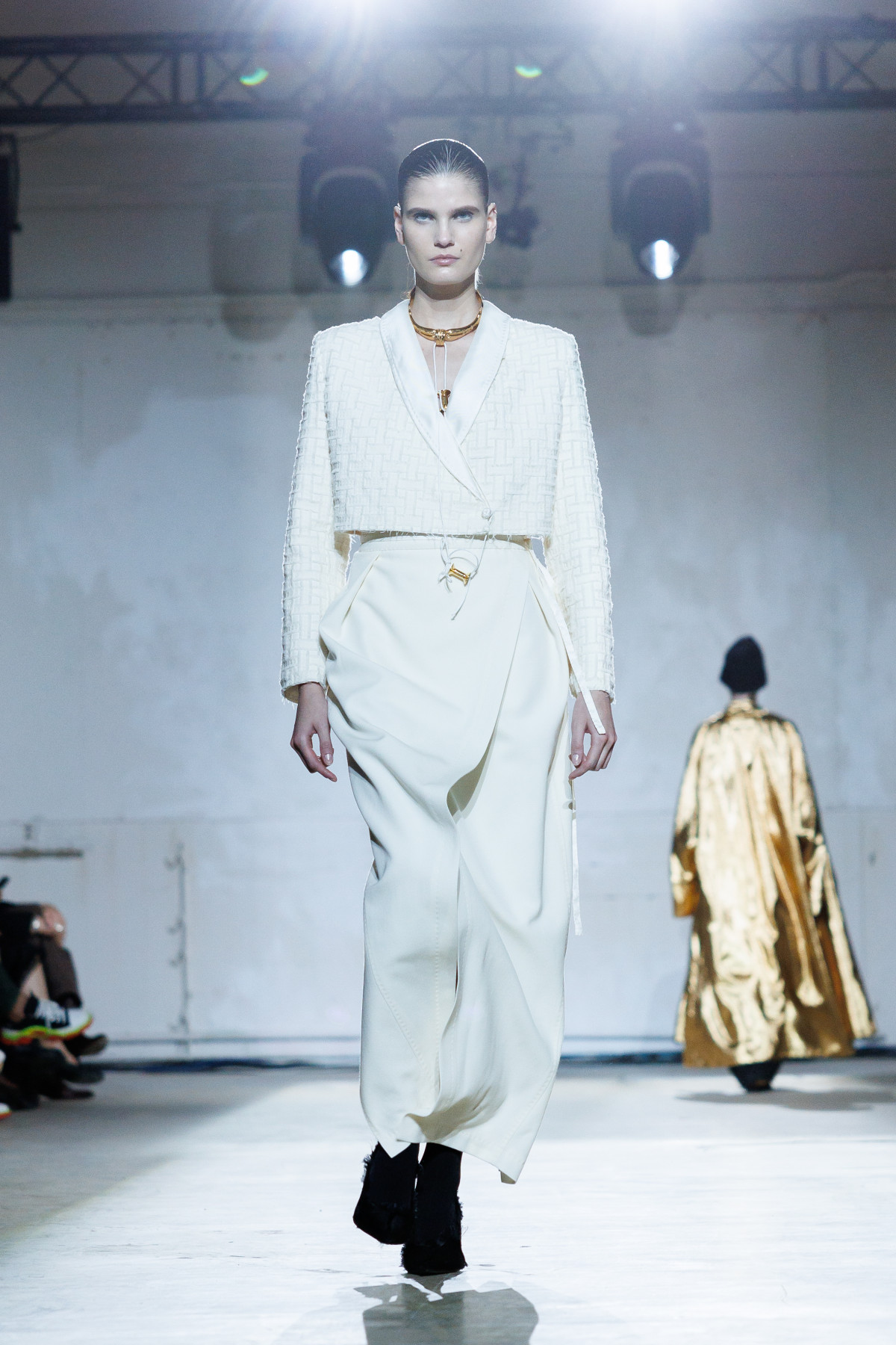 Сам показ складався з кількох частин. Спершу глядачі могли насолодитися унікальним оперним виступом Сусанни Чахоян, що вже саме по собі було неабияким перформансом. Згодом же відкрився погляд на нову колекцію дизайнерки, що поєднала в собі стриманість переважно чорно-білої палітри з експресією сценічних форм. На подіумі з’явилися вишукані сукні з декоративними зав’язками, оксамитні халати, вільні шовкові силуети та навіть сяйливе золотисте пальто, поєднане з широкими штанами з різноманітними декоративними деталями та сатиновим топом. У цих образах було легко впізнати театральний дух, адже вони ніби створені для великої сцени.