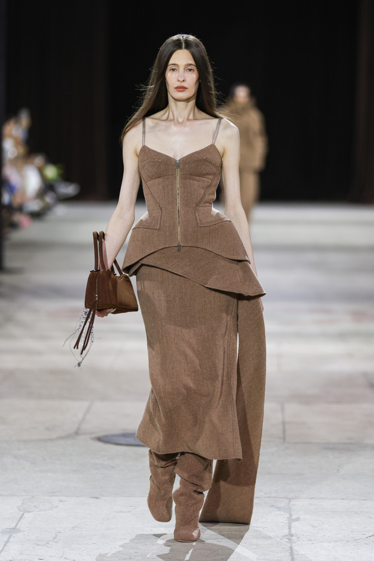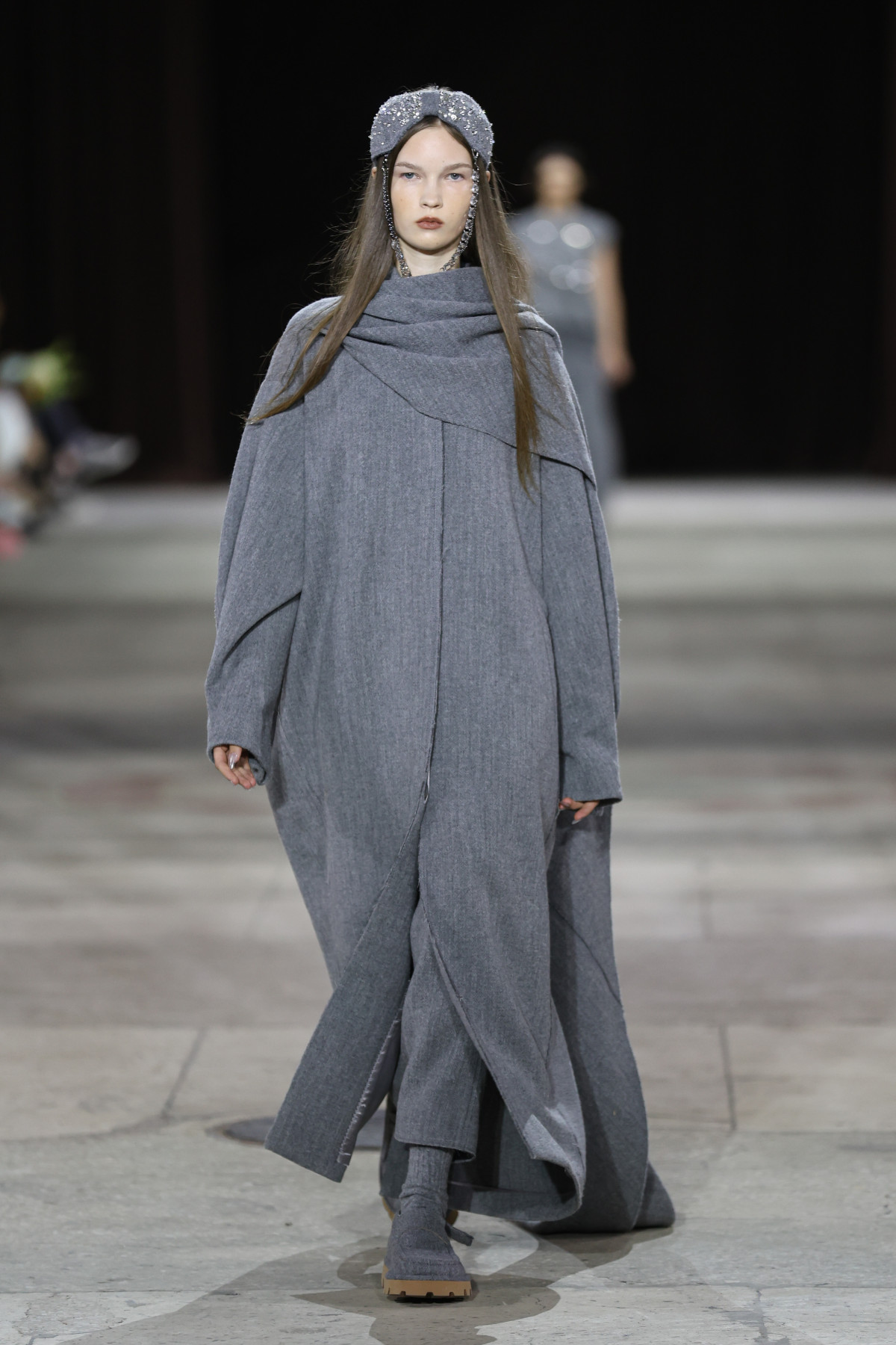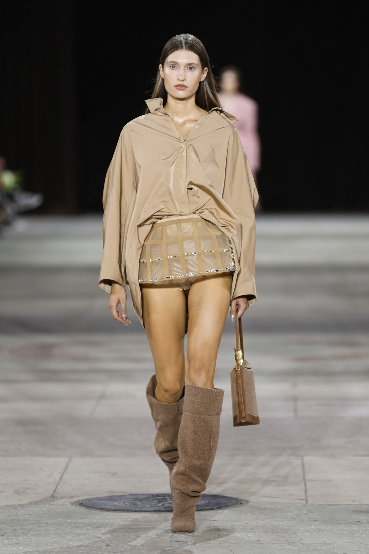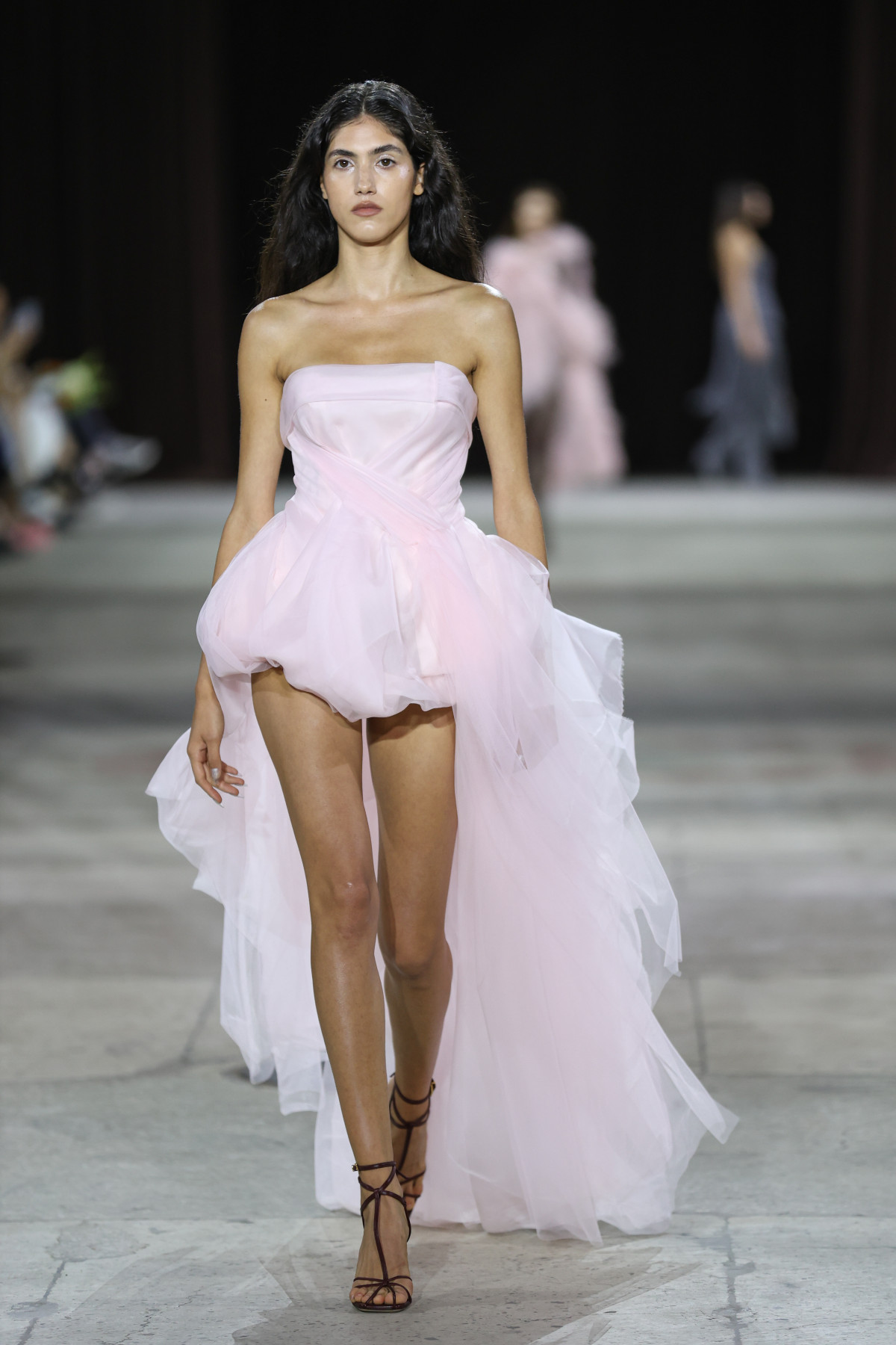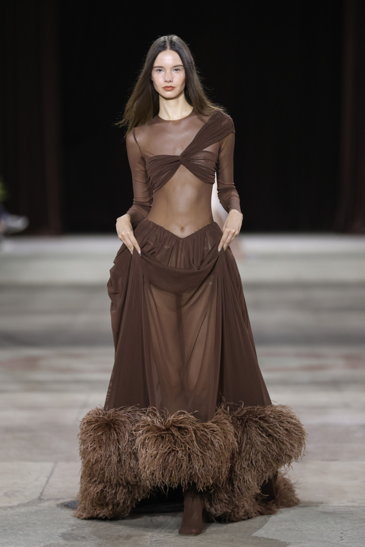 Гостей UFW запросили до секретної локації поза межами Мистецького арсеналу. Нею став павільйон КИТ на ВДНГ — великий культурний простір, створений для подій, які мають зміст. І як можна було зрозуміти, місце було обране надзвичайно вдало. На кілька годин локація перетворилася на своєрідний осередок краси та щирого кохання, що повністю відображав настрій лінійки.
