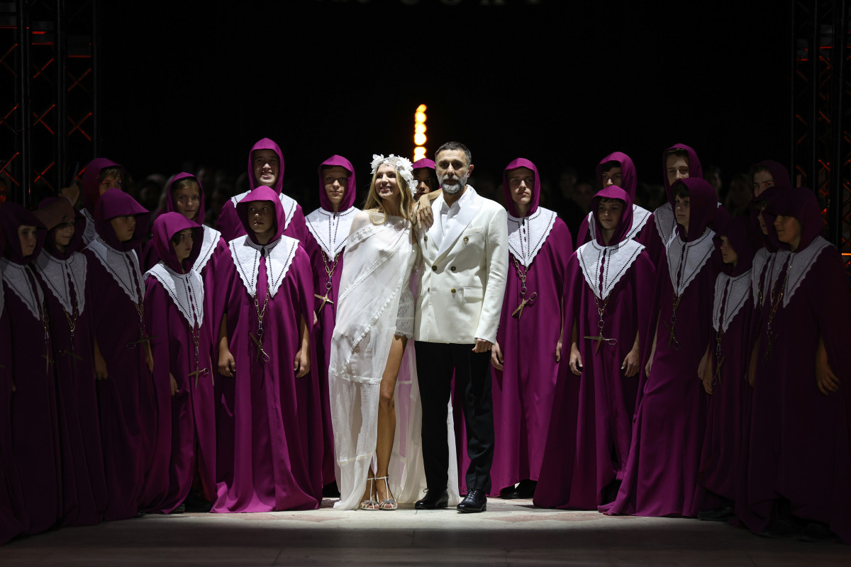Ну і найсоковитіша та найзнаковіша мить показу — фінал, яким стало не що інше, як весілля самої Каті Сільченко із її коханим Сергієм Неклевою. Подіум перетворився на імпровізований костел із дитячим хором. На сцену вийшла наречена у витонченій весільній мінісукні з мереживом та накидкою, розшитою стразами. Слідом за нею — її партнер у білому смокінгу в тон вбрання коханої. Вони побралися на очах у більш ніж 600 гостей, сказавши омріяні «так» під час церемонії, яку провела сама Ірина Данилевська.