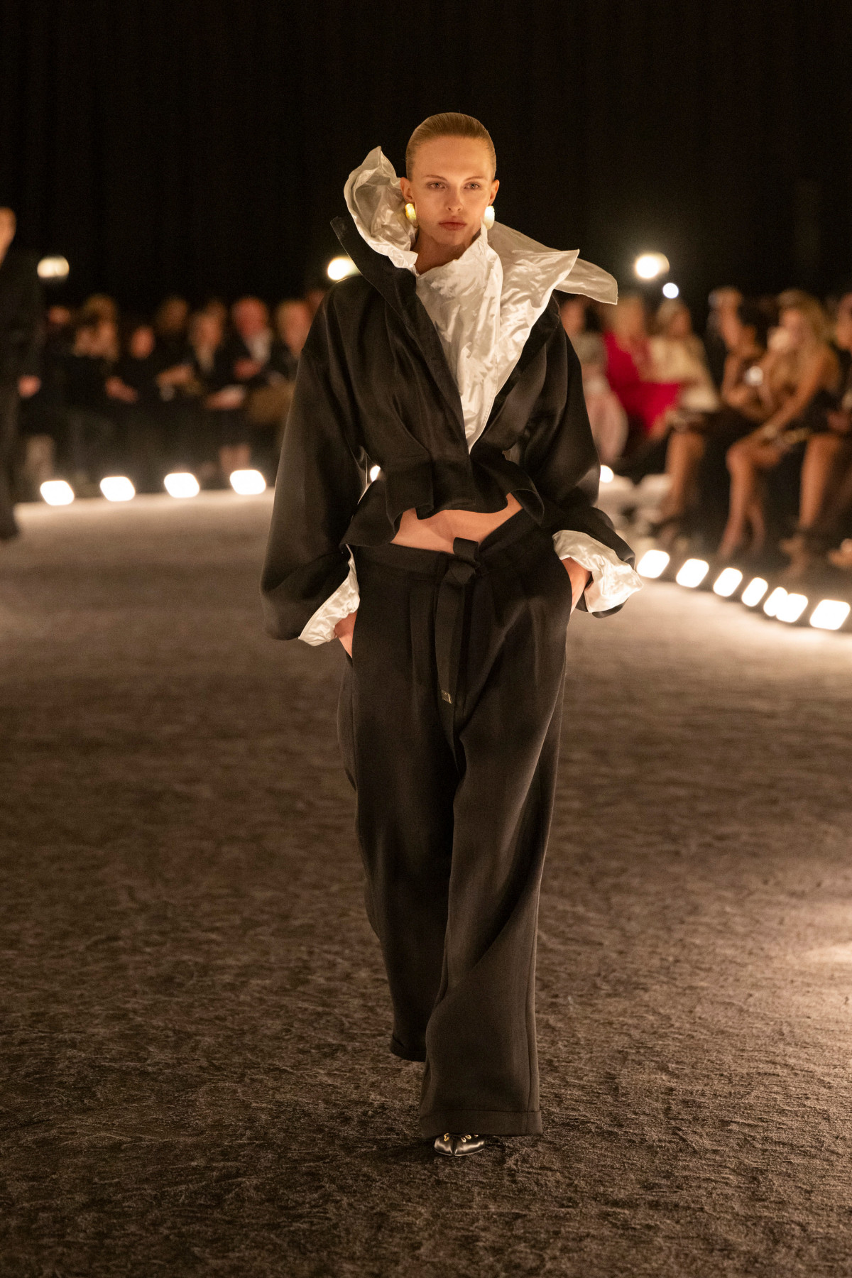 Цього сезону дизайнер запросив гостей до тьмяно освітленої зали Центру Помпіду. Шоу бренду стало останнім заходом у стінах музею перед тим, як він на кілька років зачинився на масштабну реконструкцію. І вибір місця насправді був не простим. Саме тут Даніель Розберрі познайомився з виставкою робіт Костянтина Бранкузі — румунського скульптора, який довгий час творив у Франції та увійшов до історії як один із засновників абстрактної скульптури. Його експозиція стала відправною точкою для креативного директора Schiaparelli, з якої й почалася робота над лінійкою.