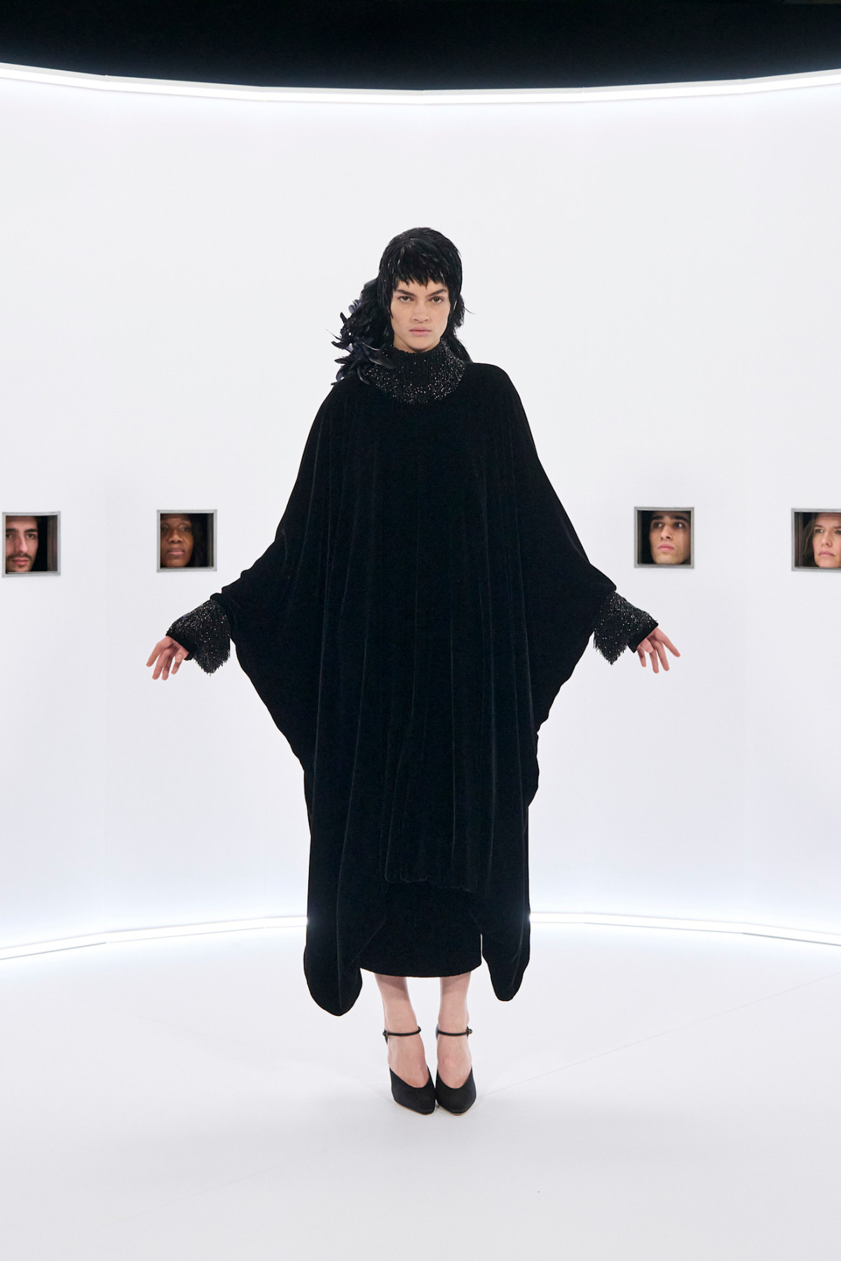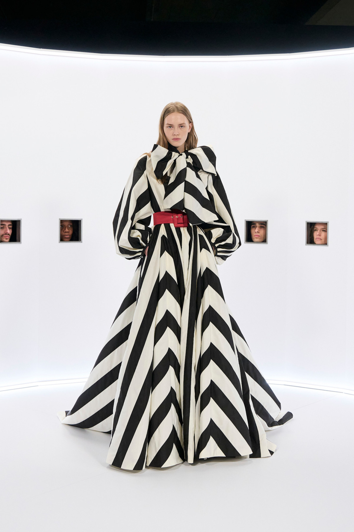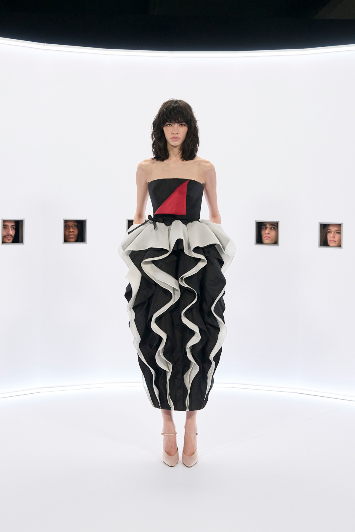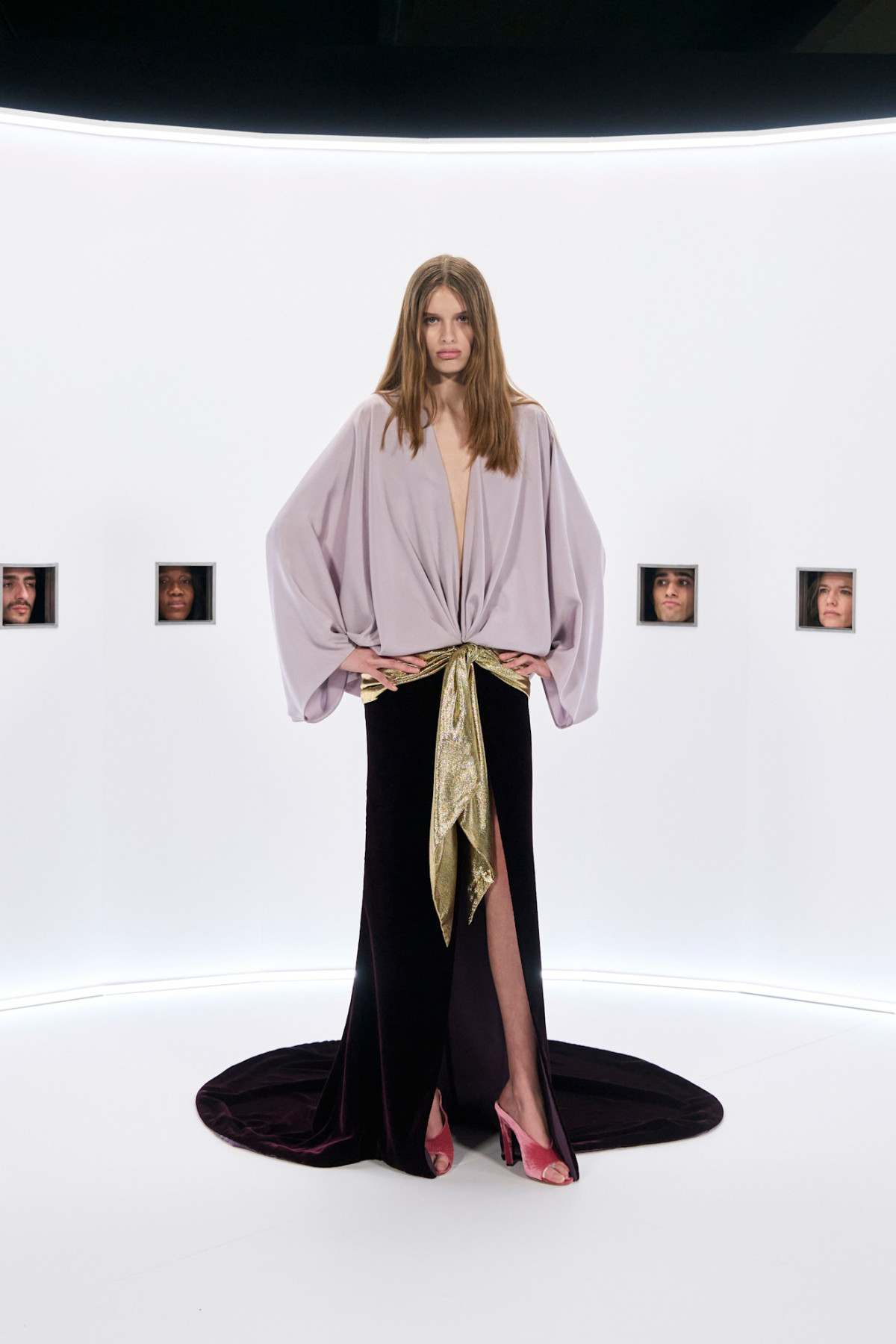 У самій колекції Мікеле залишився вірним власному почерку, але адаптував його до вимог couture. Складні образи, насичена декоративність, увага до символіки — усе це було подано стриманіше й зосереджено на майстерності ательє. Ключову роль відігравали текстильні рішення, ручна вишивка, робота з бісером і стеклярусом, а також багатошарові конструкції, які підкреслювали статус кожного образу як унікального виробу.