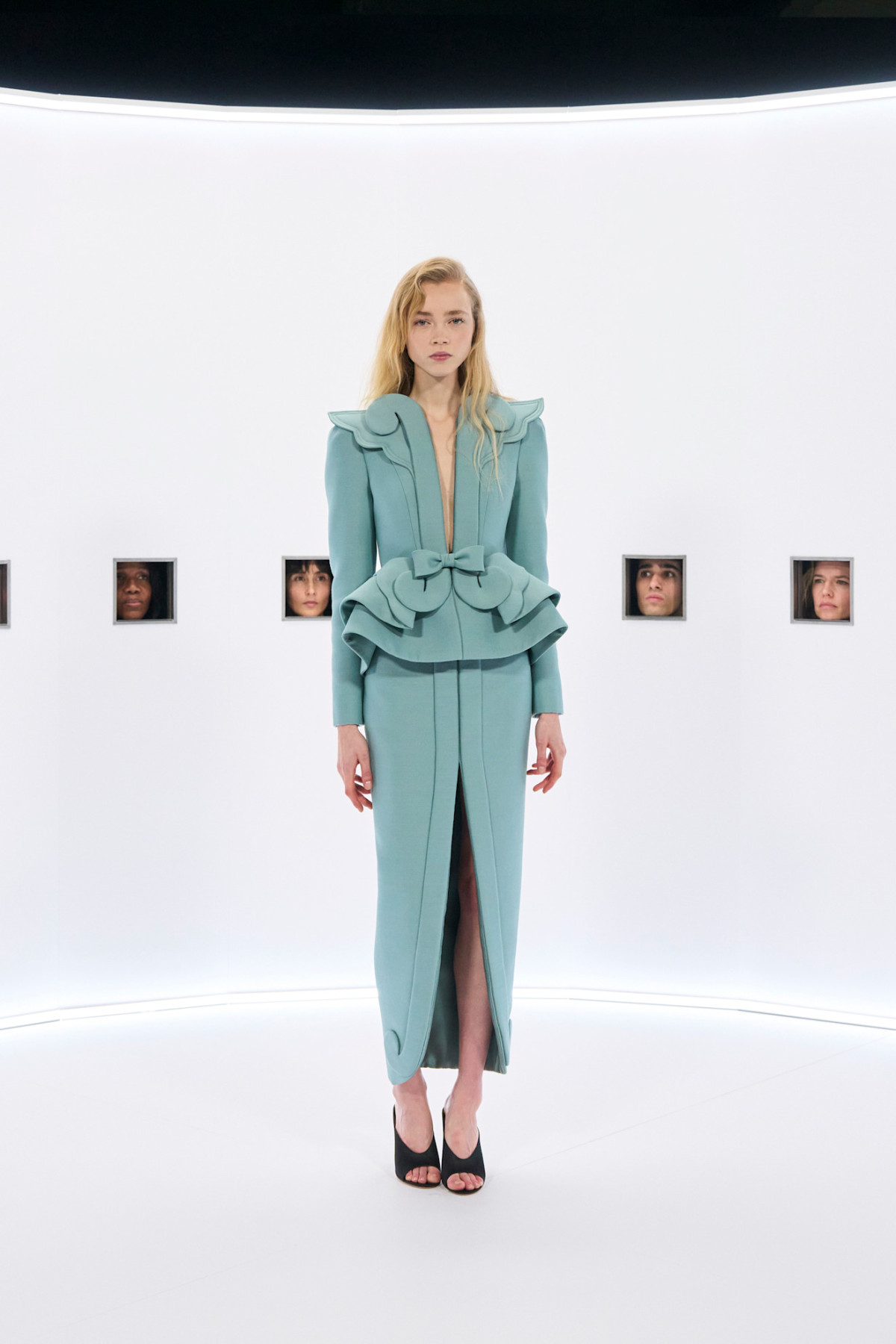 Окремої уваги заслуговував формат показу. Замість класичного подіуму Мікеле запропонував сценографію, натхненну кайзерпанорамою — популярним у XIX столітті оптичним атракціоном, що передував кінематографу. Моделі по черзі з’являлися в круглих просторах, а гості спостерігали за ними крізь невеликі віконця. Така побудова шоу повертала дистанцію між глядачем і образом, створюючи відчуття таємниці та інтимності — на противагу швидкому, поверхневому споживанню моди сьогодні.