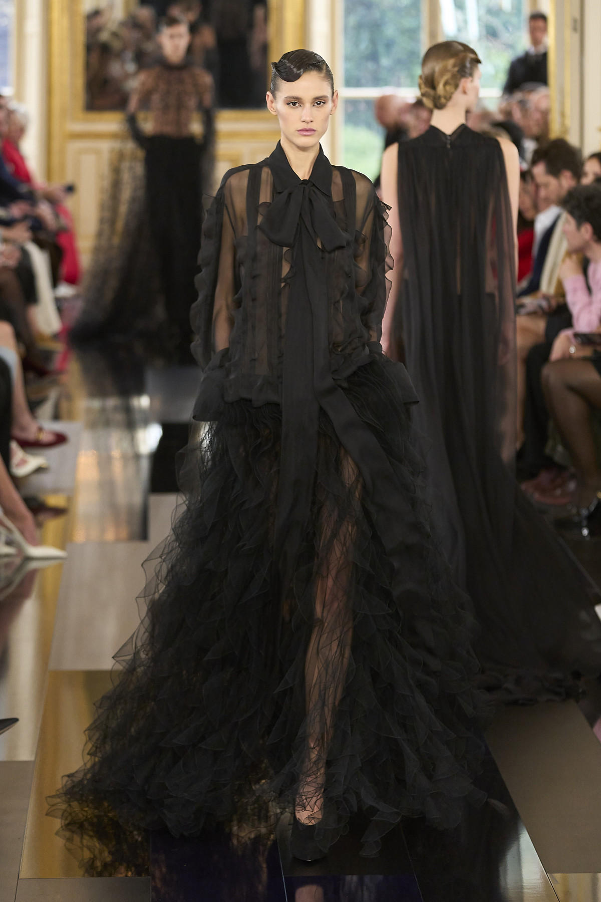 Ще зовсім нещодавно ми споглядали за буянням рожевих, зелених, блакитних відтінків у кутюрній колекції Valentino, однак у новій лінійці під назвою Le Noir П’єрпаоло Піччолі відмовився від використання яскравої колірної палітри й зупинив свій вибір лише на чорному. Звісно ж, це стало безпрограшним варіантом, адже чорний — базовий відтінок, який підійде кожному і який можна носити в будь-який сезон.