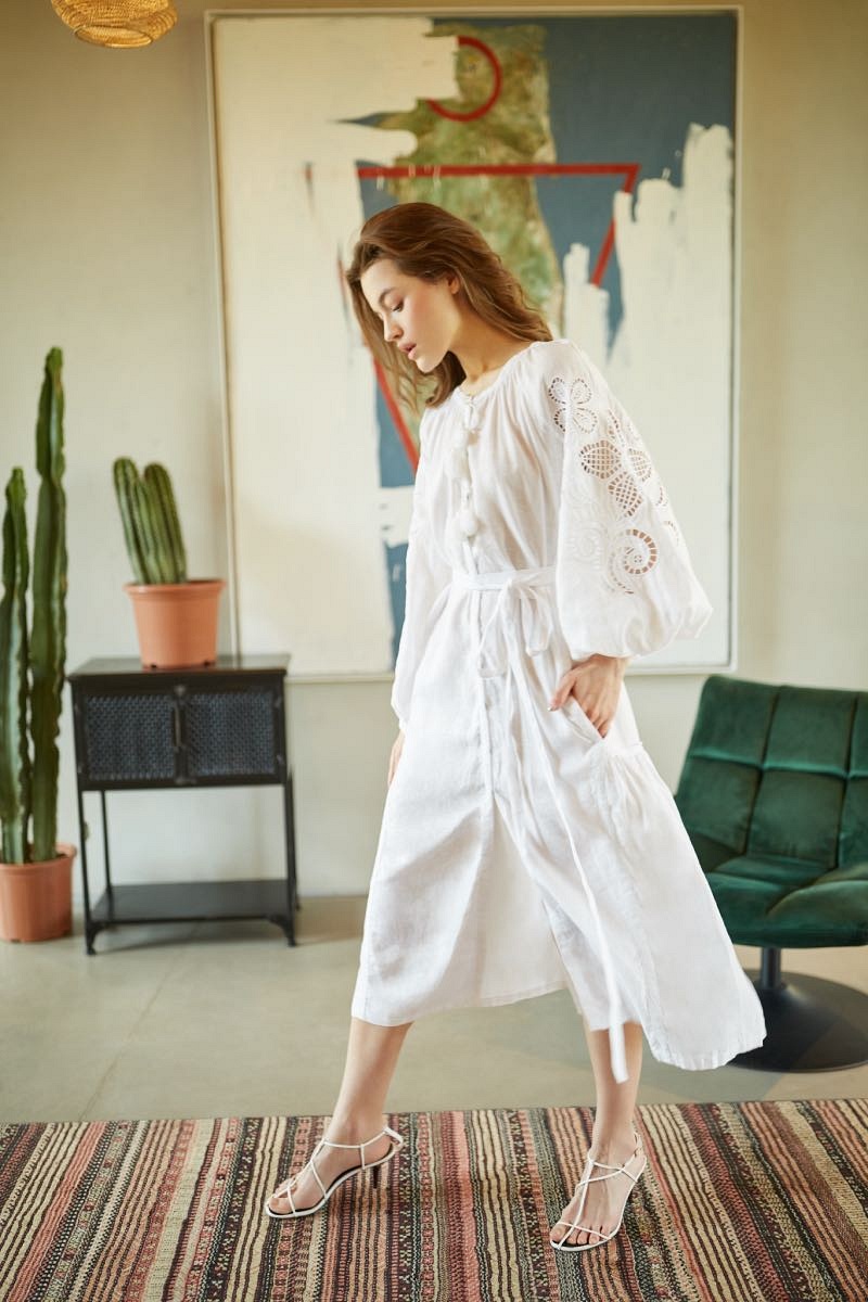 Белоснежная вышиванка — вечная классика, символизирующая мир, чистоту и невинность. Вышивка «белым по белому» — художественный прием, в котором рельефный узор вышивки создает игру света. На выходе мастера получают очень тонкую уникальную работу. Хотя белая одежда ассоциируется с торжеством, лаконичная вышиванка составит отличную компанию джинсовым шортам и грубым ботинкам.