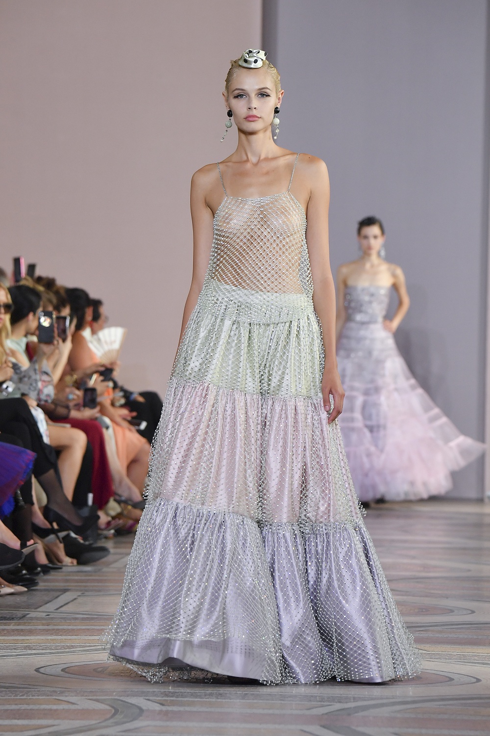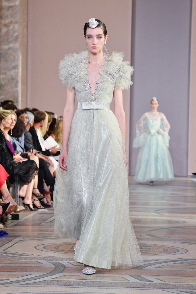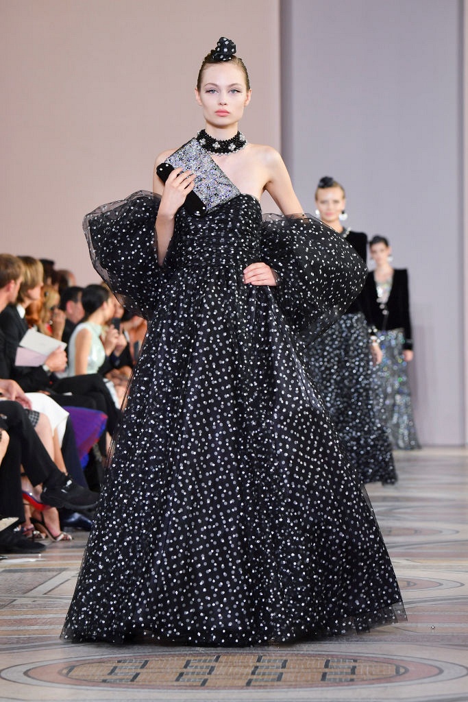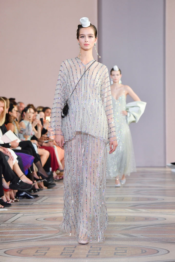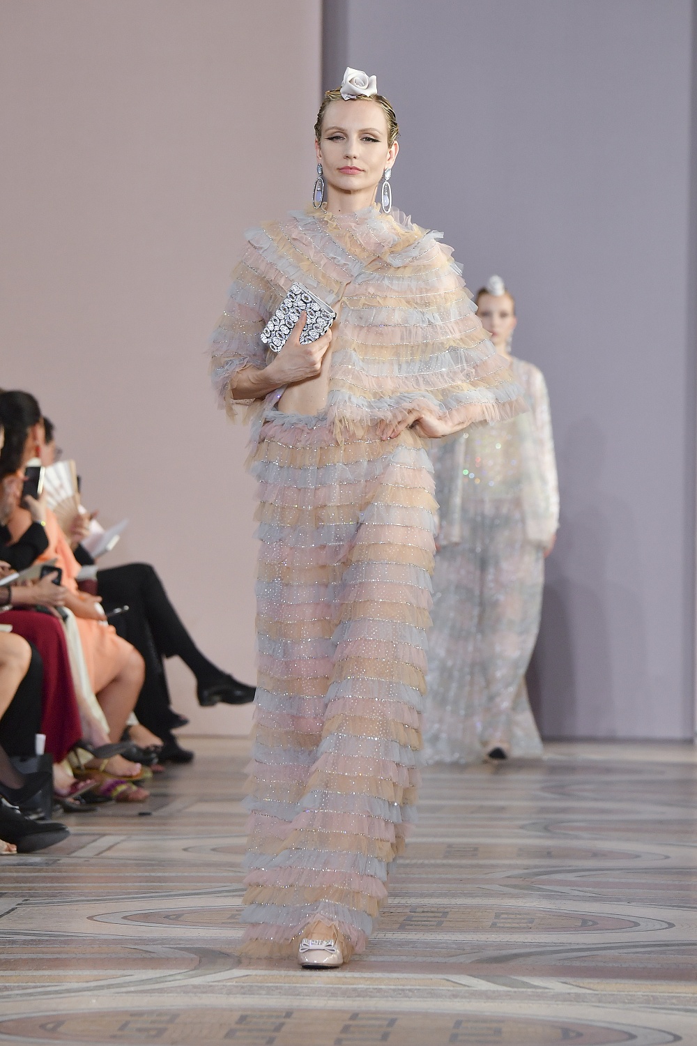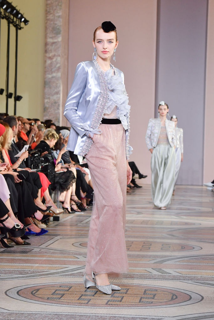Неделя высокой моды в Париже в самом разгаре. И на очереди — кутюрное шоу Giorgio Armani Privé. Осенне-зимняя коллекция, которую дизайнер представил в Пит-Пале, напоминала витрину кондитерского магазина. Мерцающие брюки-палаццо из органзы, воздушные платья с рюшами и воланами, полупрозрачные юбки и серьги из стекляруса — Джорджио Армани сделал ставку на изящность и кокетство.