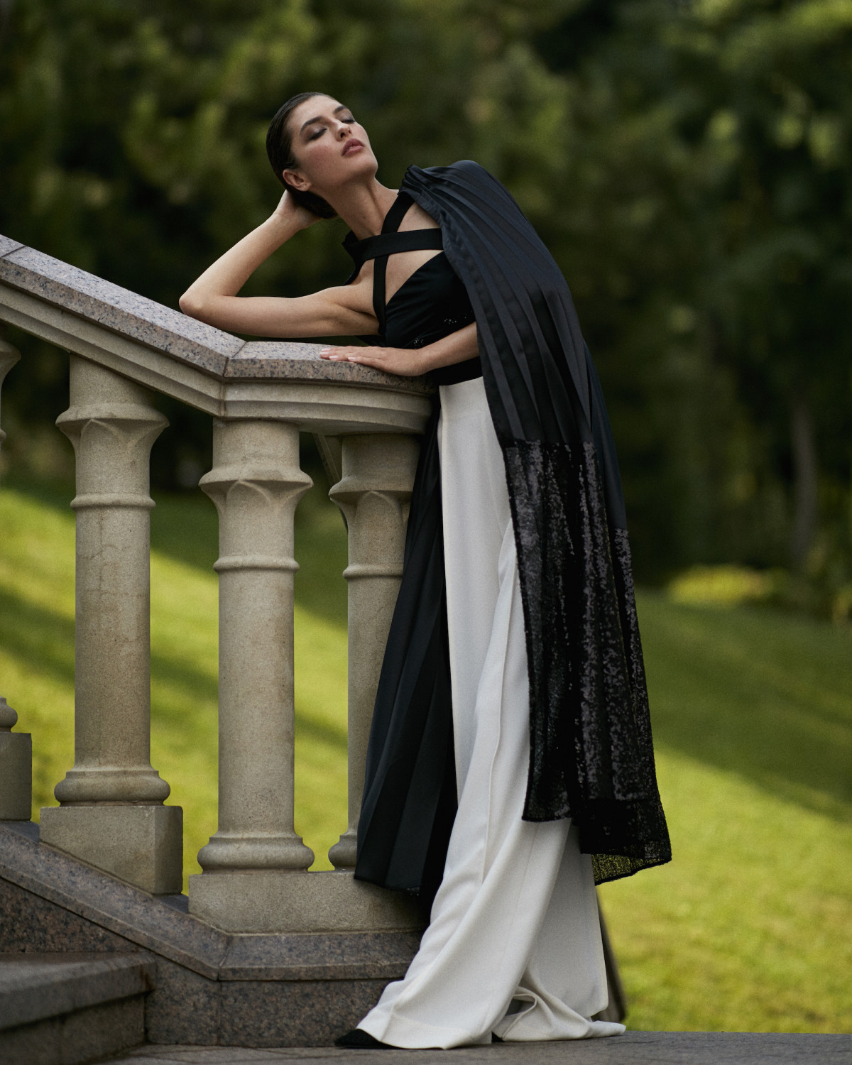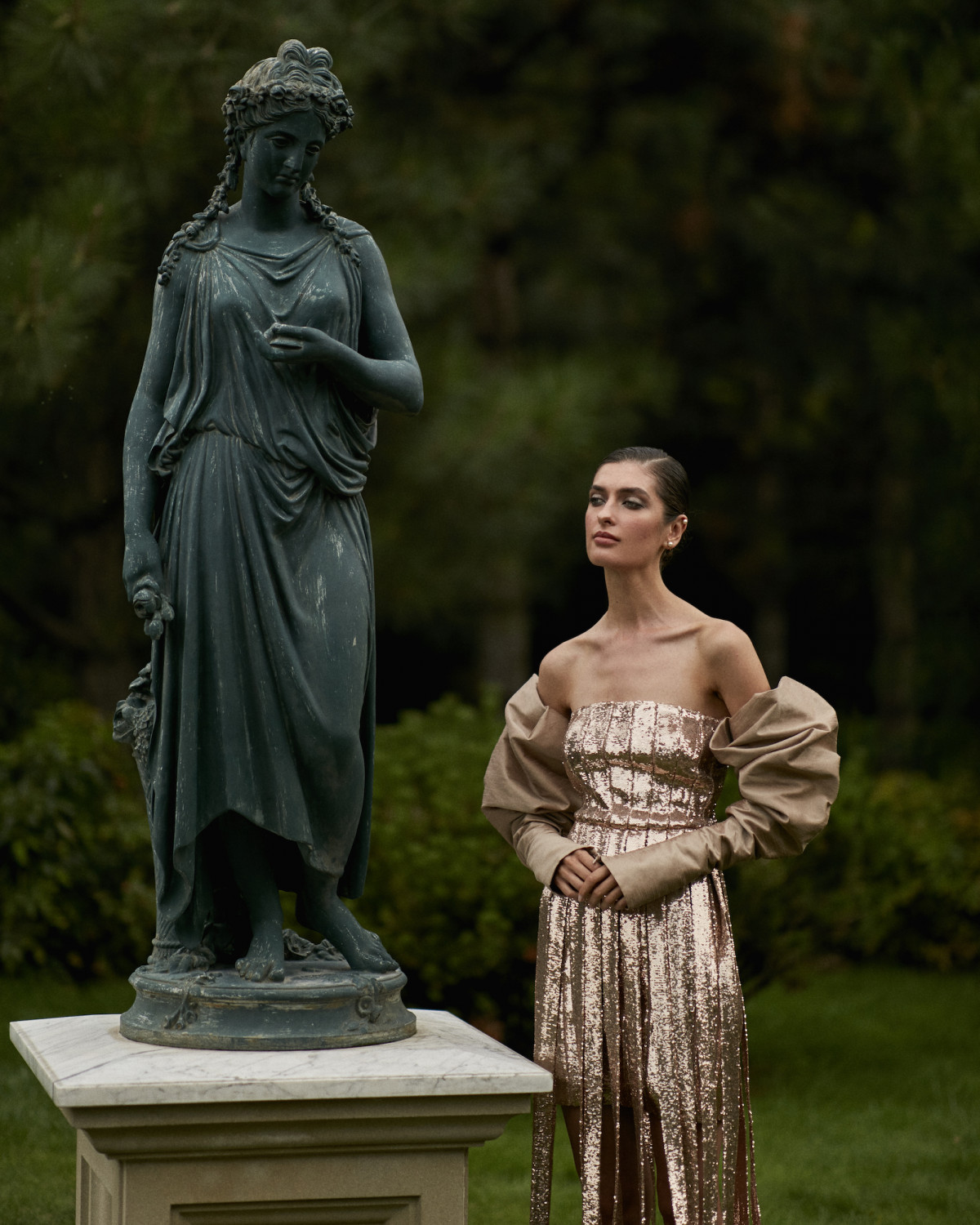 «Ситуация в мире не лучшим образом отразилась на сегменте вечерней одежды, однако к моменту начала локдауна коллекция была уже создана, — рассказывает креативный директор бренда Екатерина К. — Поэтому каждая наша новая съемка — это история о том, как носить нарядную одежду в новой реальности. Героиня Katrine K. остается верная архитектурному крою и роскошным тканям даже в сегодняшнее непростое время».