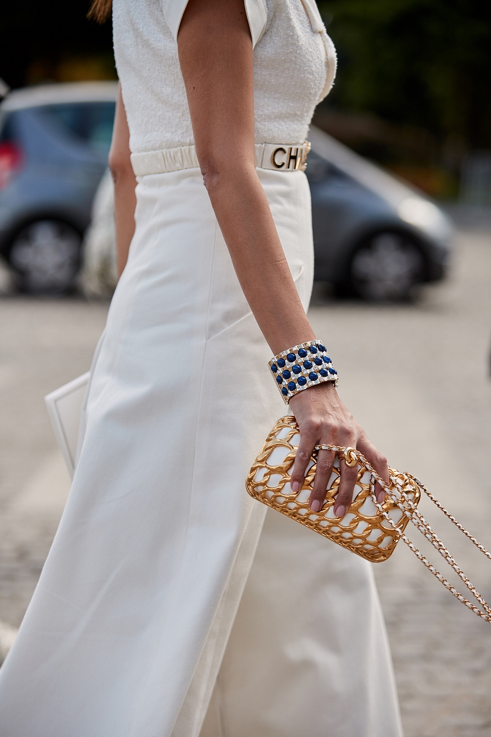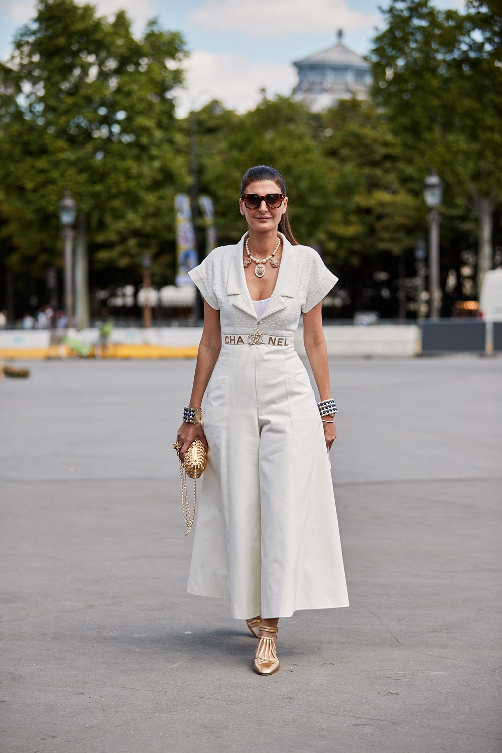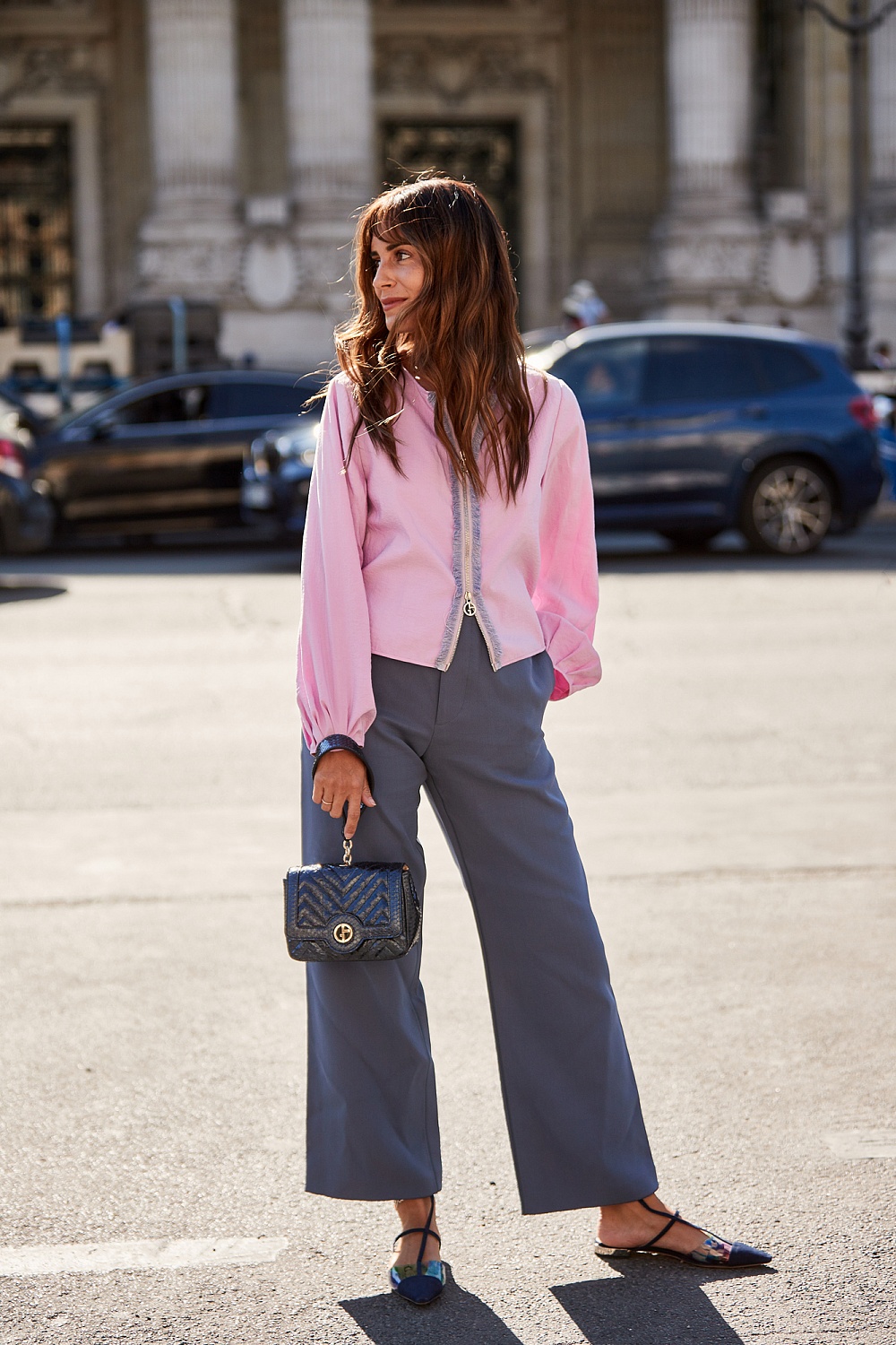 Широкие брюки с высокой посадкой, кроп-топы, платья с рукавами-воланами, соломенные клатчи, босоножки на тонких ремешках, много Chanel и розовый цвет – героини парижского street style показывают, как адаптировать главные тренды сезона к реальной жизни.