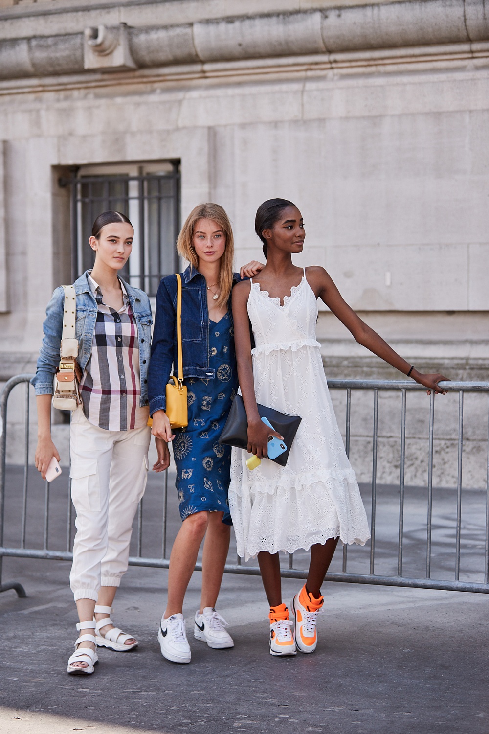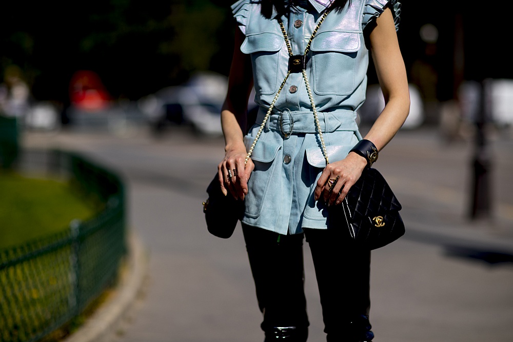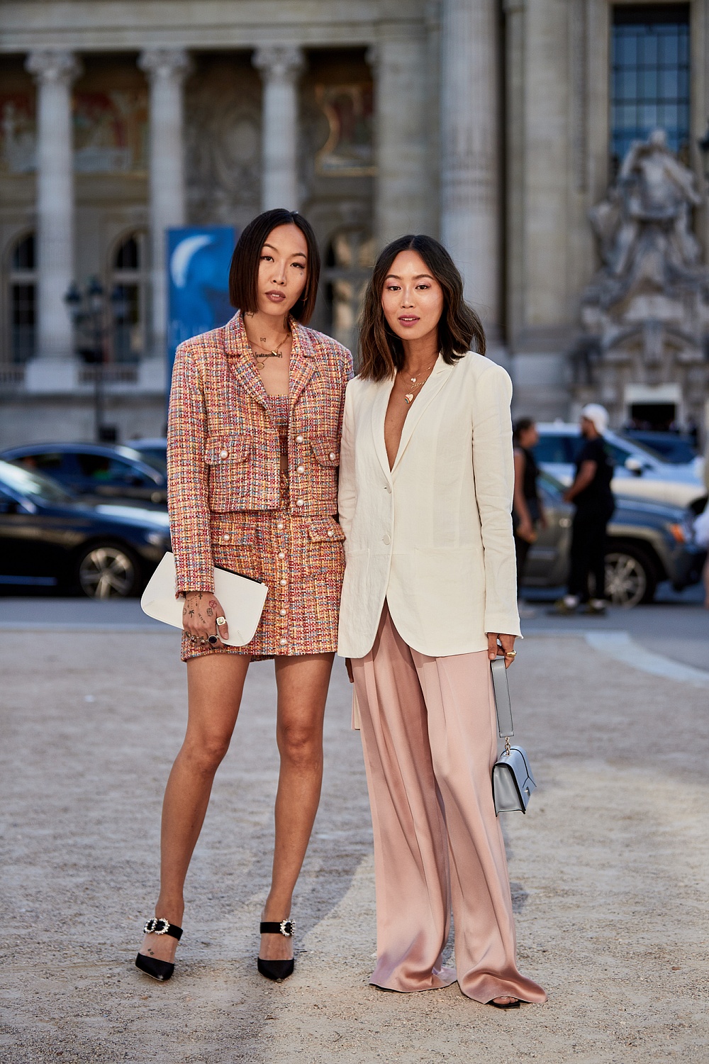 Широкие брюки с высокой посадкой, кроп-топы, платья с рукавами-воланами, соломенные клатчи, босоножки на тонких ремешках, много Chanel и розовый цвет – героини парижского street style показывают, как адаптировать главные тренды сезона к реальной жизни.