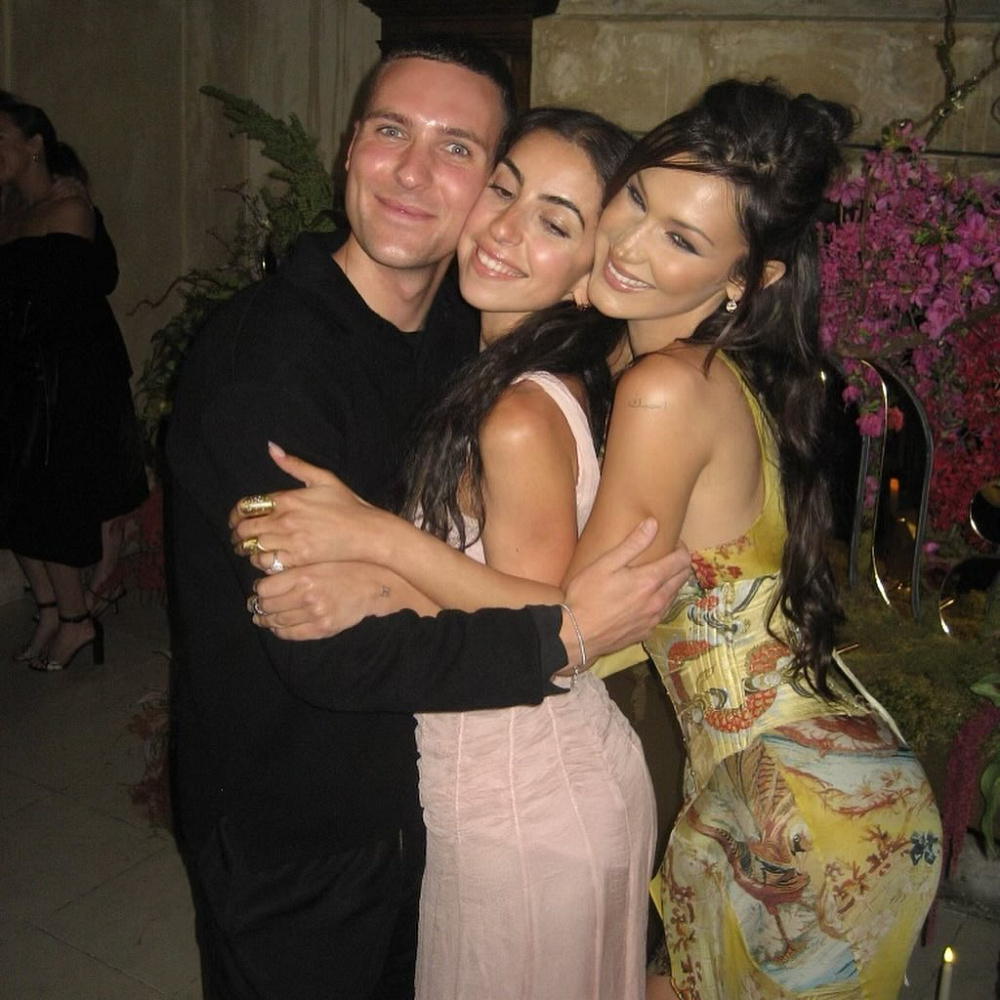 Запуск свого бренду Белла Хадід вирішила відсвяткувати гучною вечіркою. Для особливого приводу модель обрала сукню Roberto Cavalli з весняної колекції 2003 року. З косметичним дебютом Беллу прийшли привітати рідні, друзі та, звісно, коханий — професійний вершник Адан Бануелос. Атмосферними світлинами з вечора (з обіймами та поцілунками) Хадід щедро поділилася в своєму Instagram.