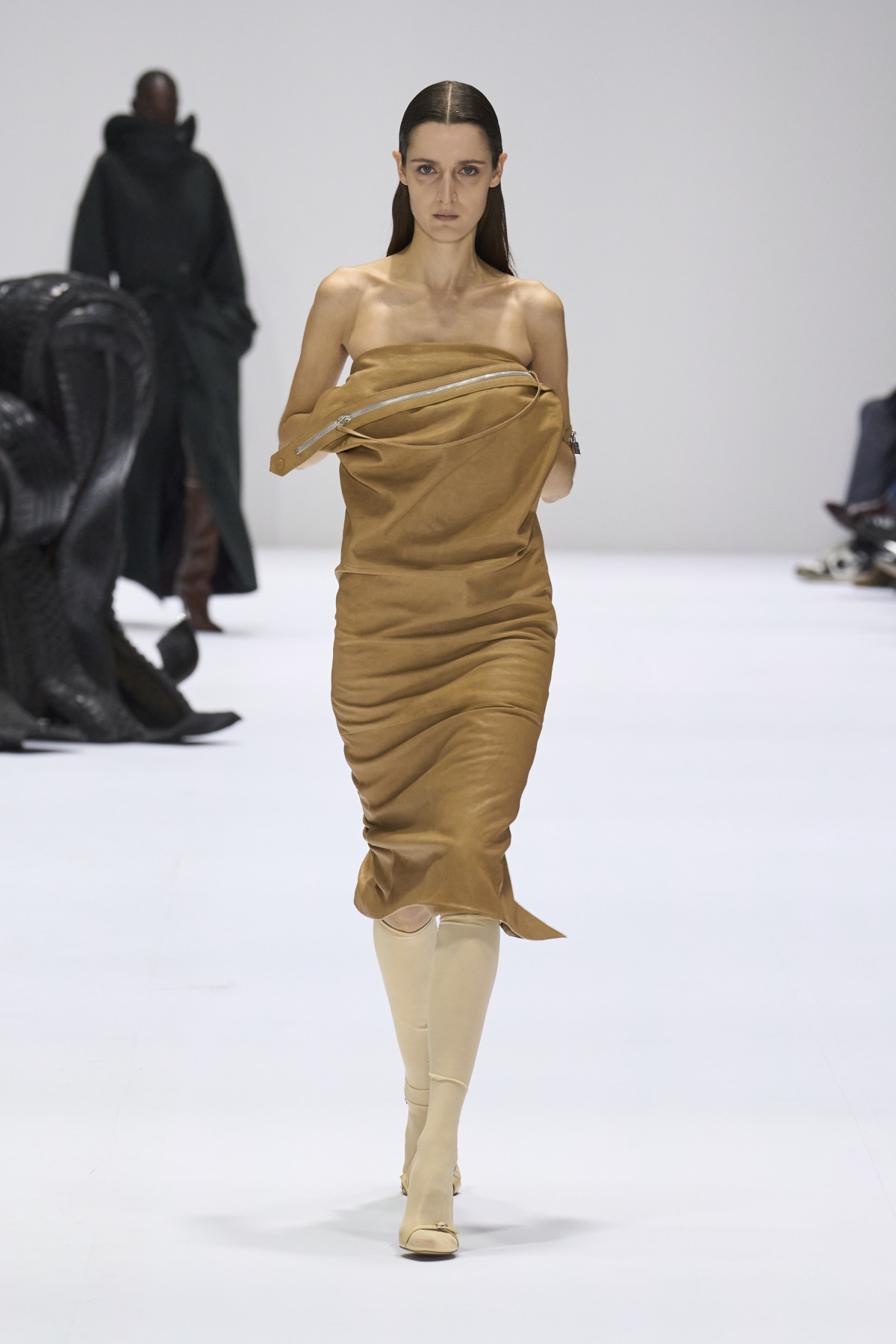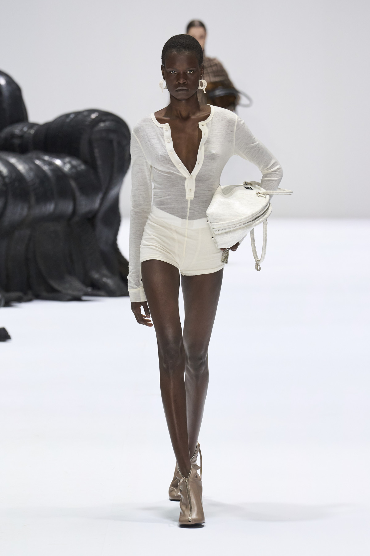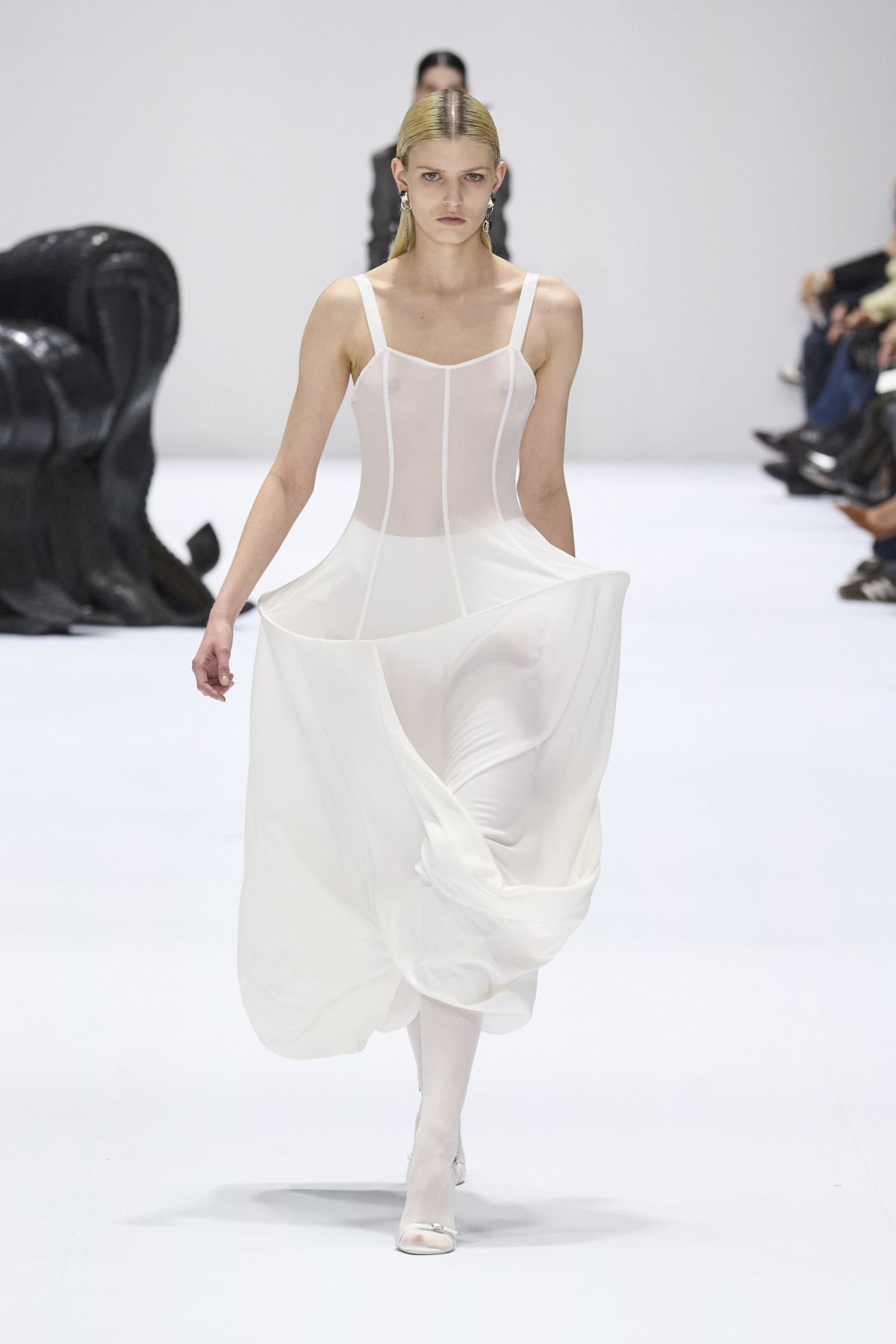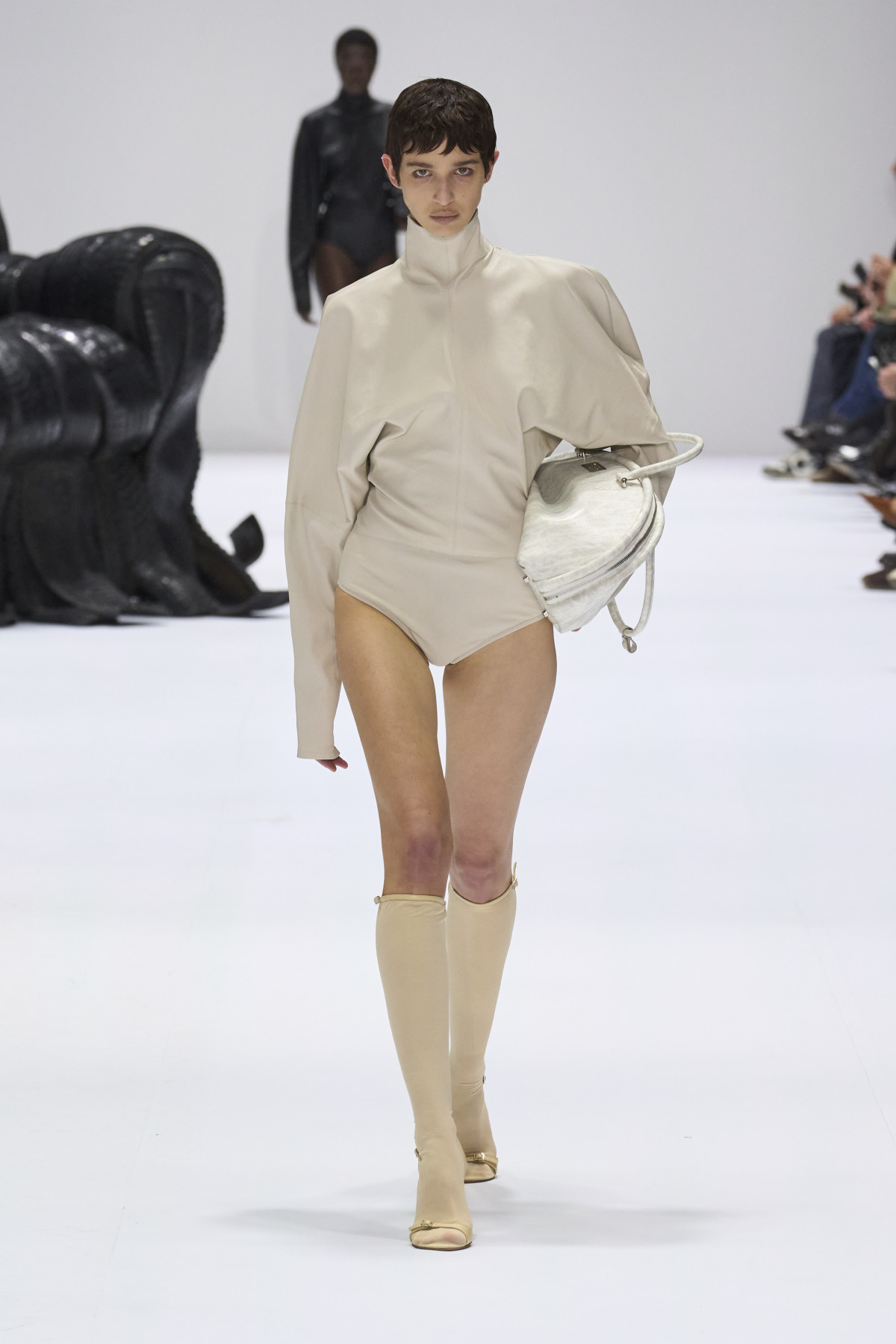 Відкрили шоу скульптурні шкіряні мінісукні з коміром-стійкою та формованими чашечками на ліфі, які підкреслено виділяли талію і збільшували стегна; обтислі комбінезони та боді. Згодом шкіра перейшла й на моделі з драпіруванням — спідниці й сукні міді з деталями у вигляді застібок. Денім же у цій колекції прозирав на комірцях, штанах та аксесуарах. Джонні Йоханссон також вдався до техніки trompe l`œil, представивши образи, що здалеку здавалися немовби виготовленими з темної та світлої джинсової тканини, однак зблизька виявлялися шкіряними.