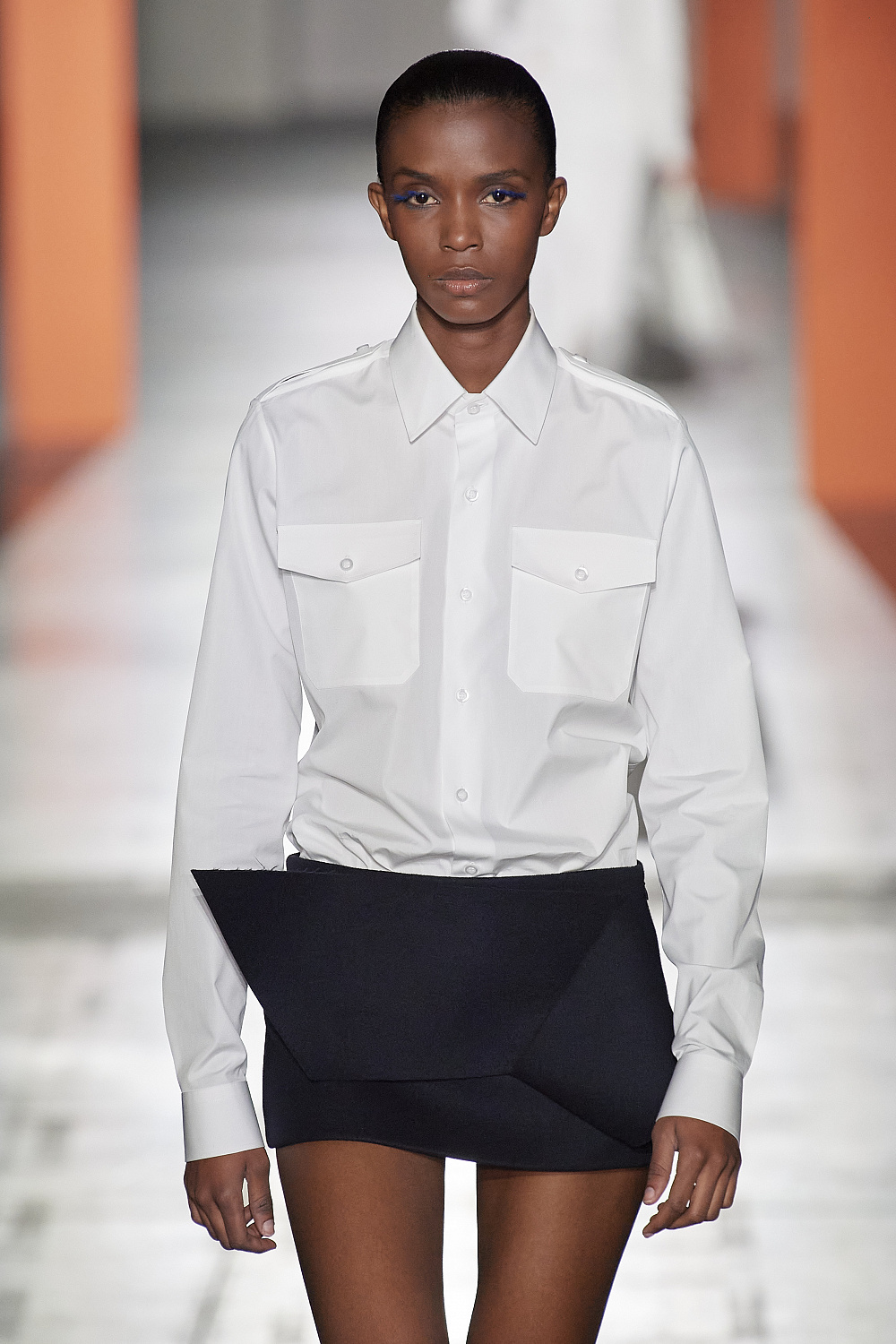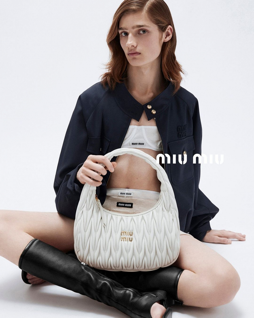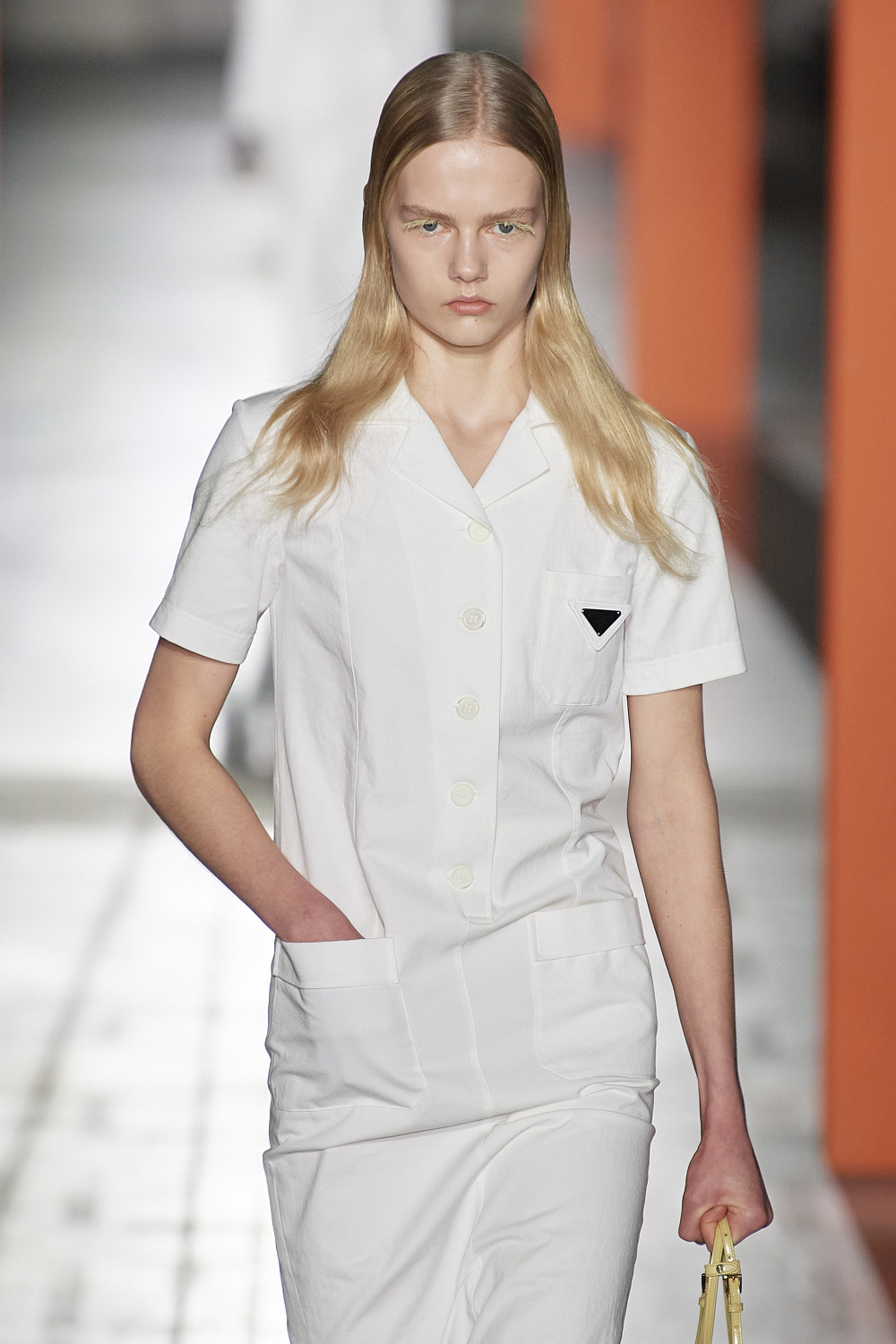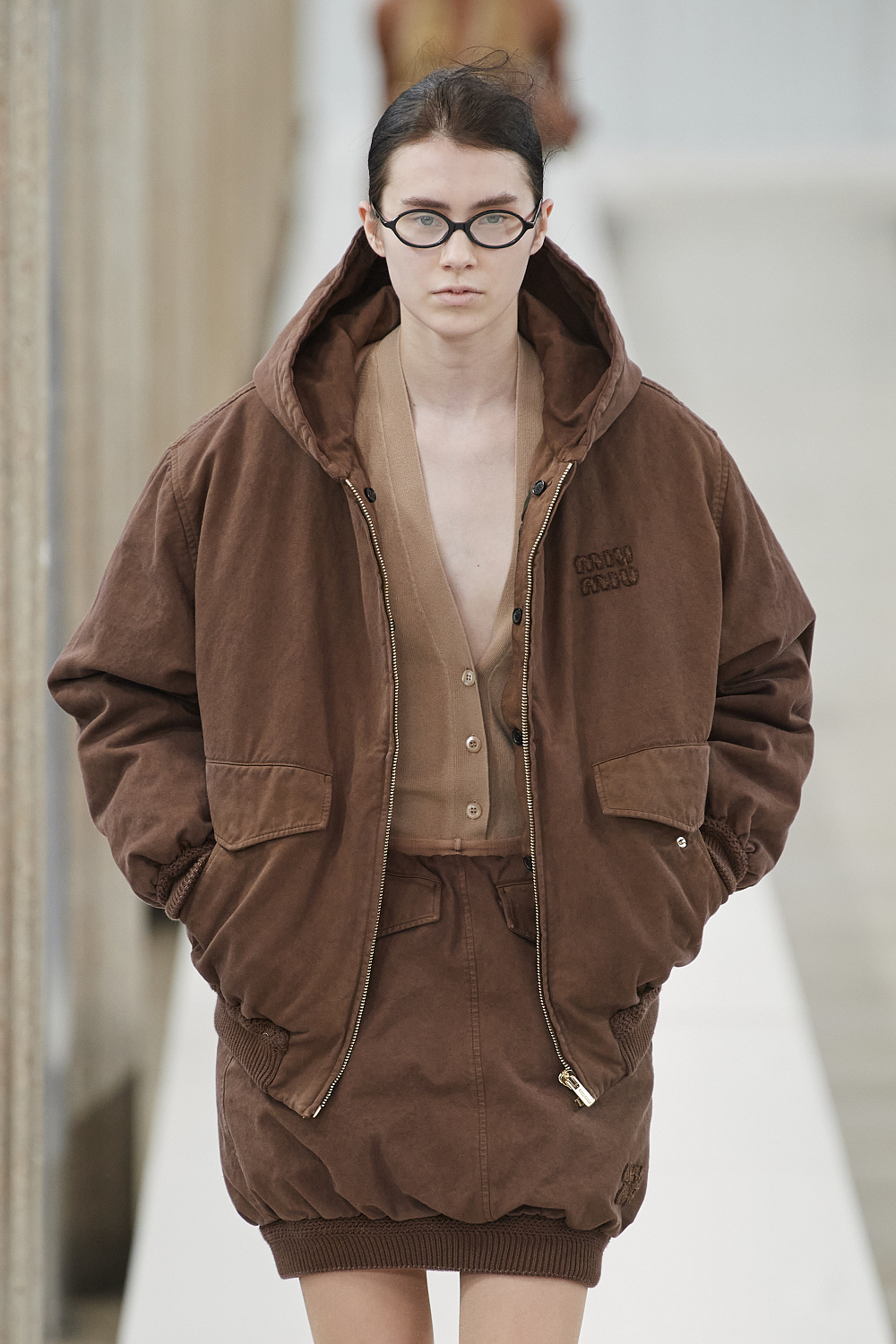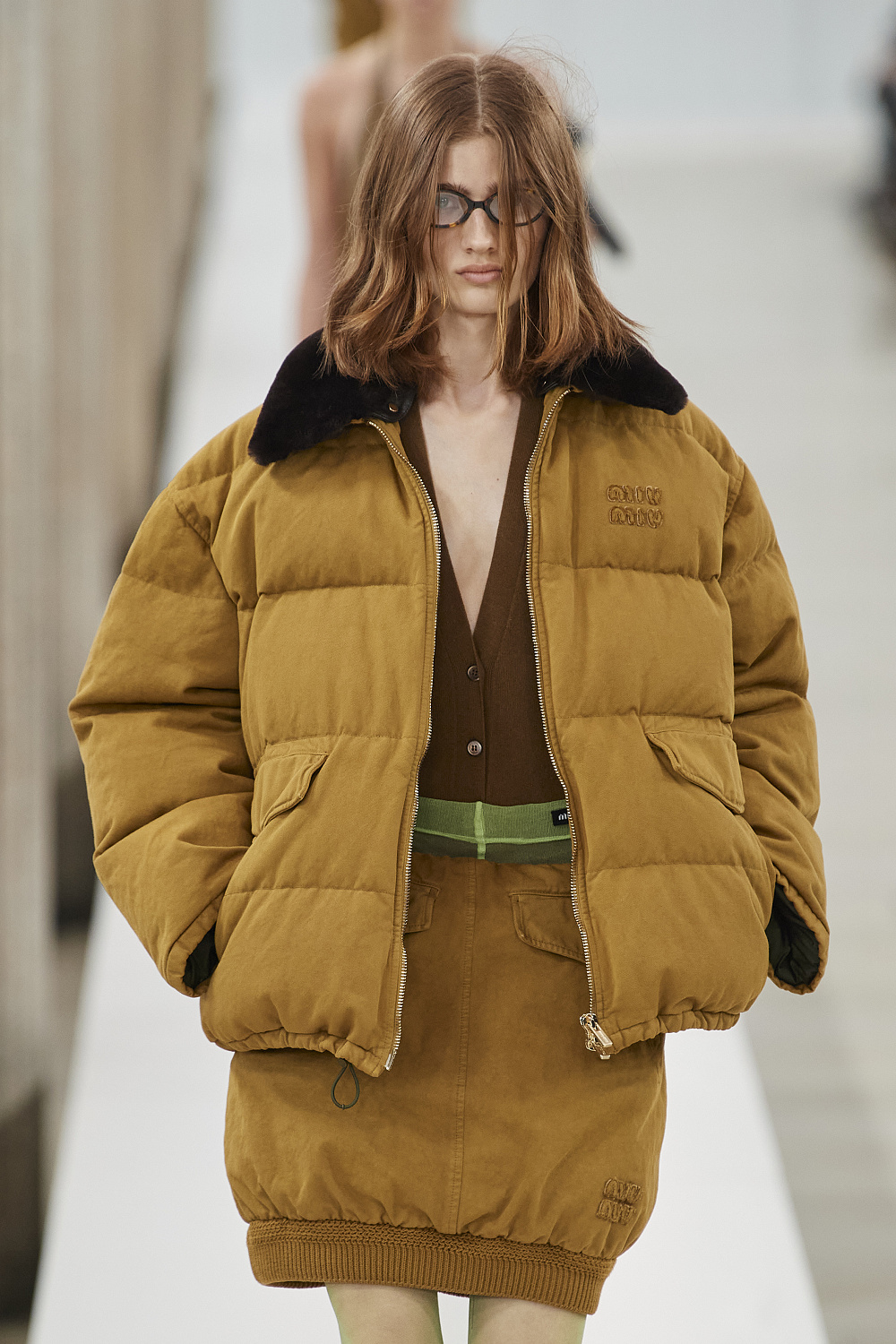 Показ Miu Miu у чомусь був також про офісний стиль: спідниці-олівці, ділові штани на низькій посадці, тоненькі кардигани тощо. Однак значно більше на подіумі виділялися прозорі тканини на топах, сукнях, спідницях і шортах, трендові луки «без низу», окуляри, що нагадують ті, які носила Керолін Бессетт-Кеннеді, сумка-хобо, яку полюбили всі зірки streetstyle. Звісно, колекція не обійшлася без квітів, фактур, багатошаровості та блискіток.