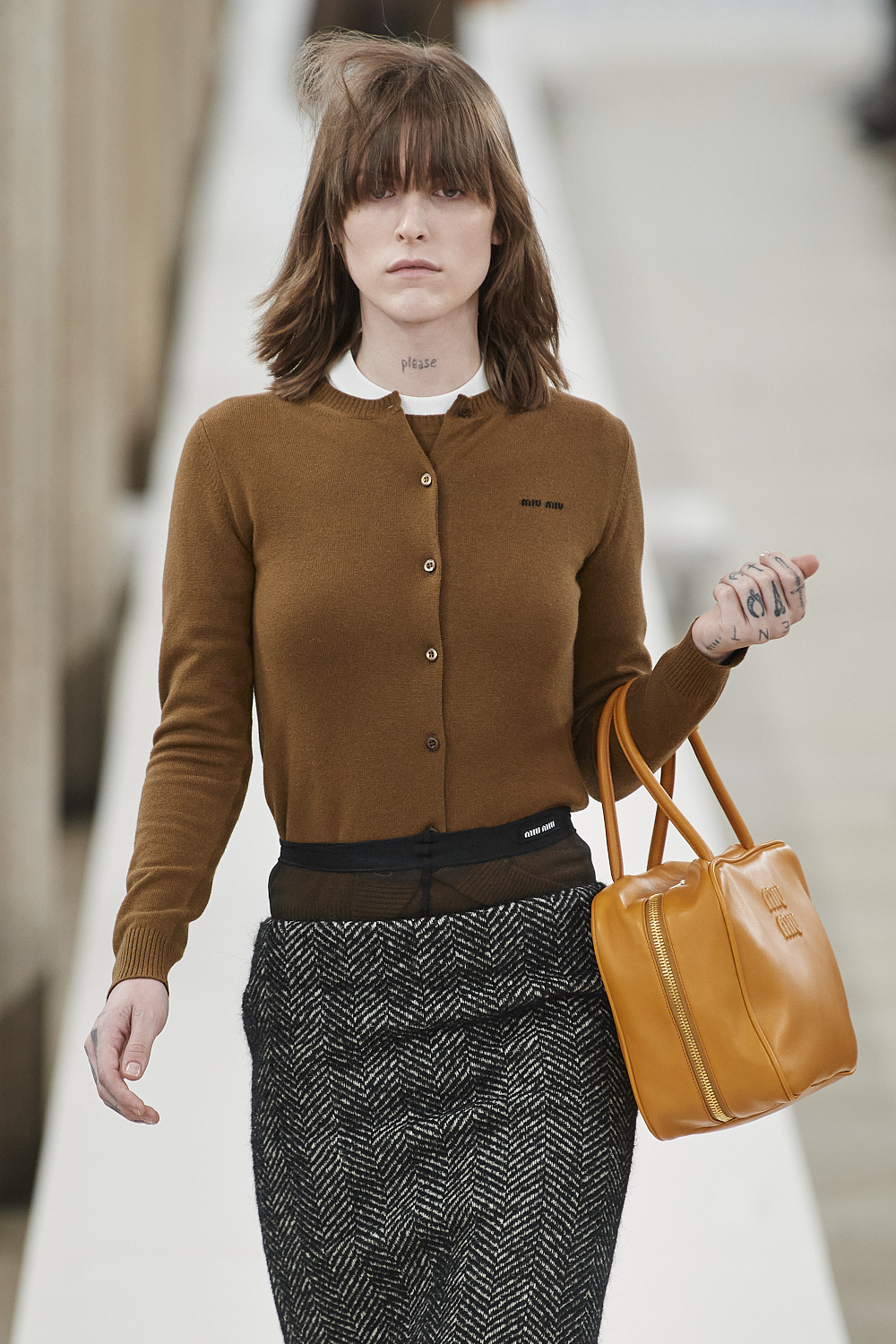 Фешіоніста сміливо можуть використовувати покази Miu Miu, як ілюстрований посібник із новими стилістичними прийомами. Серед запропонованих цьогоріч — колготи, які видно над спідницею. У них заправляють кардигани та сорочки.