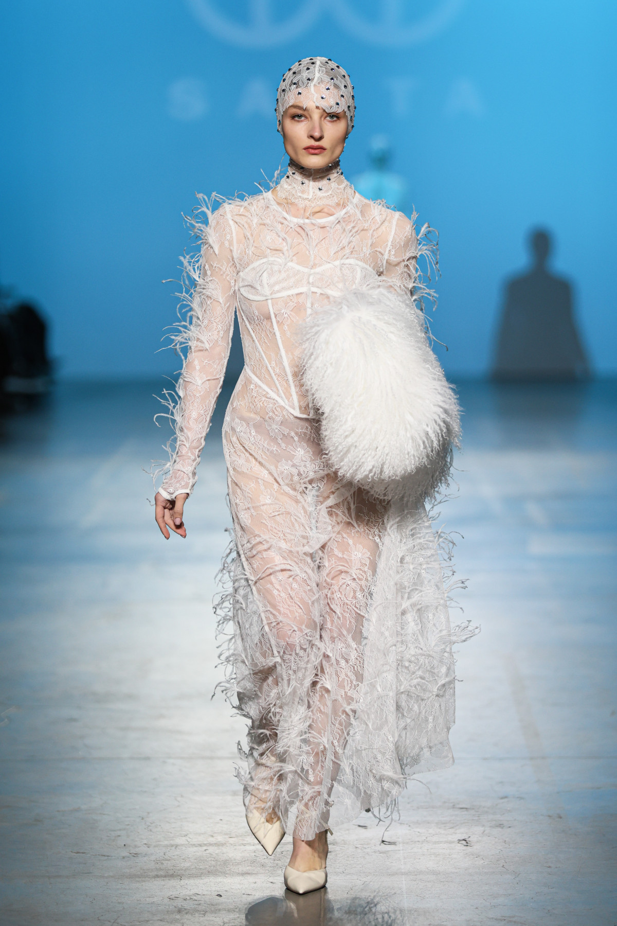 Дизайнерка бренду відтворила дух сильних і пристрасних жінок через мову моди, у якій контрасти стали головним інструментом. Прозоре мереживо стикнулося зі щільною текстурою шкіри, створюючи гармонійний ансамбль. Така гра матеріалів — це продовження філософії SANTA, де кожна деталь розкриває двоїстість жіночої природи: чуттєвість у поєднанні з рішучістю, грайливість поряд із силою.
