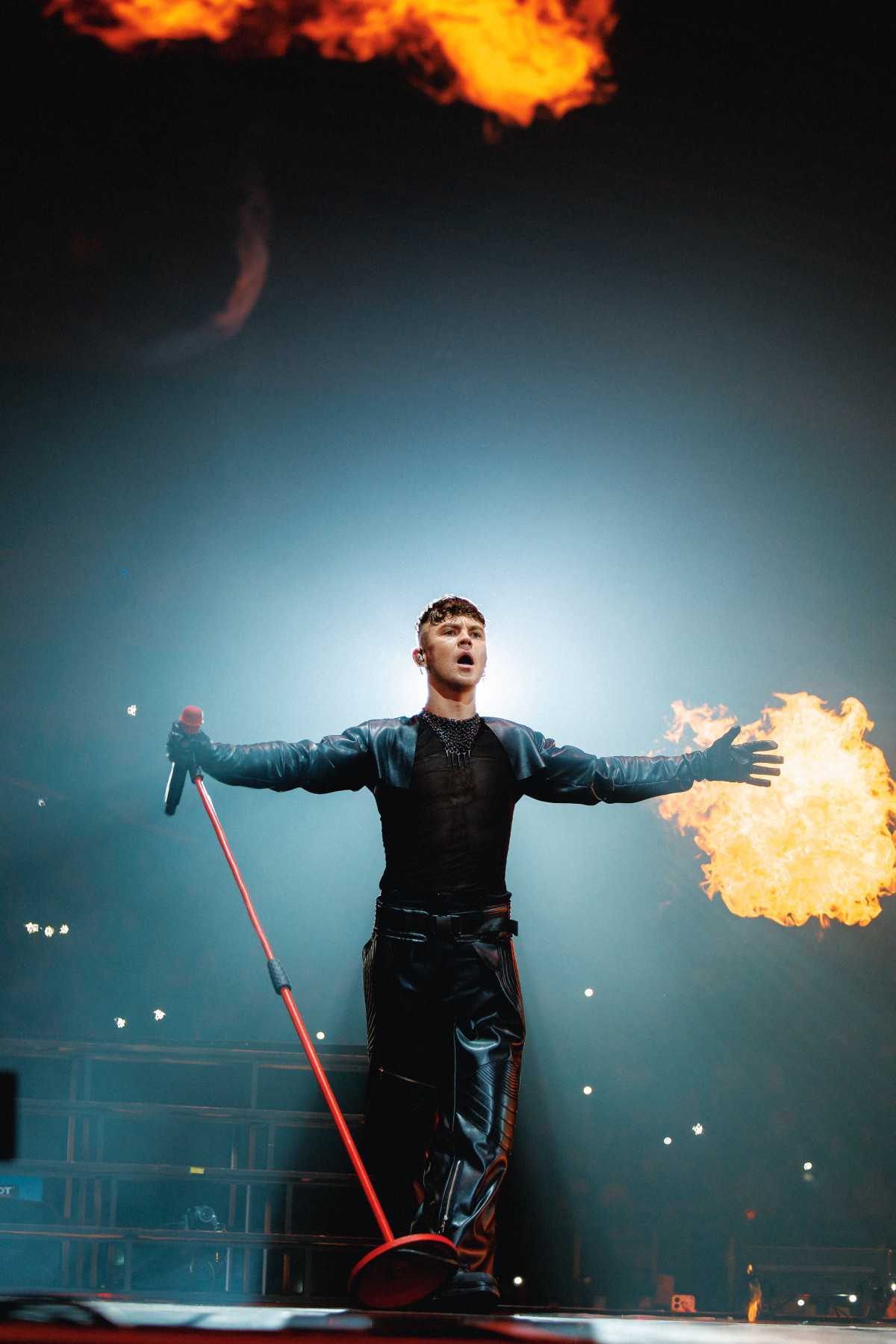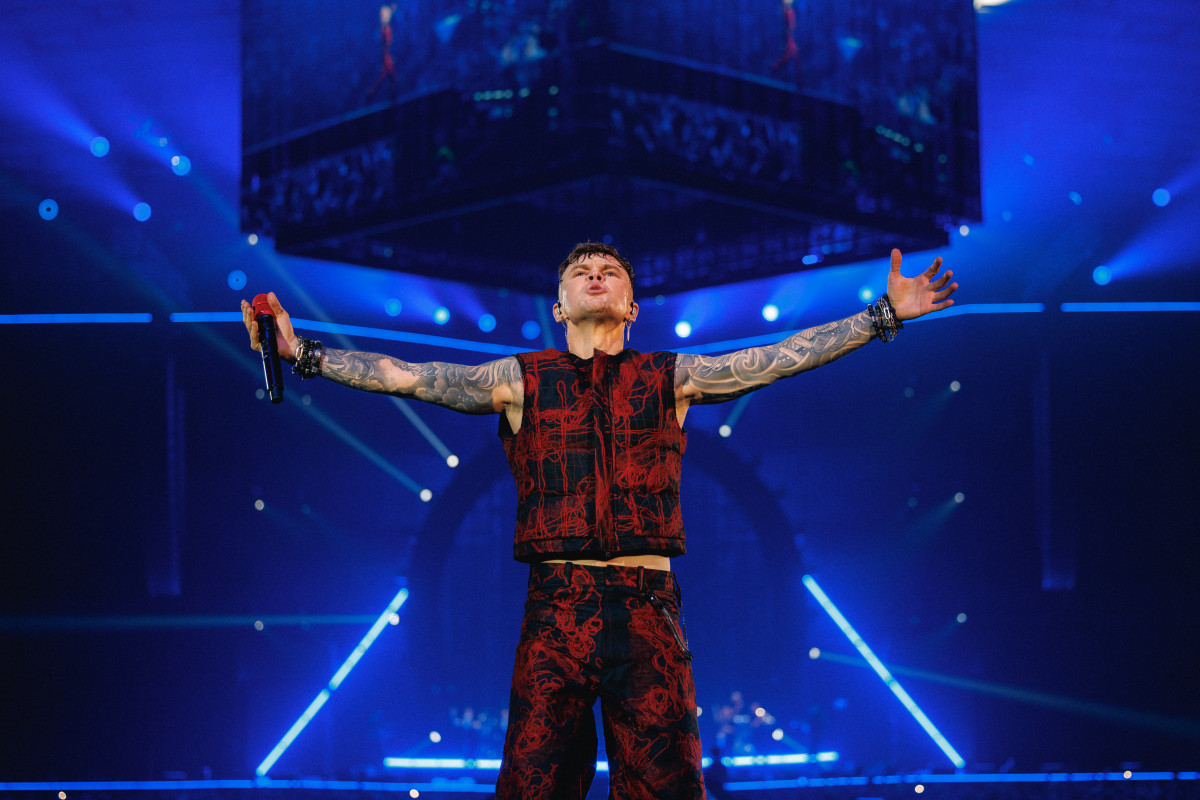 Він зберіг всі традиційні елементи, але був поданий у актуальному, більш пластичному й вечірньому форматі. У цьому образі — урочистість моменту та поєднання артиста з масштабним музичним полотном, яке відкривало шоу. Костюм задавав тон усій подальшій драматургії концерту.