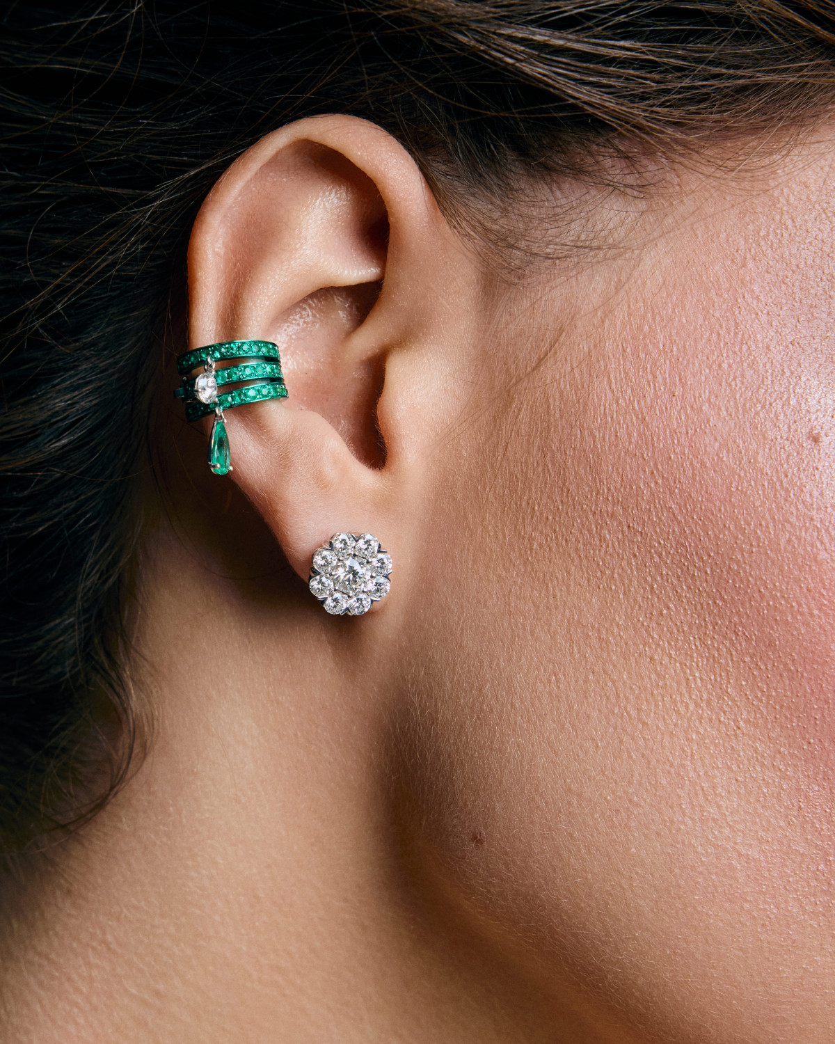 Сережка-каф зі смарагдами і діамантами