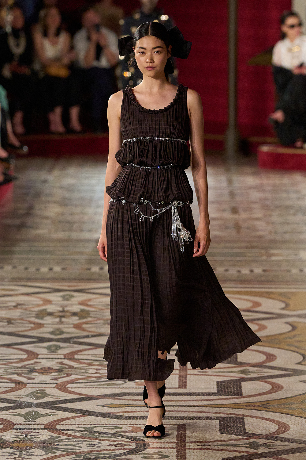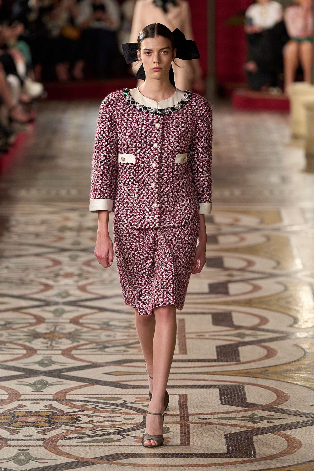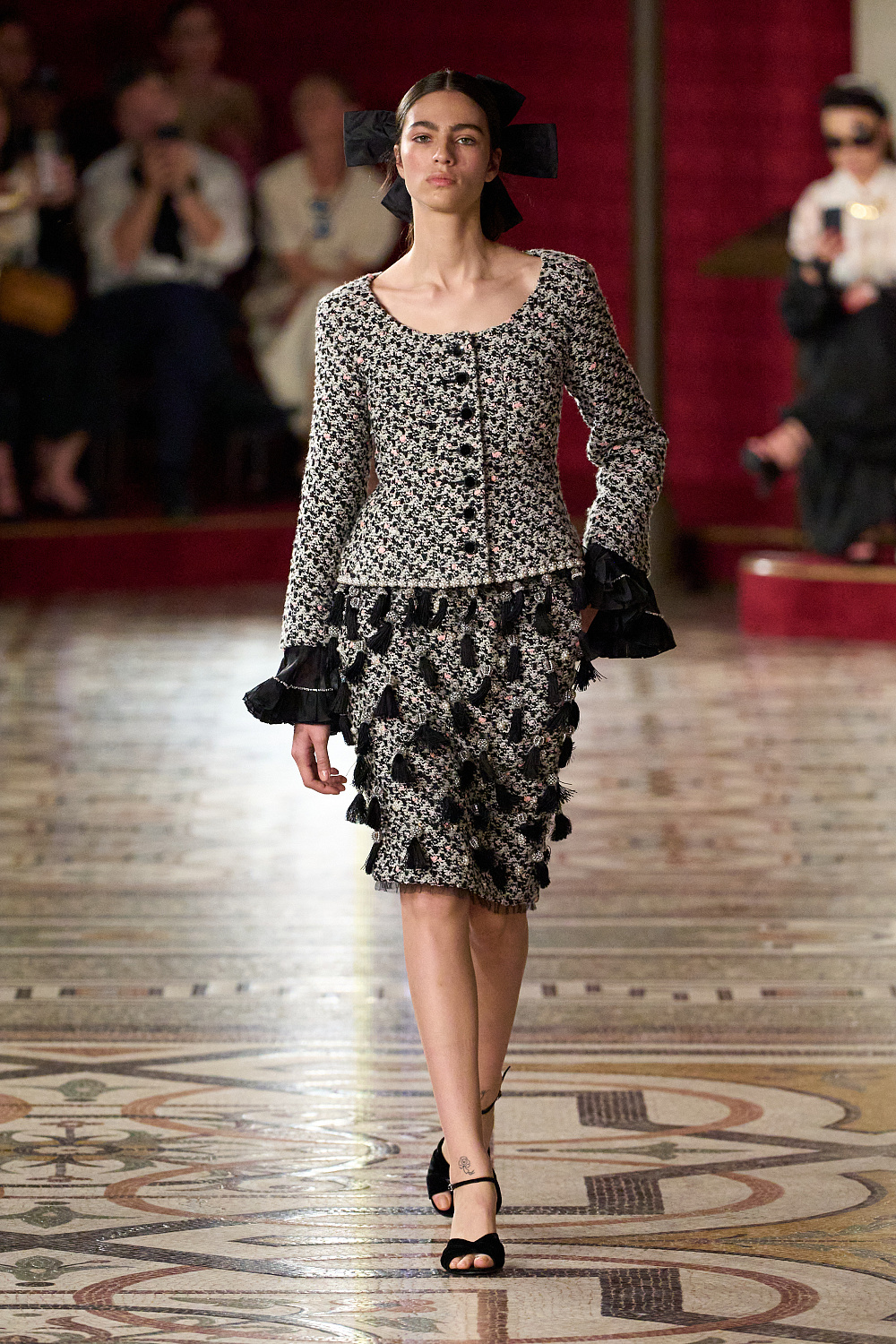Показ пройшов у стінах культової паризької Опери Гарньє, яка невідривно пов’язана з історією Chanel та його засновницею Коко. Моделі крокували в зовнішніх коридорах, що оточують головну глядацьку залу. Їх з цієї нагоди трансформували в червоні оксамитові оперні ложі. Щоб детально відтворити декорації, до роботи долучився французький режисер Крістоф Оноре.