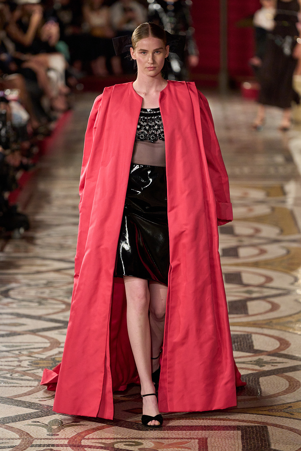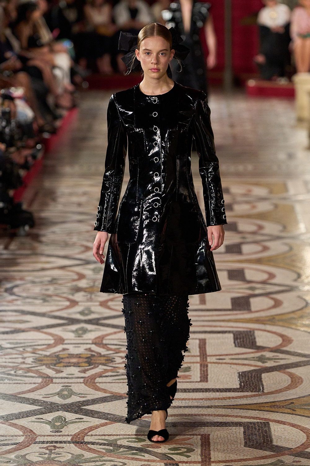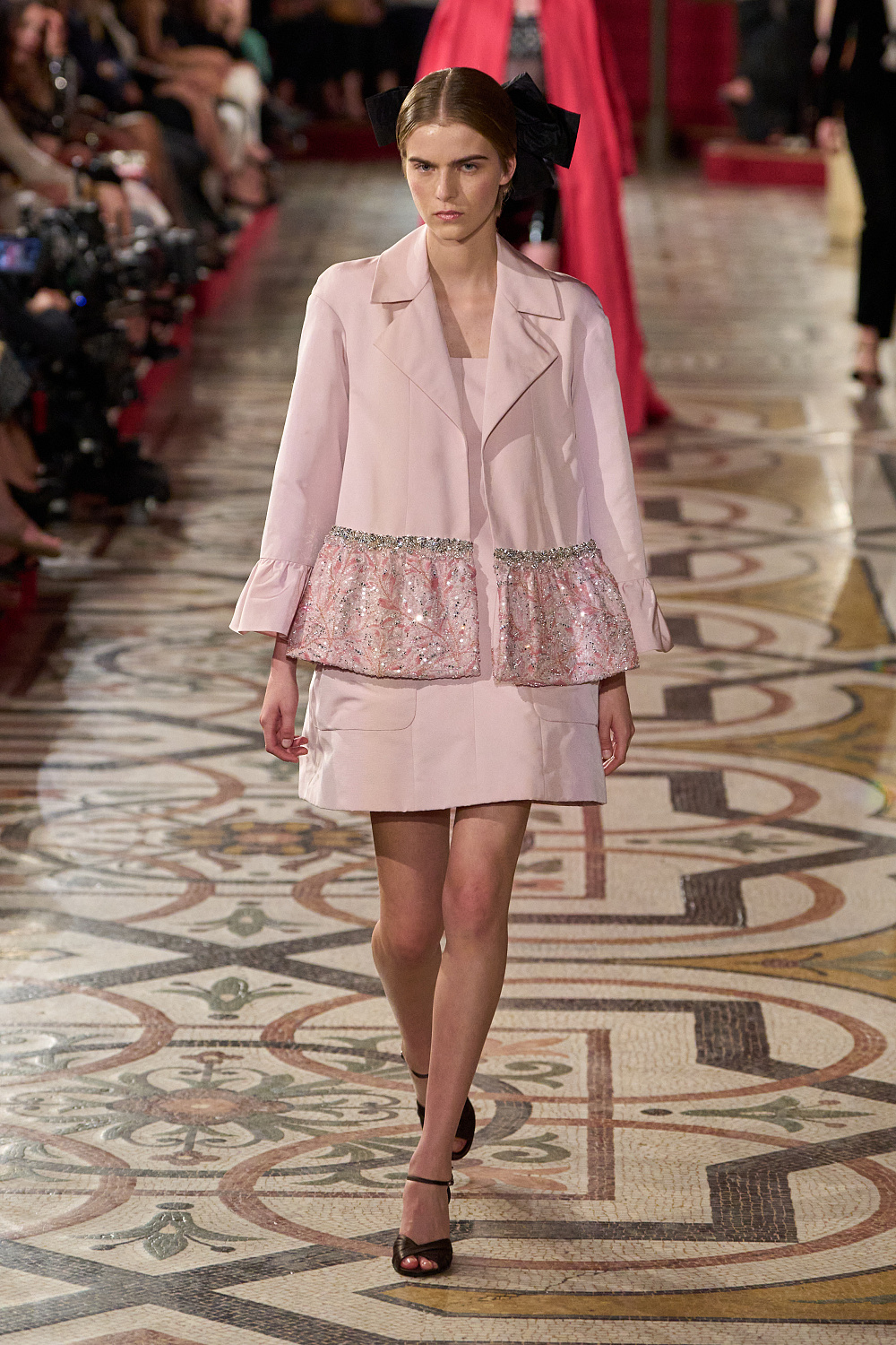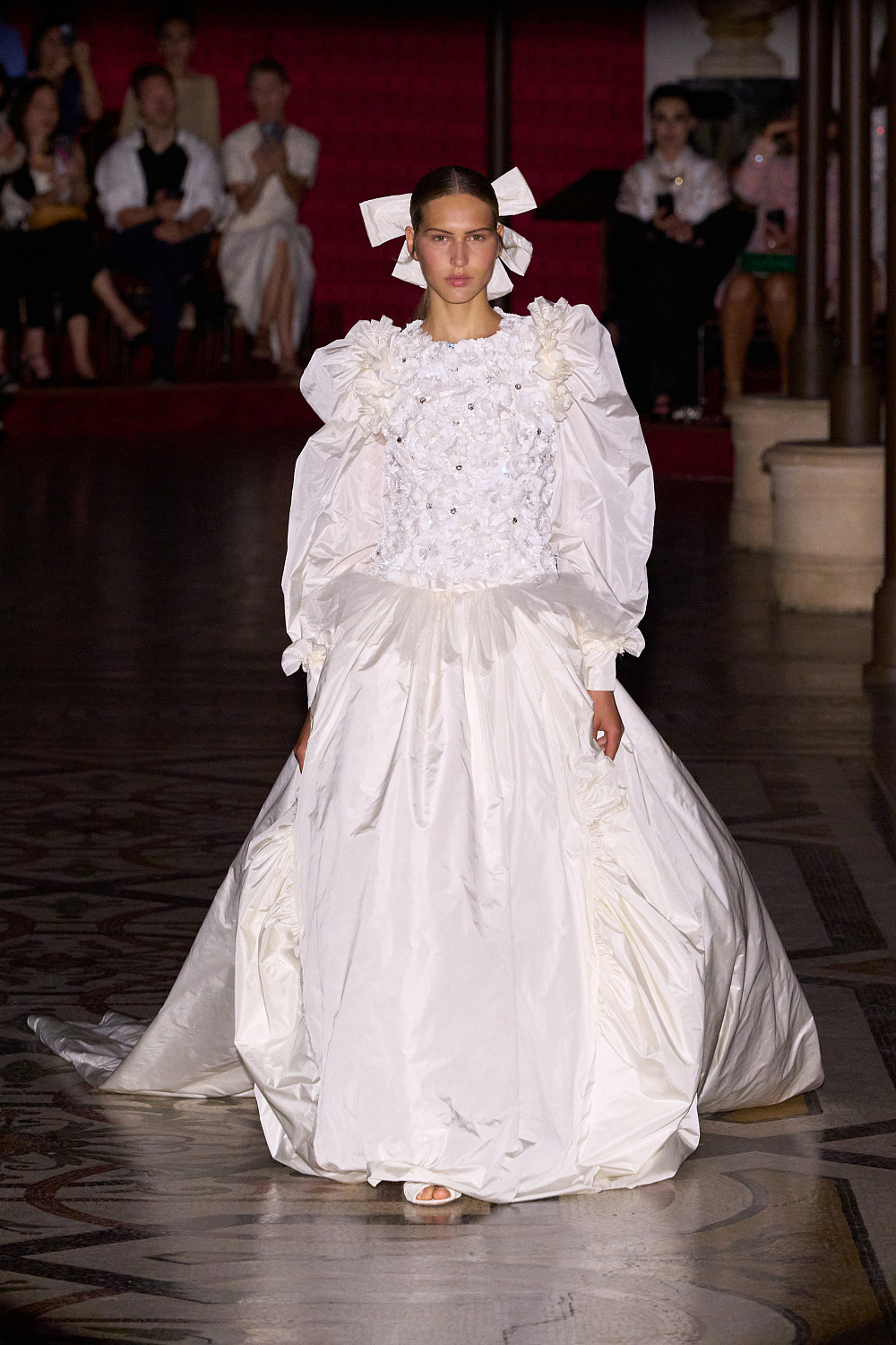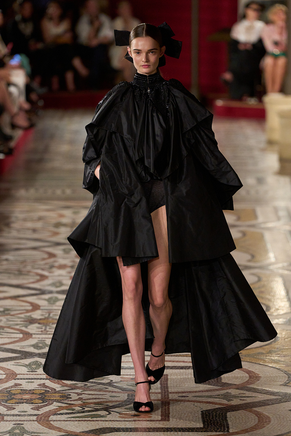 Першою на подіум вийшла Вітторія Черетті в довгому драматичному плащі з об’ємними рукавами та високим коміром з рюшами. Крім цього, були представлені чорні оксамитові смокінги, напівпрозорі сукні з сяйливими деталями, бальні моделі та вже класичні твідові комплекти. Завершив показ традиційно весільний образ, що складався з довгої молочної сукні з рукавами-буфами, корсетом, розшитим квітами, та пишною спідницею.