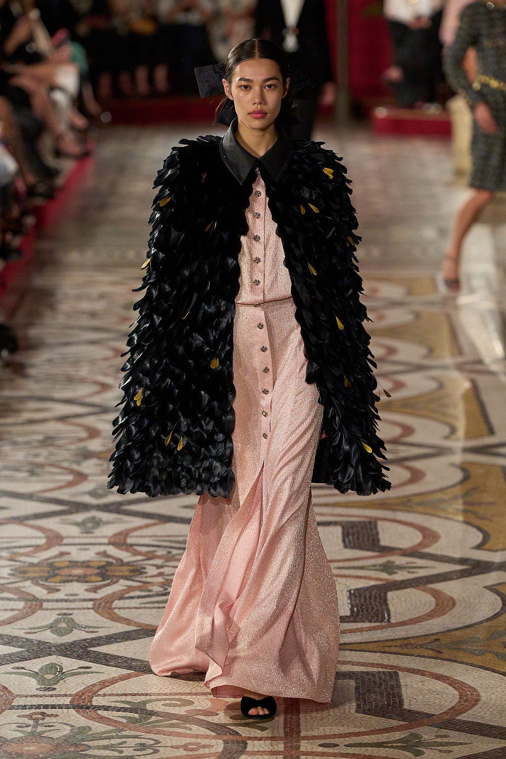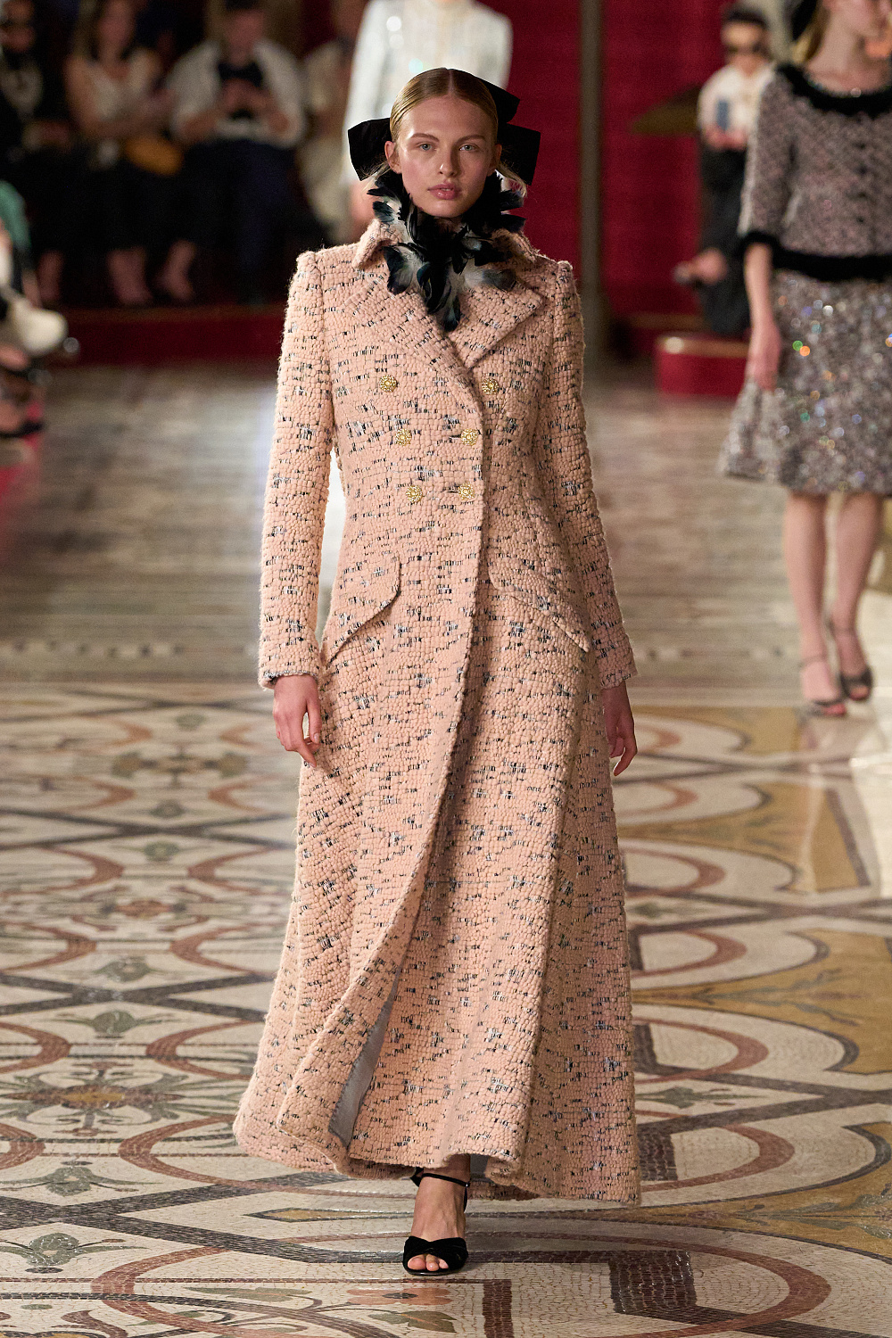 Як розповіли в Chanel, нова колекція наповнила традиційні коди модного дому романтичними відтінками. Перед глядачами постали вишукані образи, у яких переплелося кутюрне мистецтво з оперним. Пір’я, китиці, кабошони, квіткова вишивка, лакований трикотаж, м’який твід, шовковистий оксамит, ефірний тюль і тафта — кожна деталь лінійки передавала велич і розкіш.