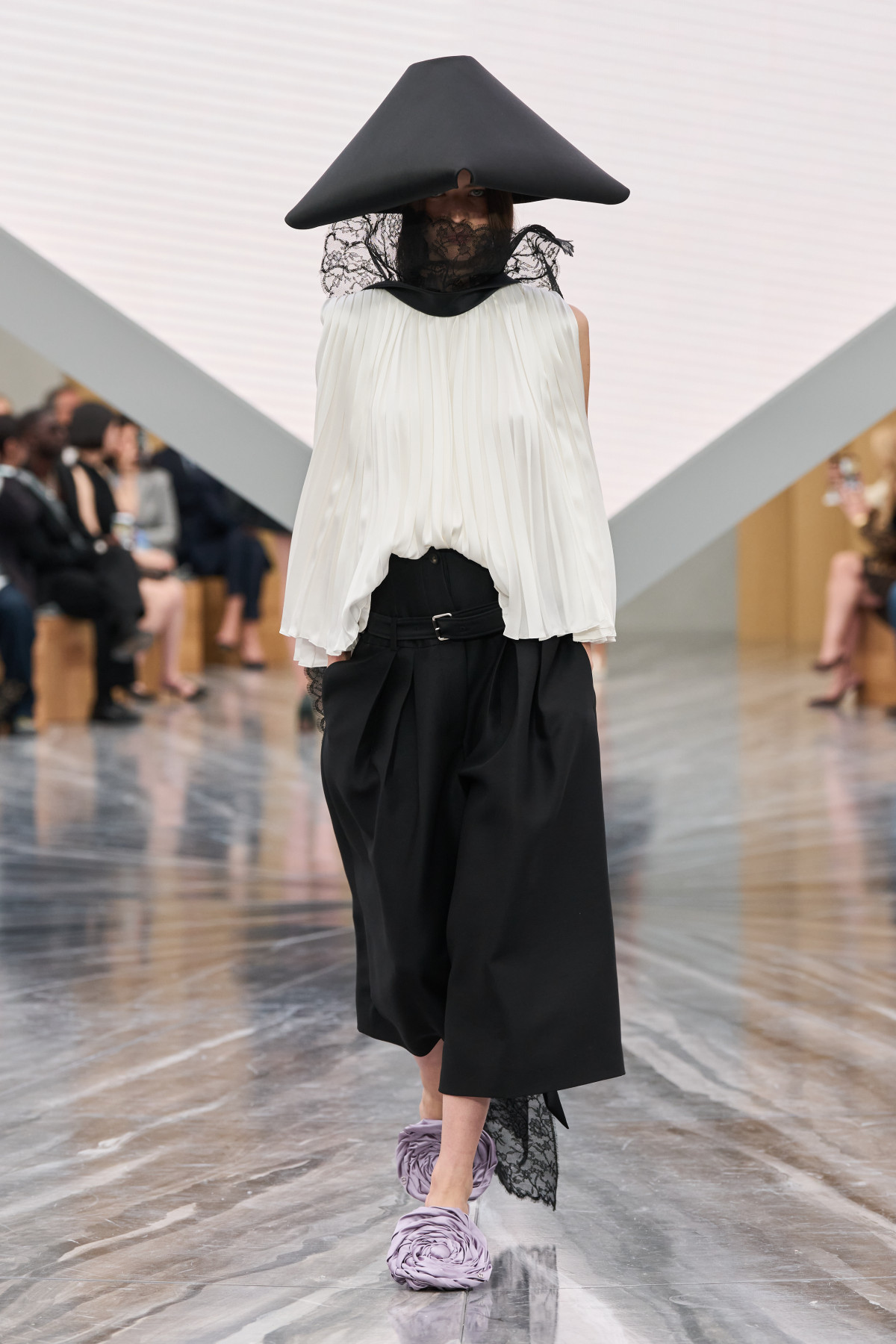 Серед акцентів — сумка Cigale, натхнена архівною сукнею, та взуття від Ніни Крістен: від універсальних лоферів до мюлів із гігантськими квітковими пелюстками. Андерсон довів: навіть дім із такою історією може «згоріти дотла» й відродитися — сміливіший, сучасніший і водночас абсолютно вірний собі.
